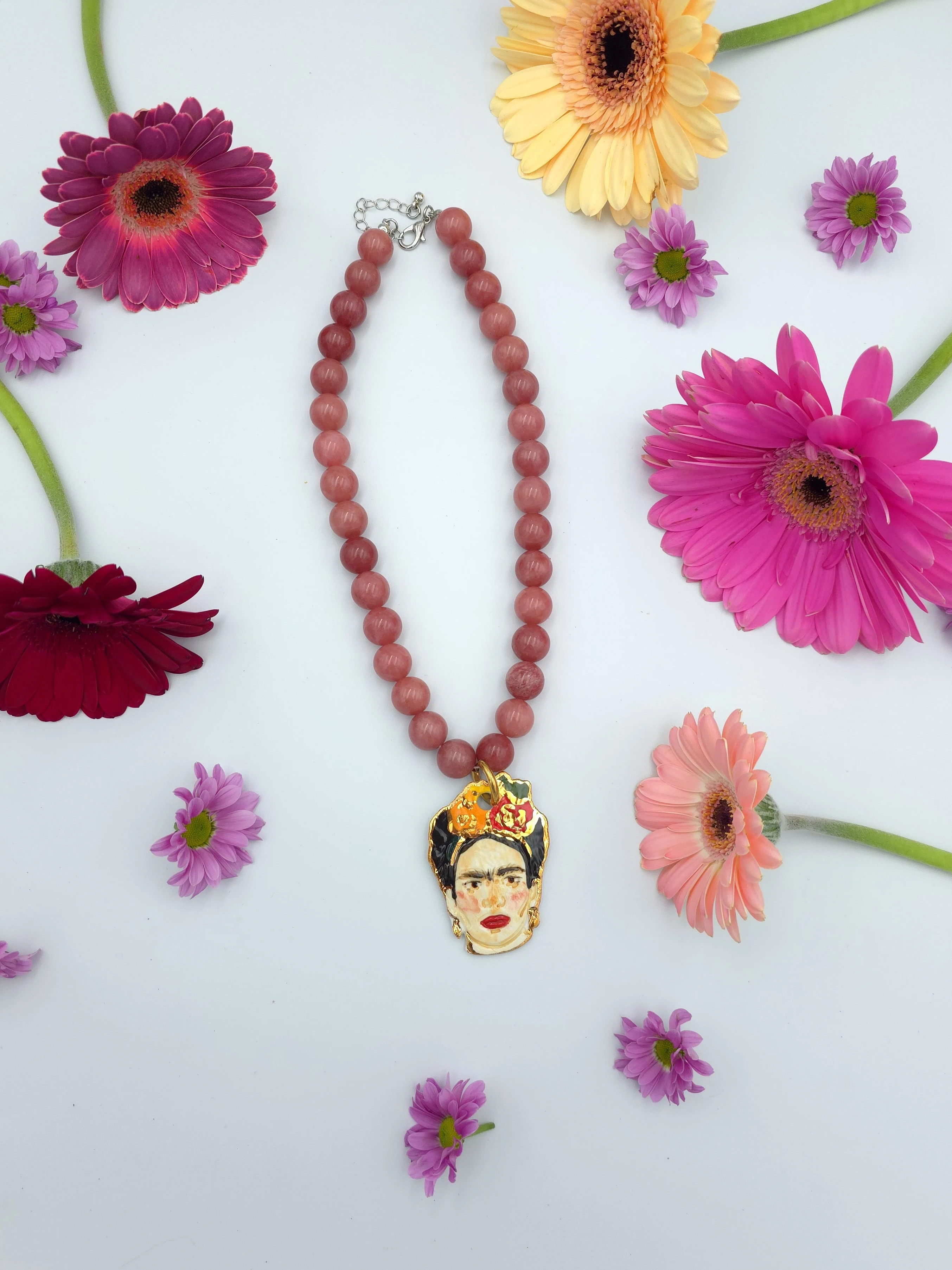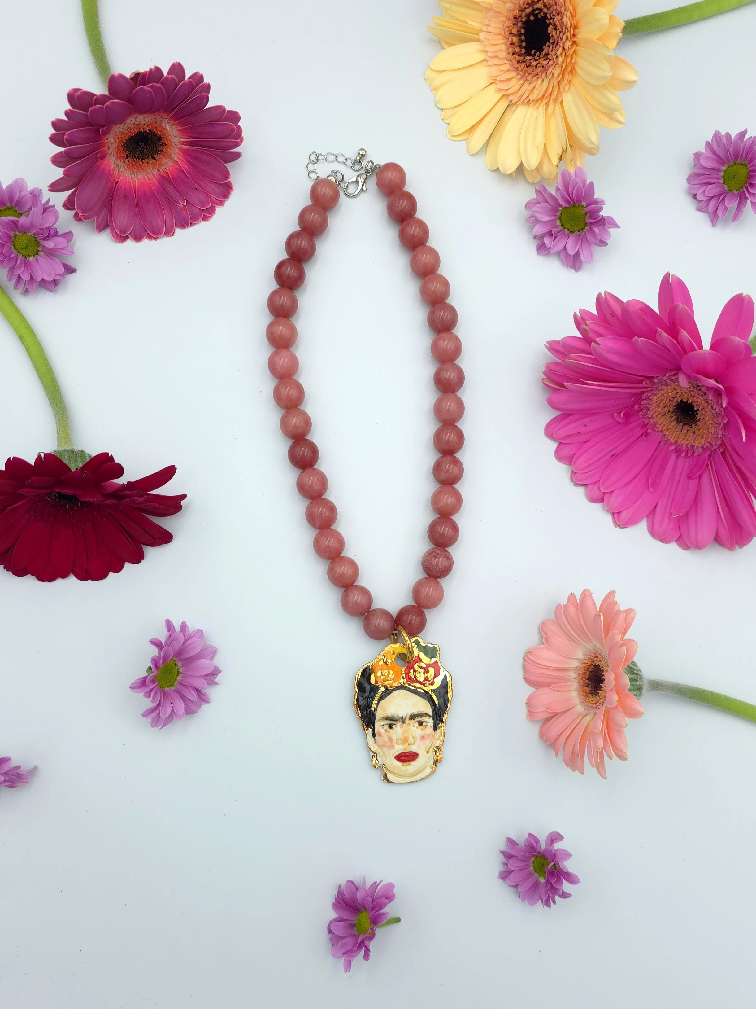 Naszyjnik - jadeit ciemnoróżowy z Fridą