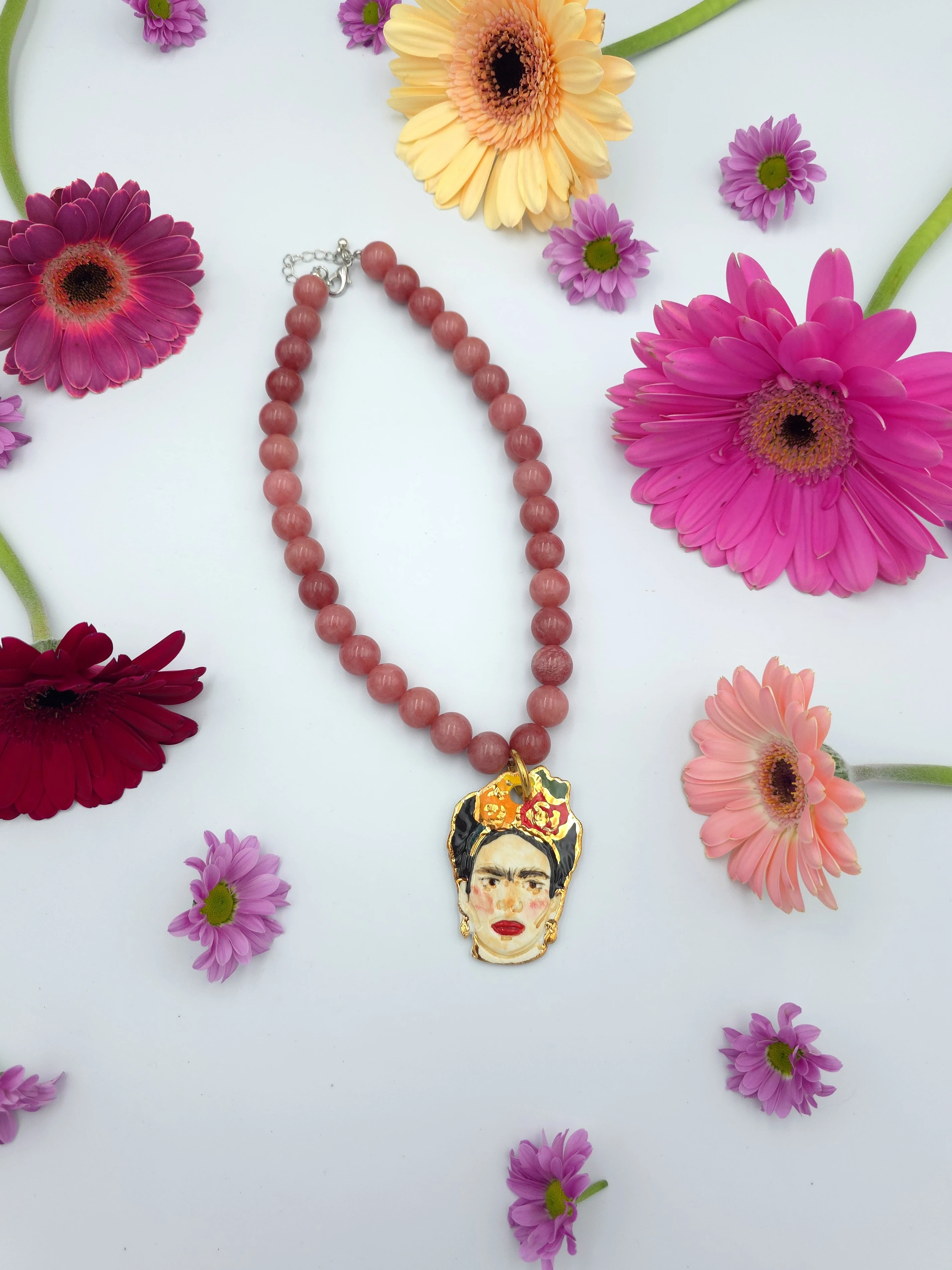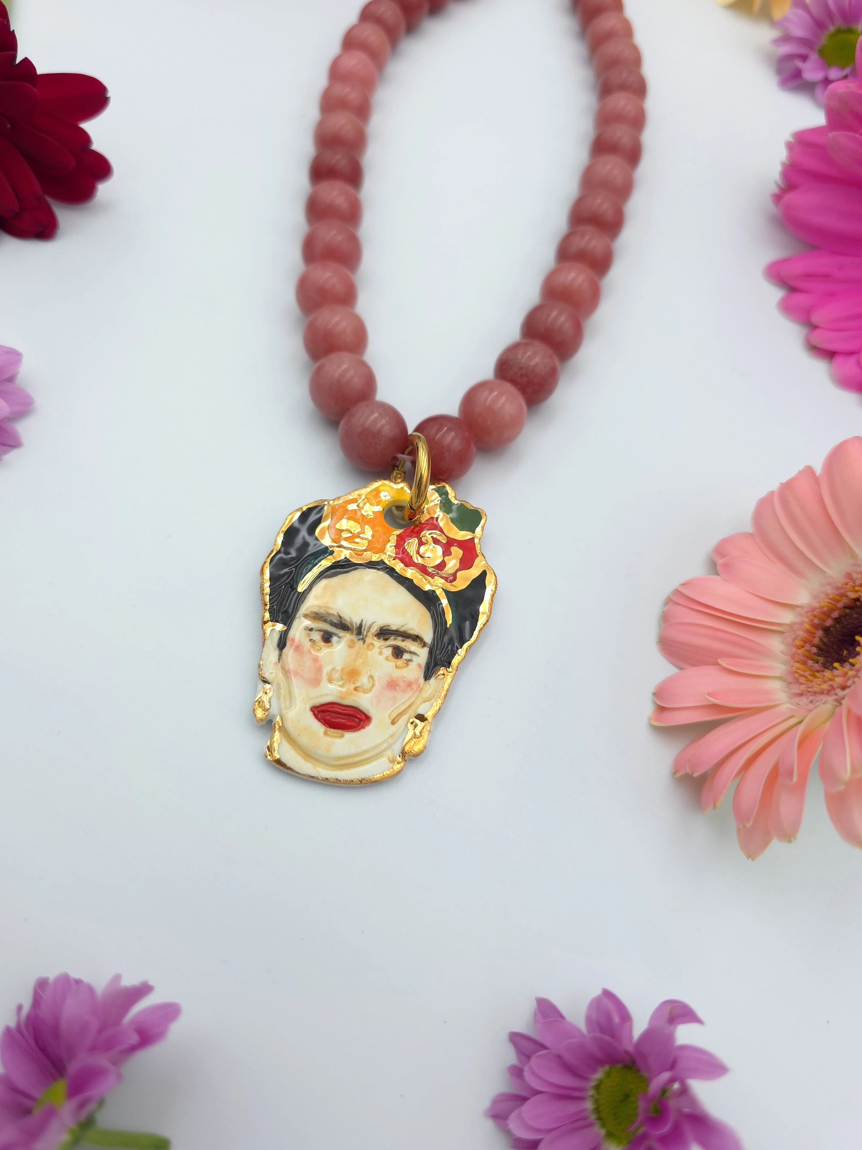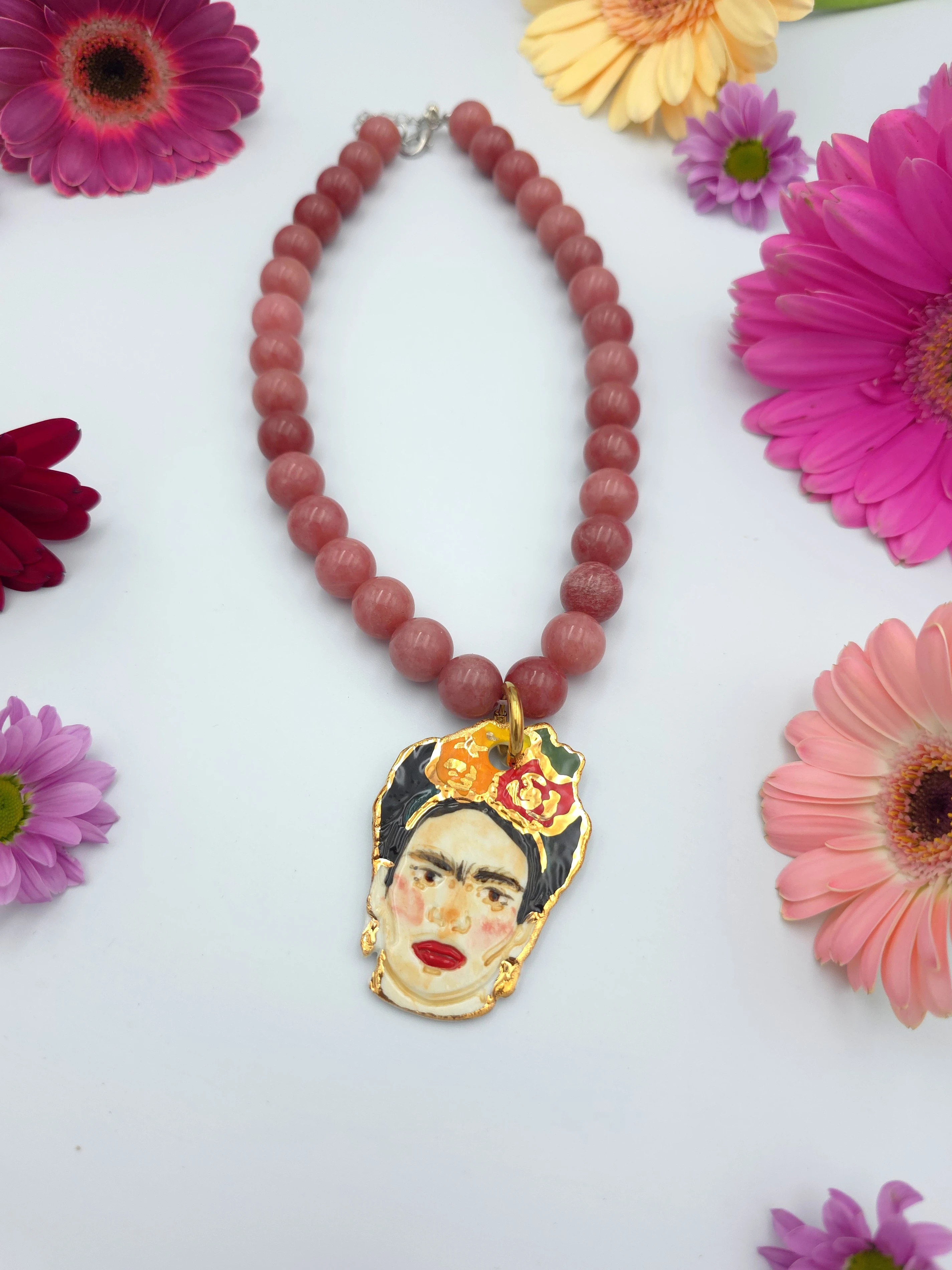 Naszyjnik - jadeit ciemnoróżowy z Fridą 3