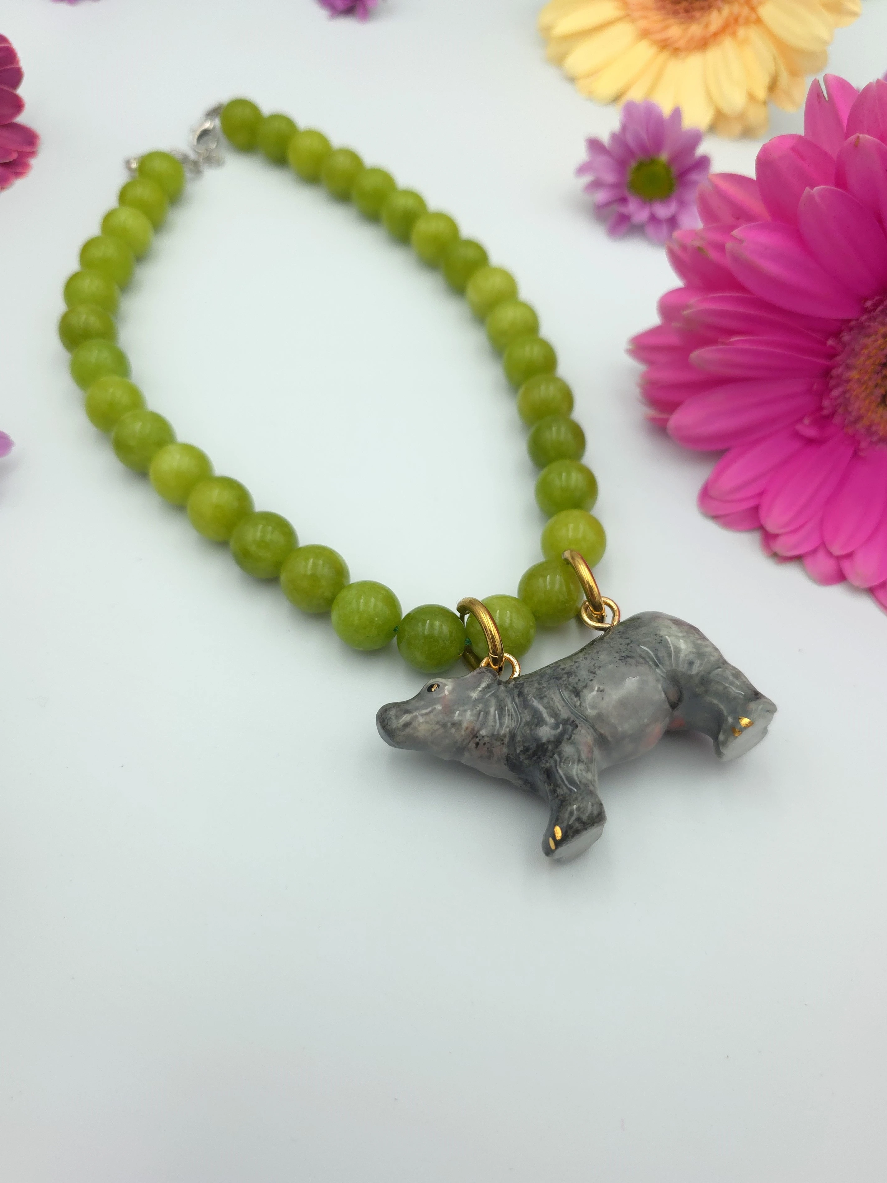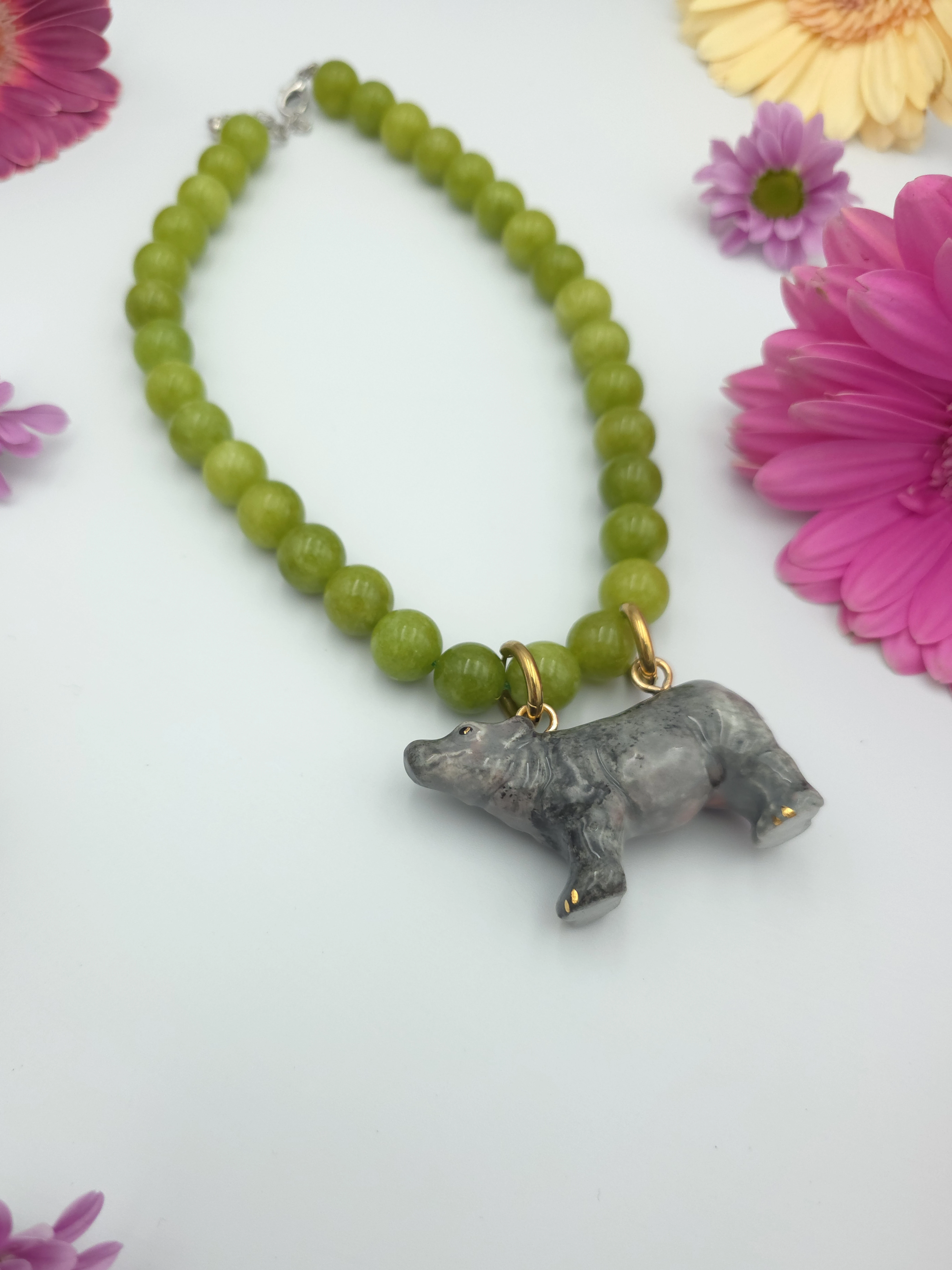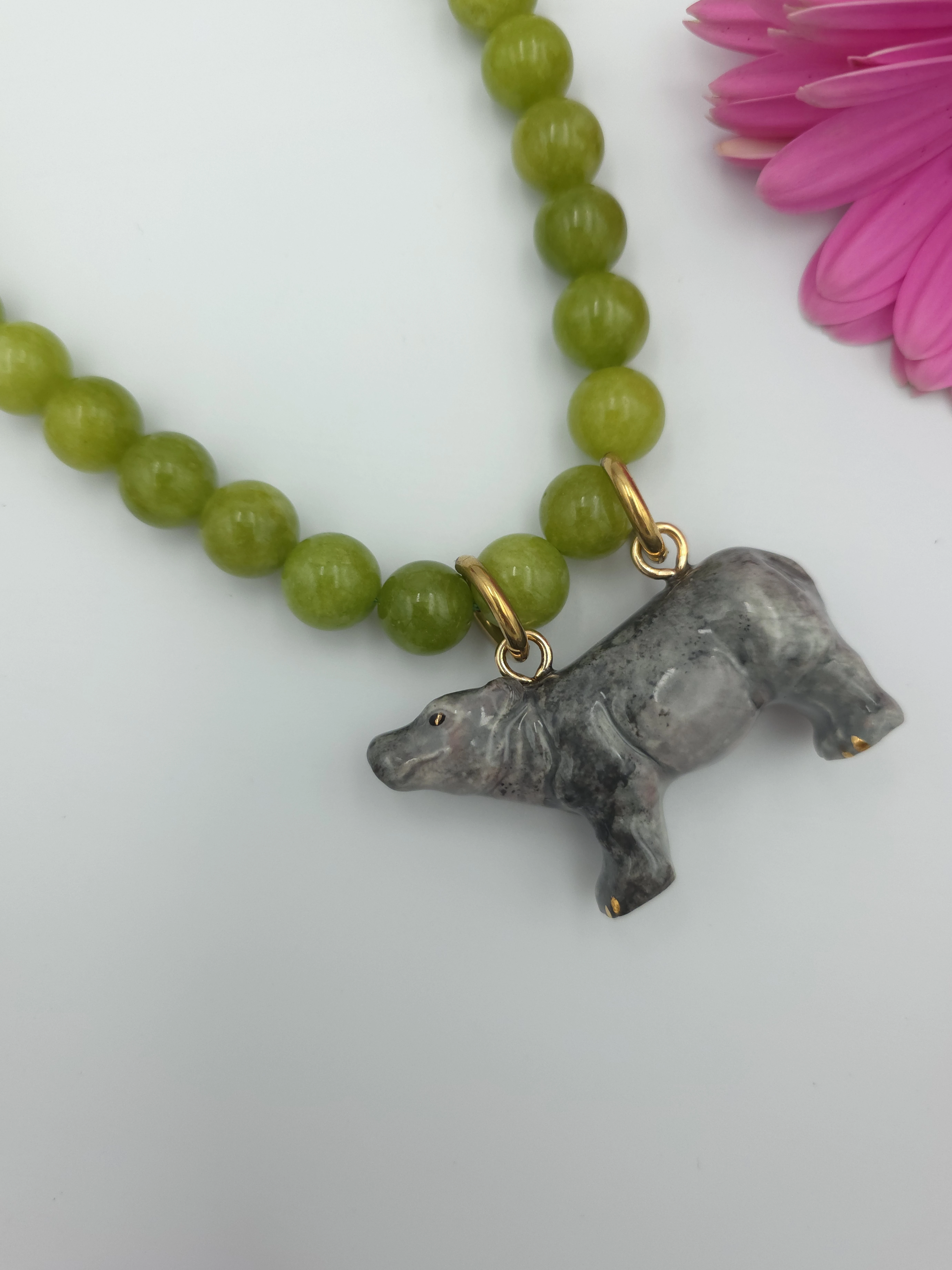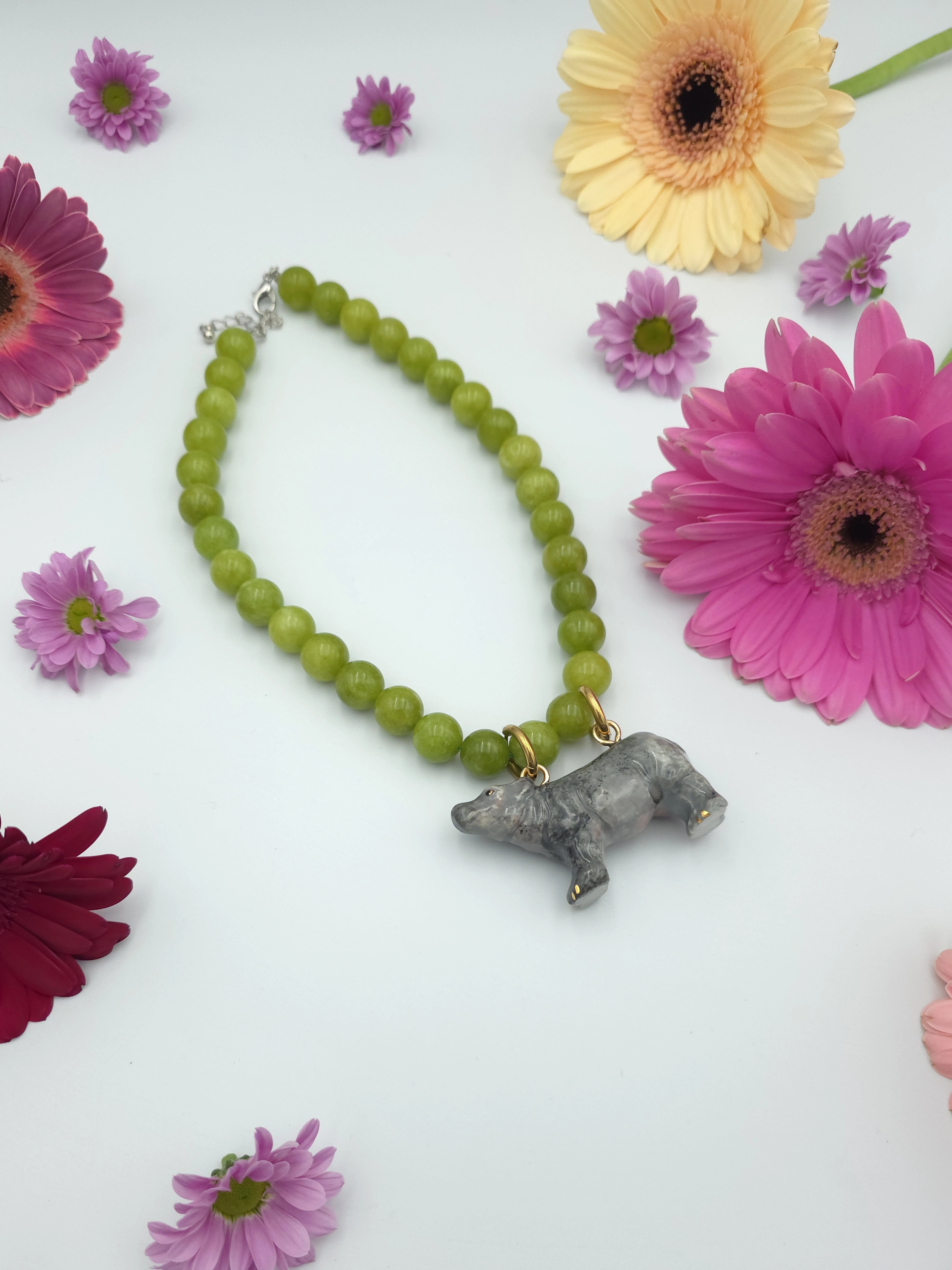 Naszyjnik- jadeit zielony - kto tam? hipopotam!