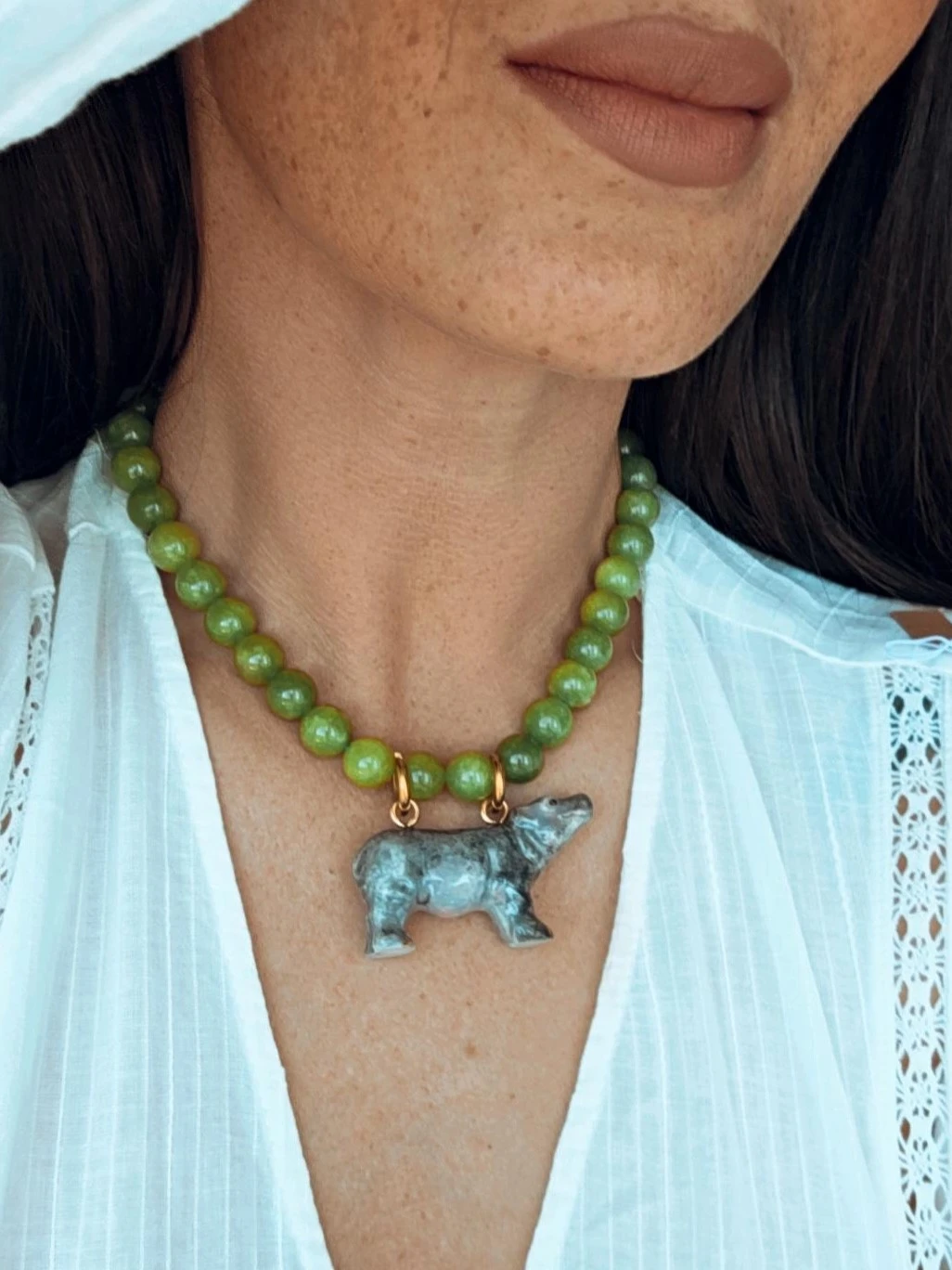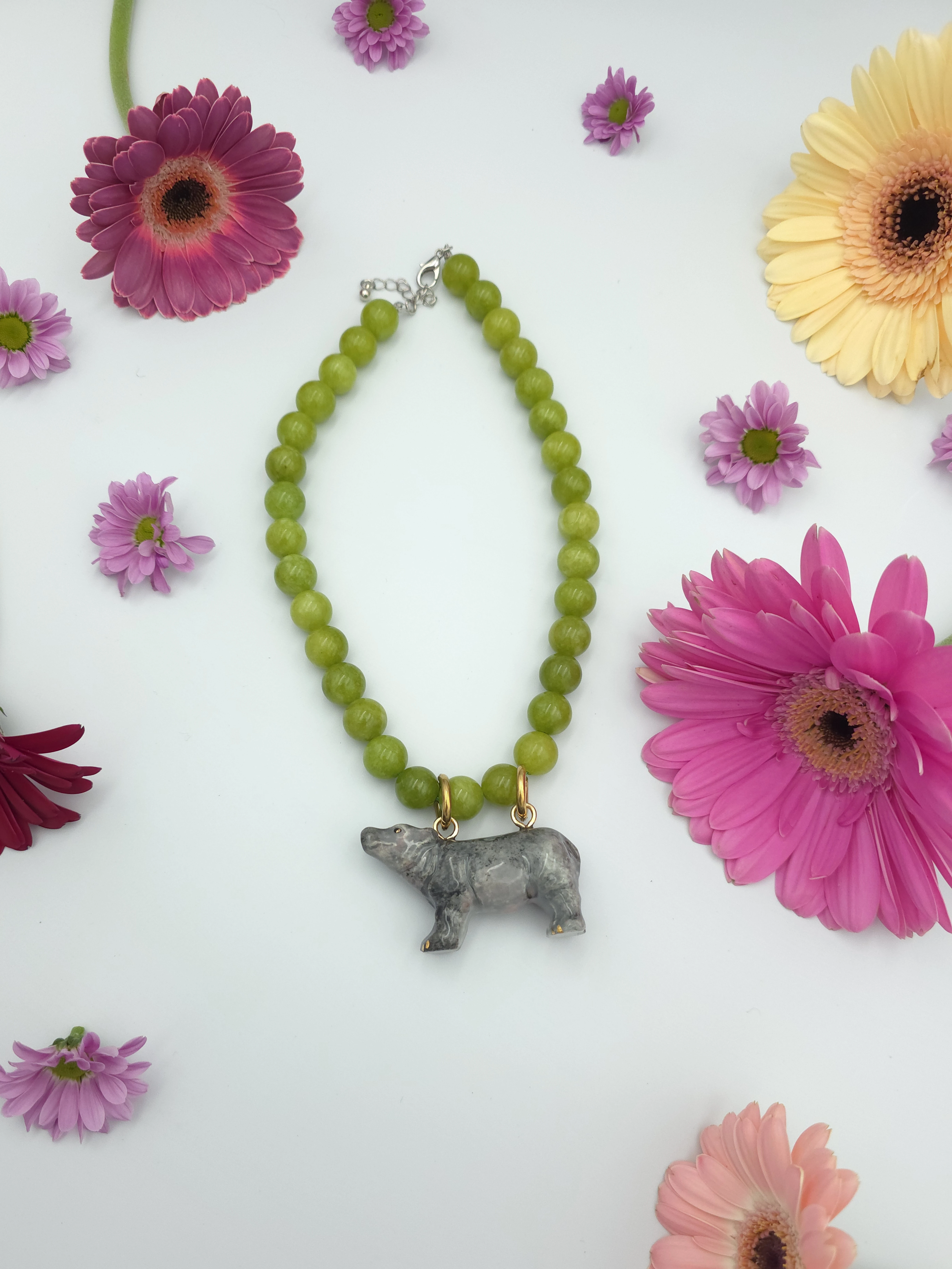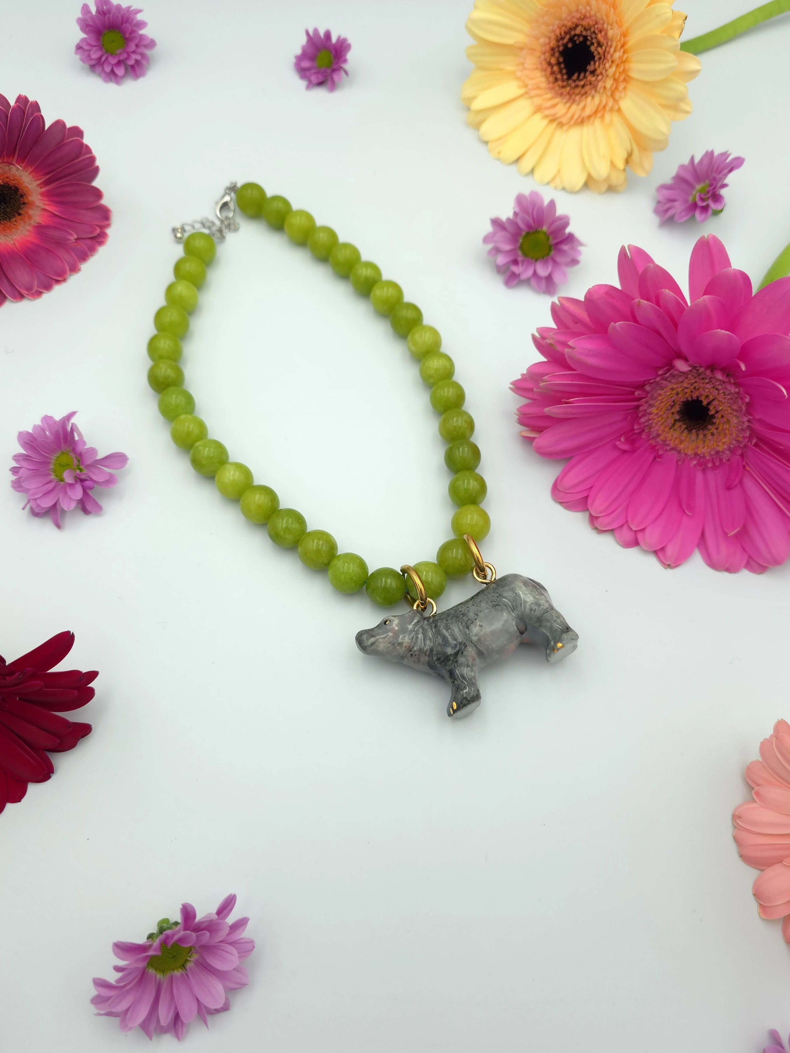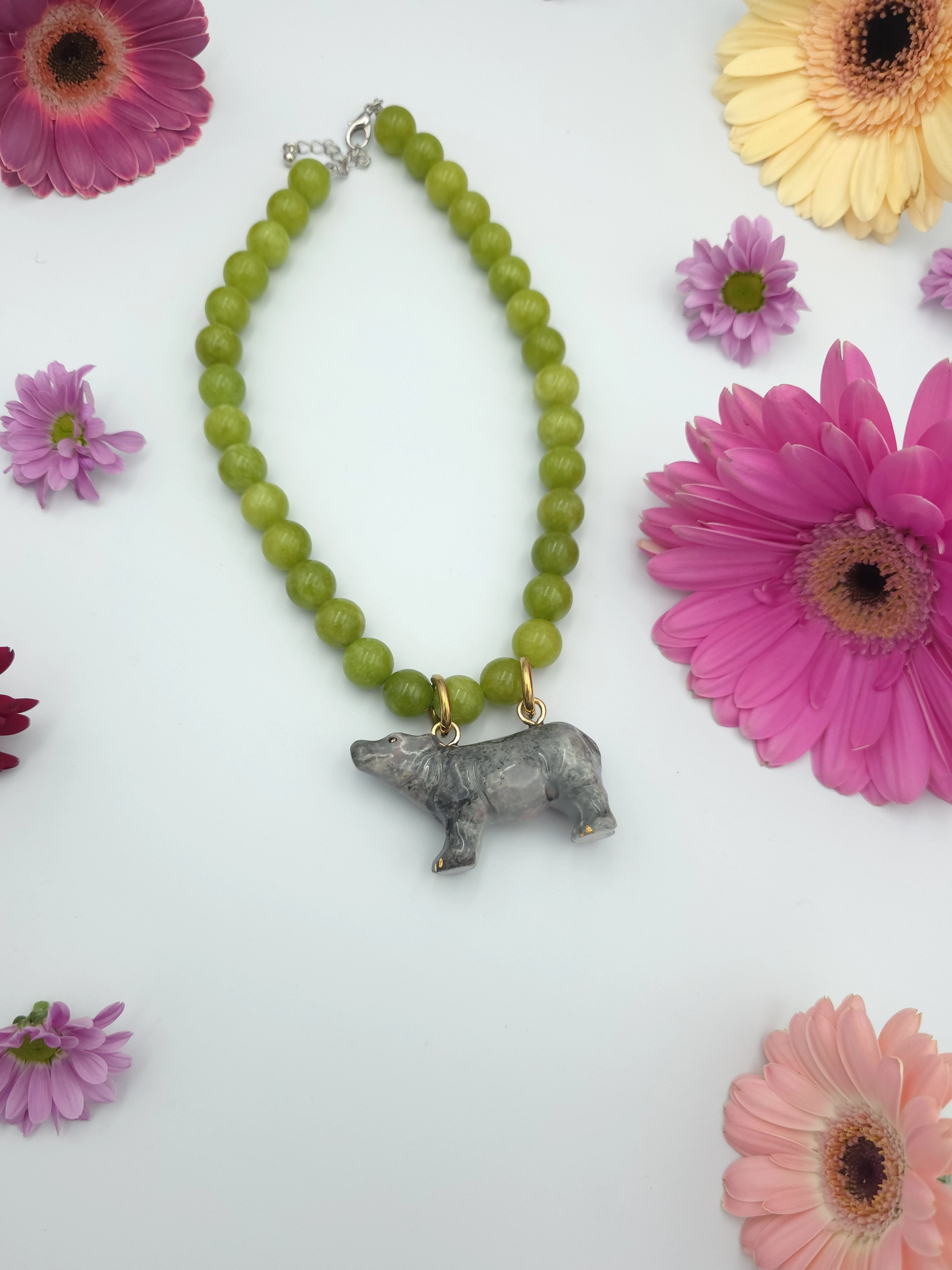 Naszyjnik- jadeit zielony - kto tam? hipopotam!
