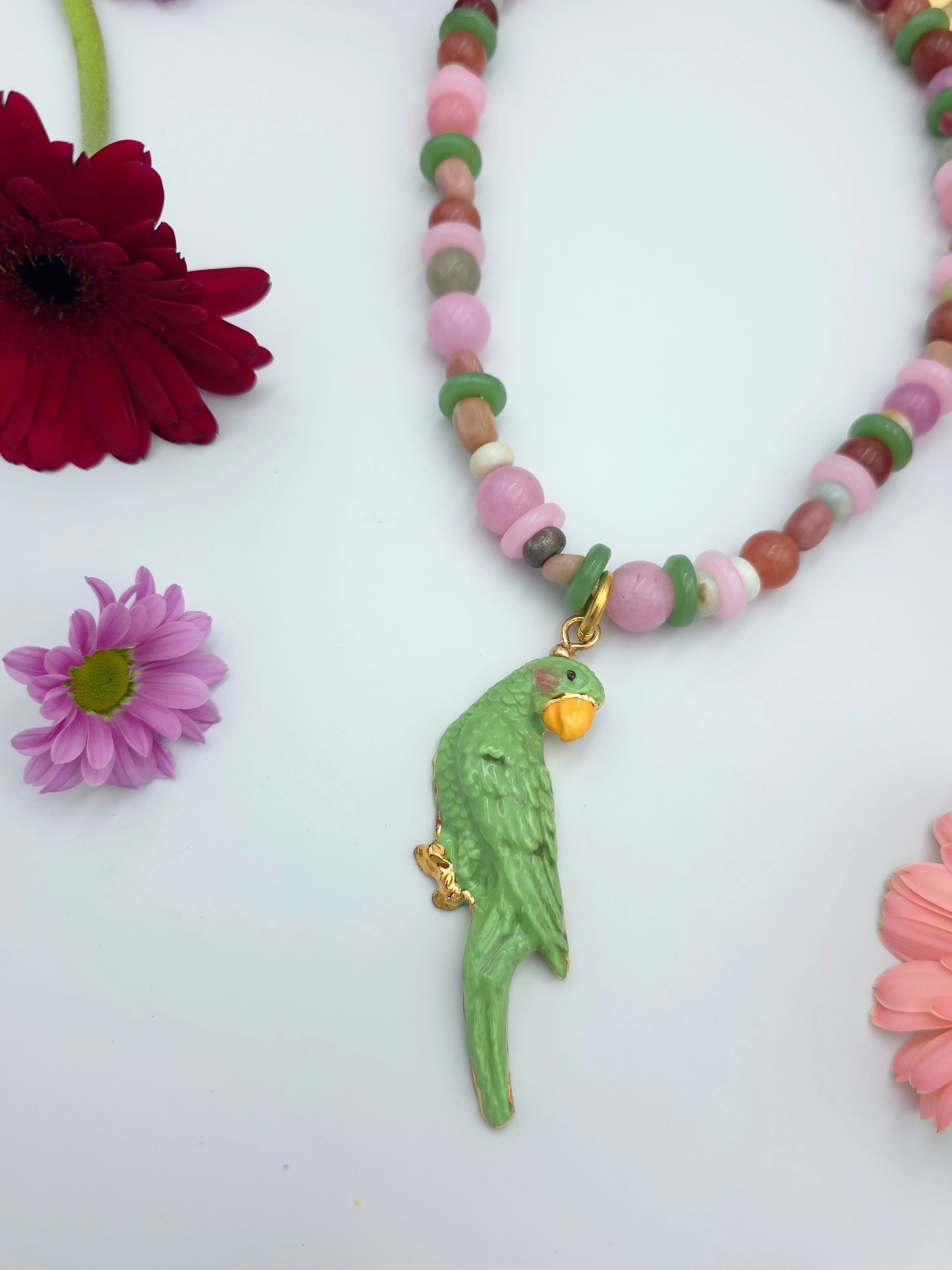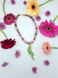 Naszyjnik- kamienie naturalne z papużką