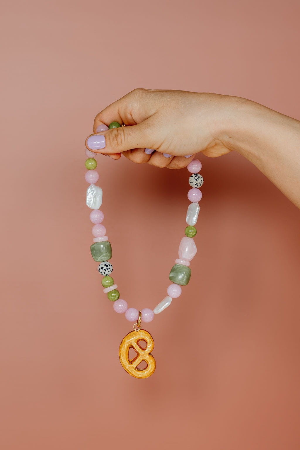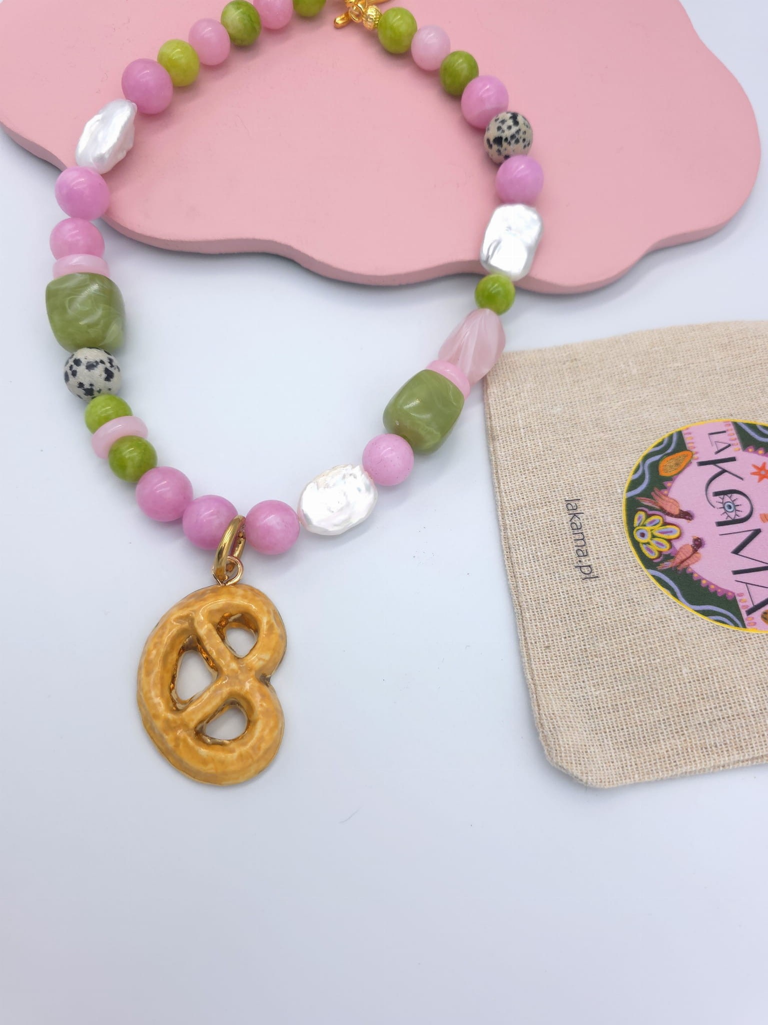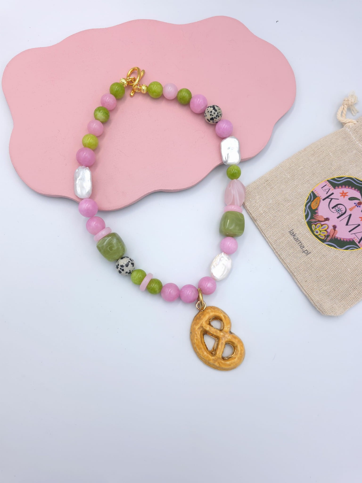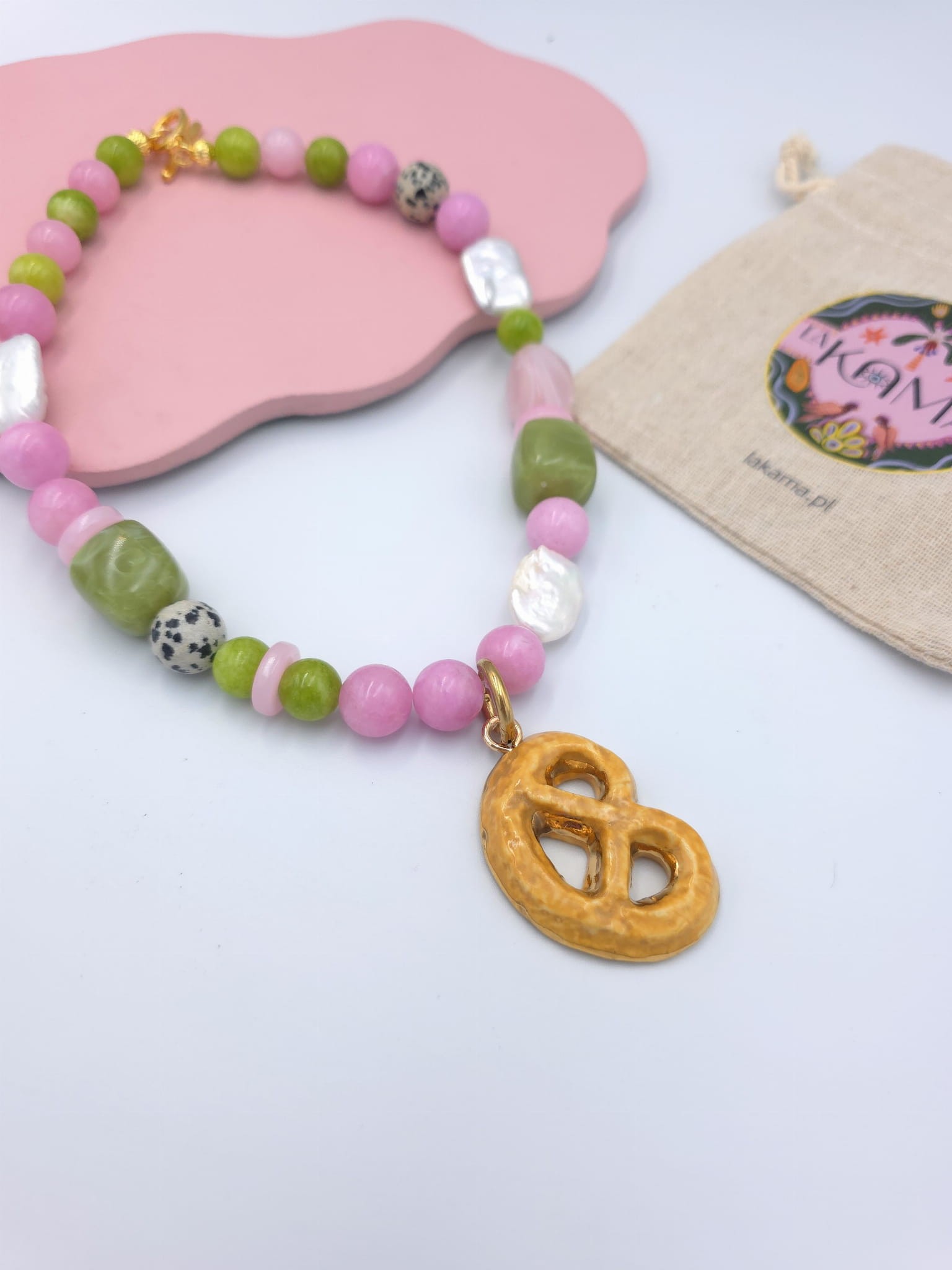 Naszyjnik z perłami i kamieniami naturalnymi z kruchym ciasteczkiem.