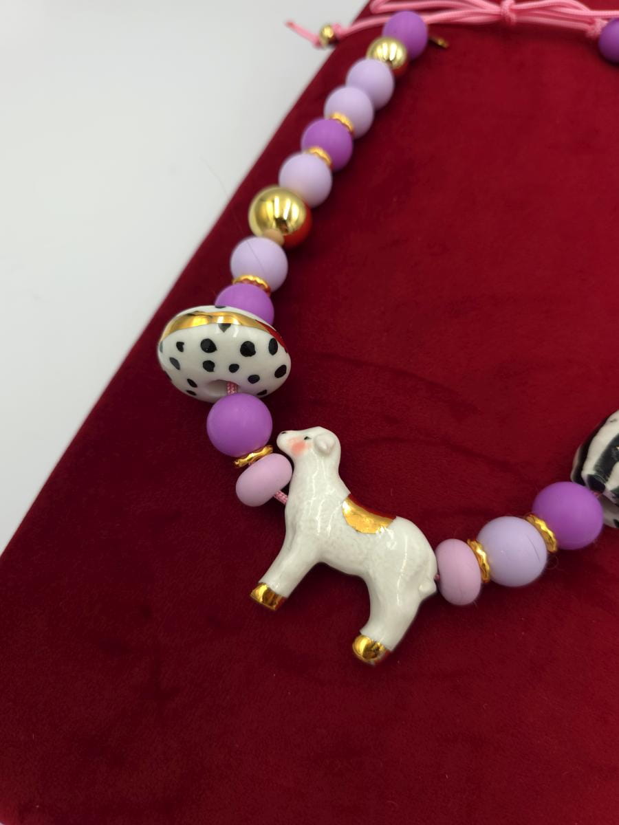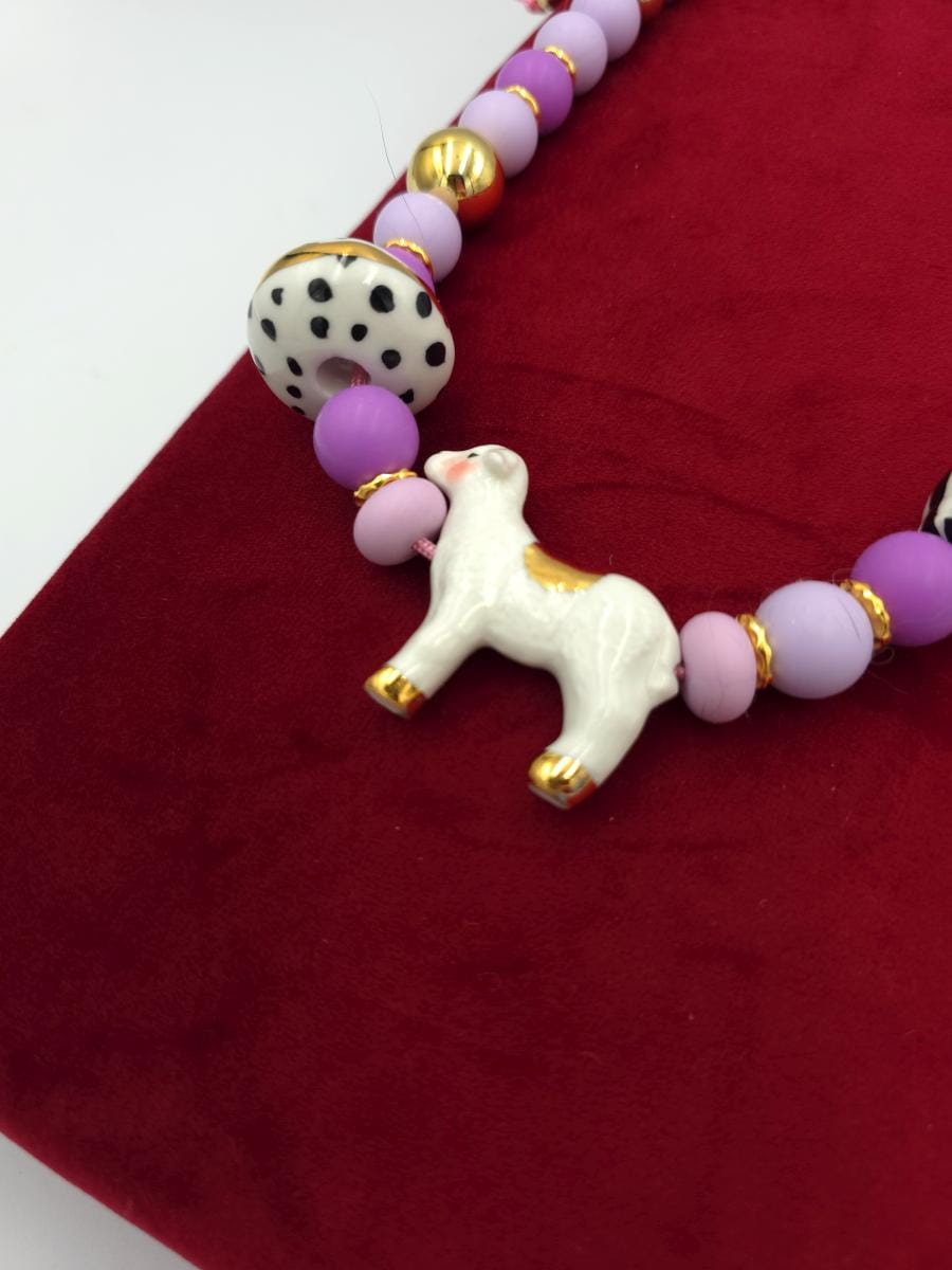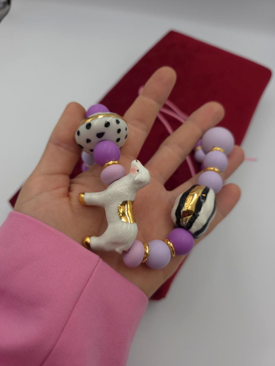 Koraliki porcelanowe, akrylowe, silikonowe, zawieszka porcelanowa złocona.