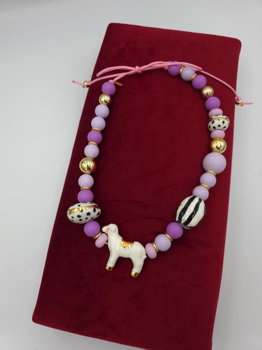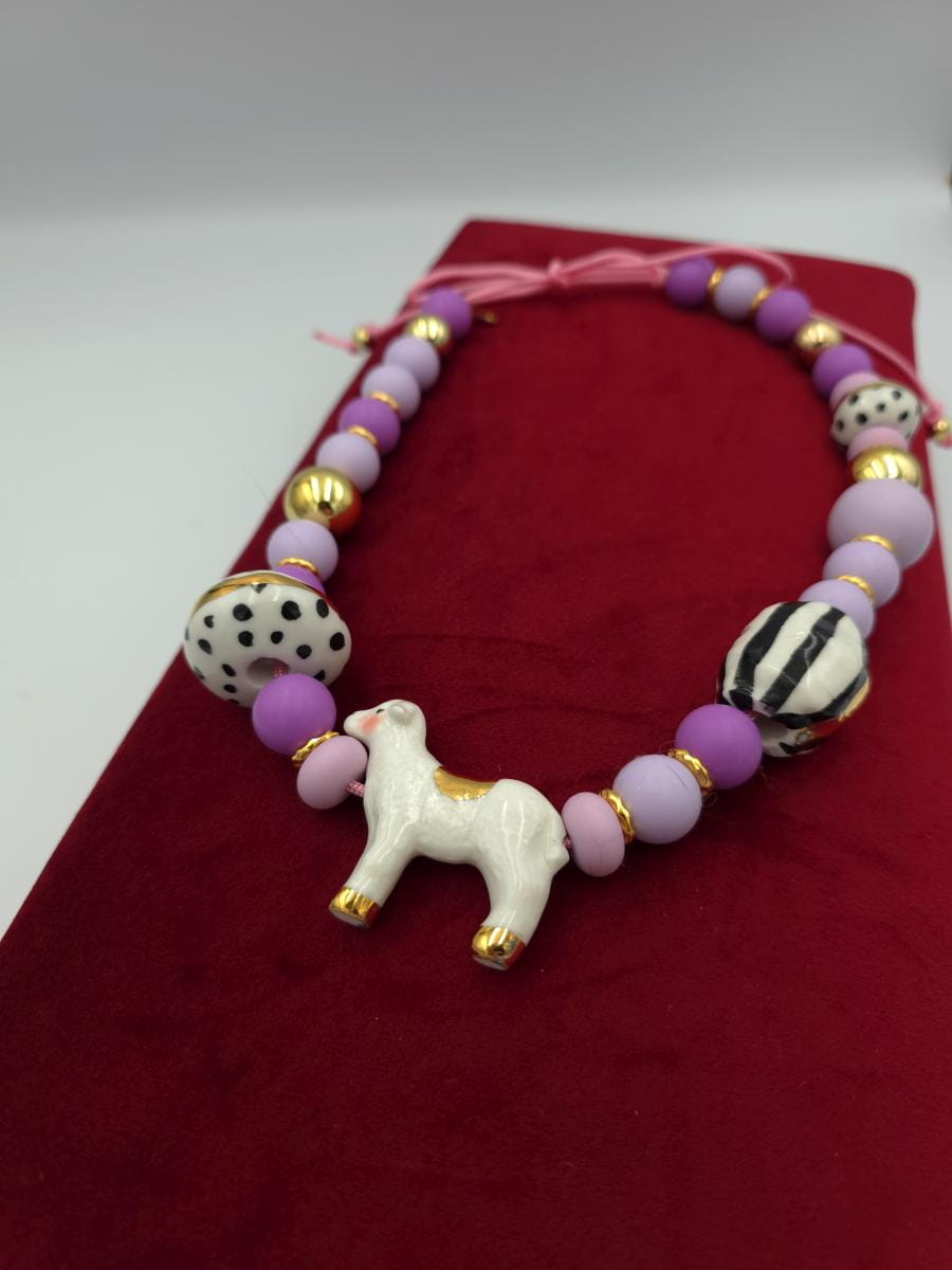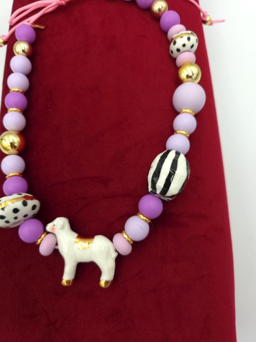 Koraliki porcelanowe, akrylowe, silikonowe, zawieszka porcelanowa złocona.