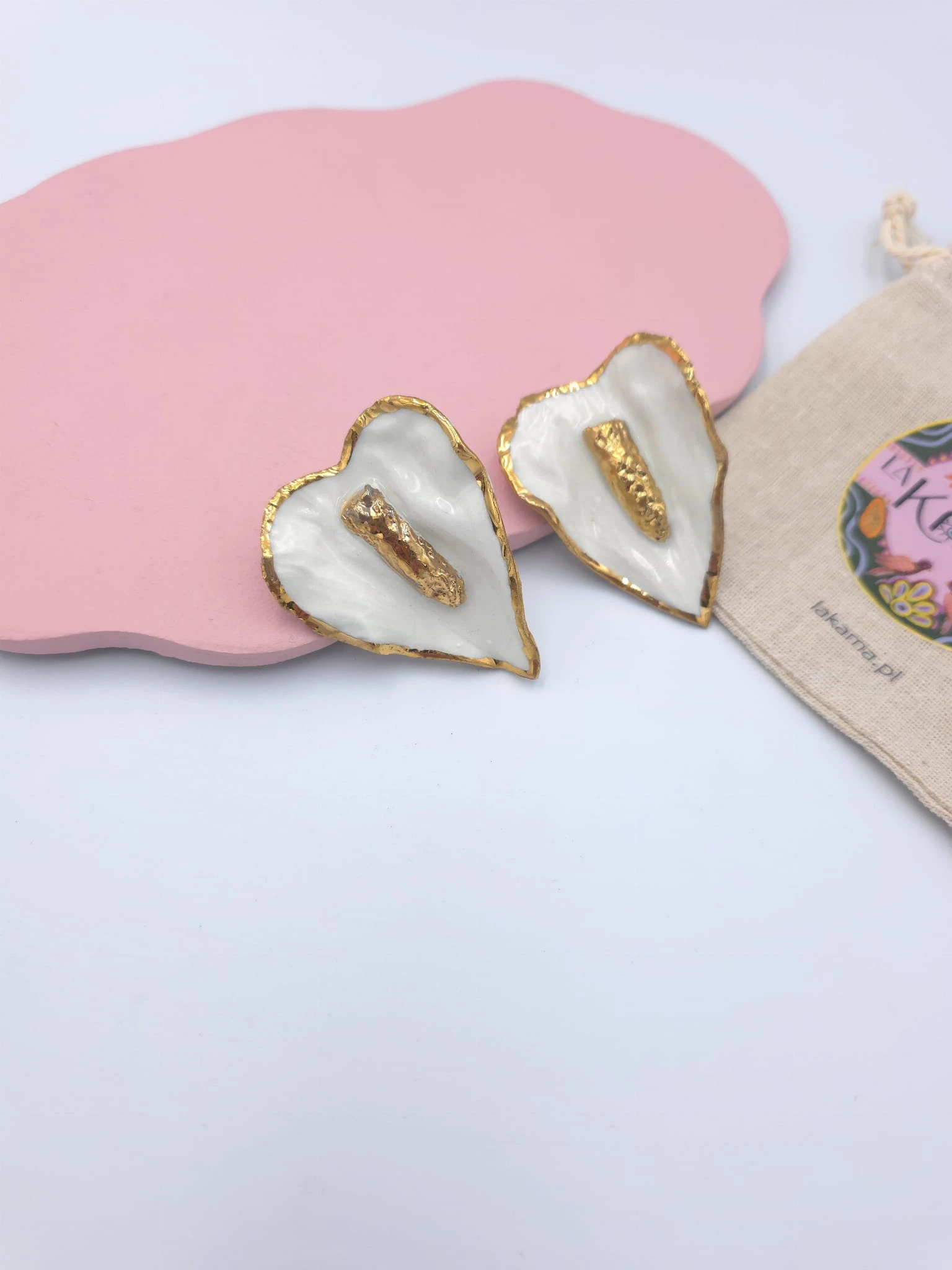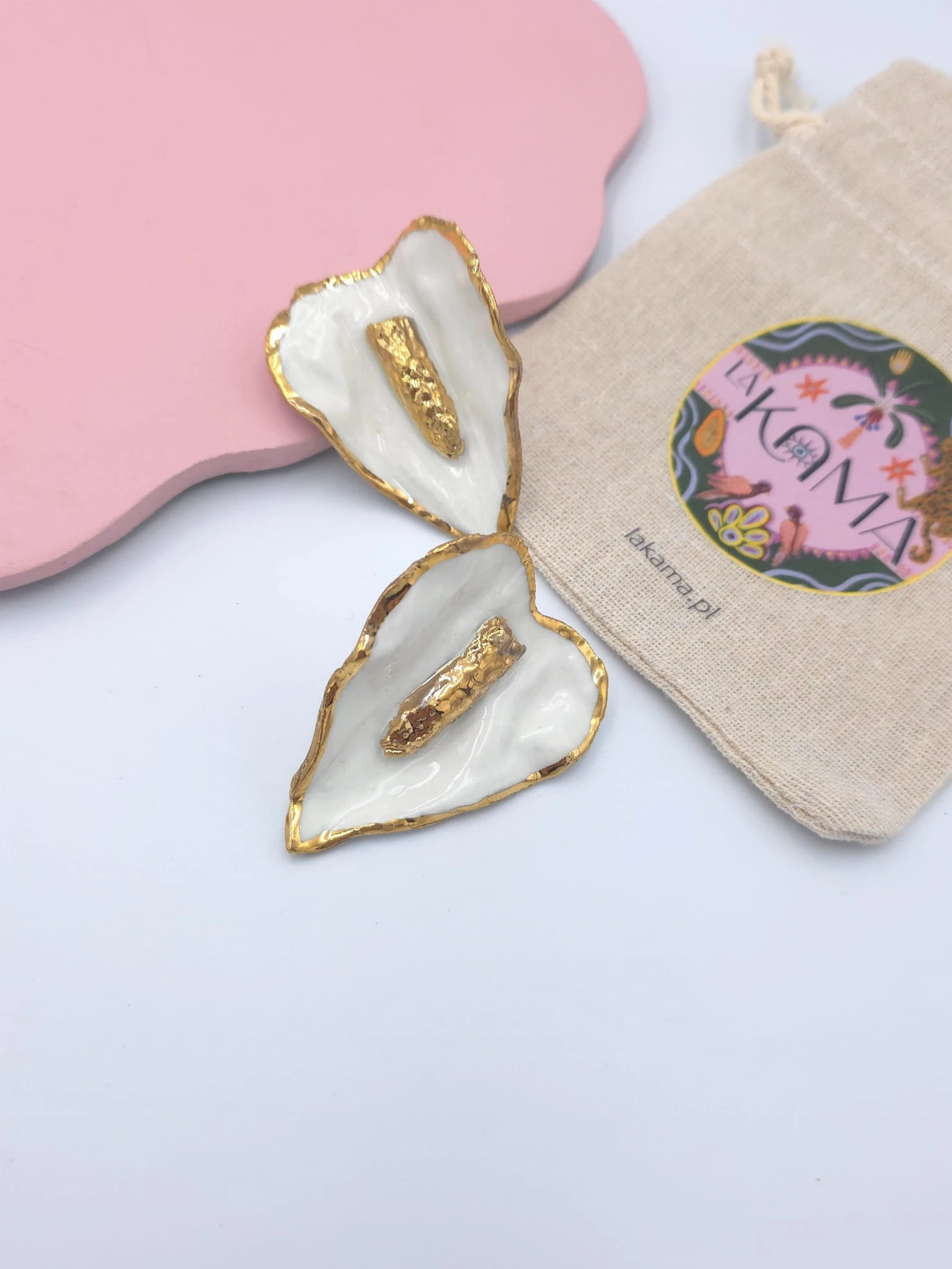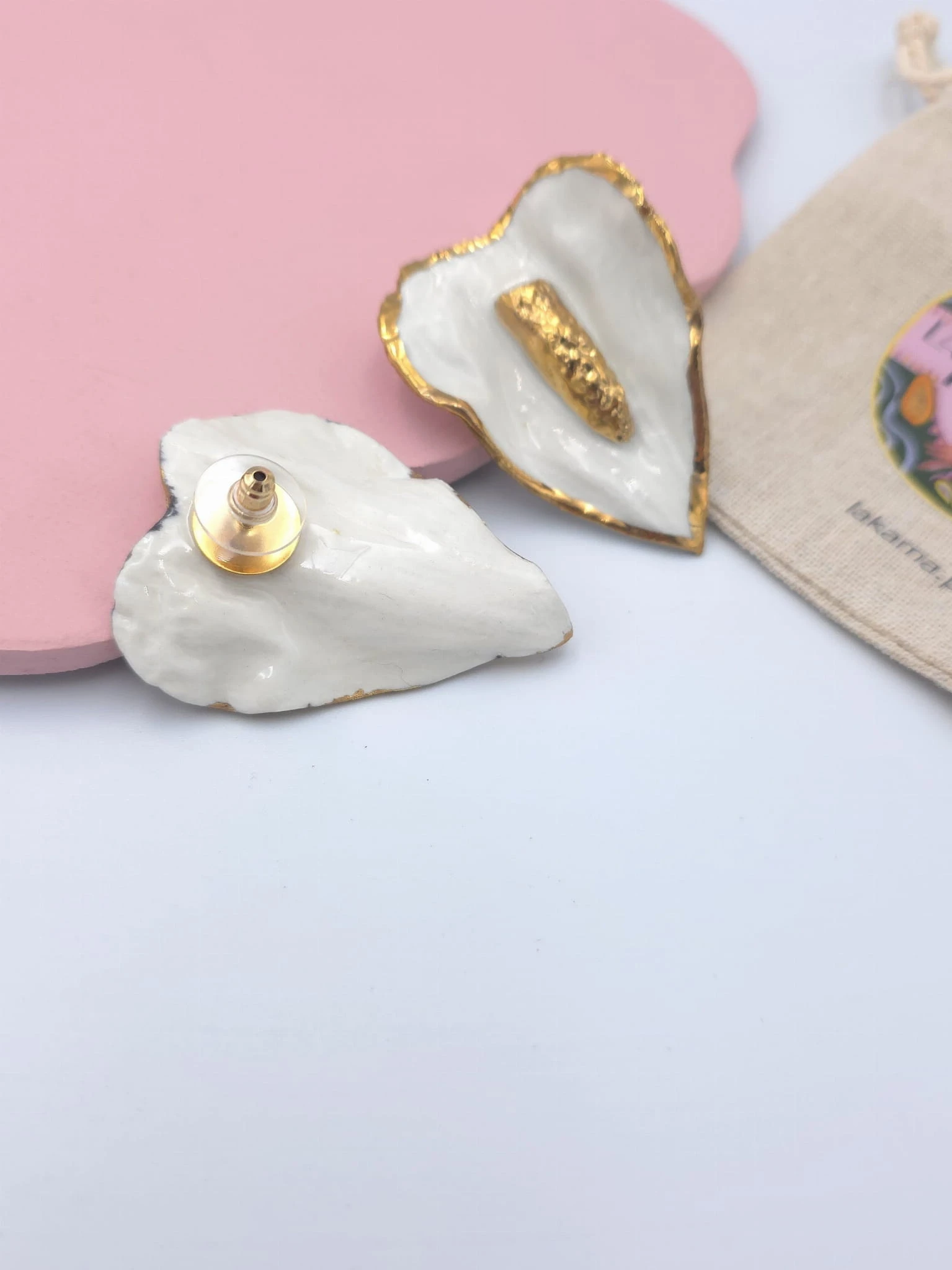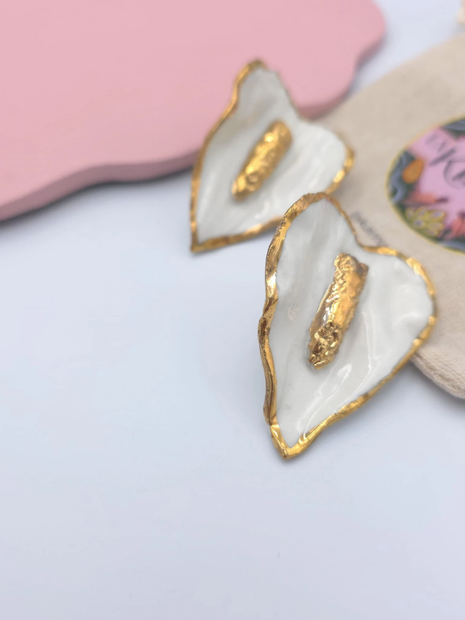 Kolczyki z porcelany, zdobione prawdziwym złotem.
