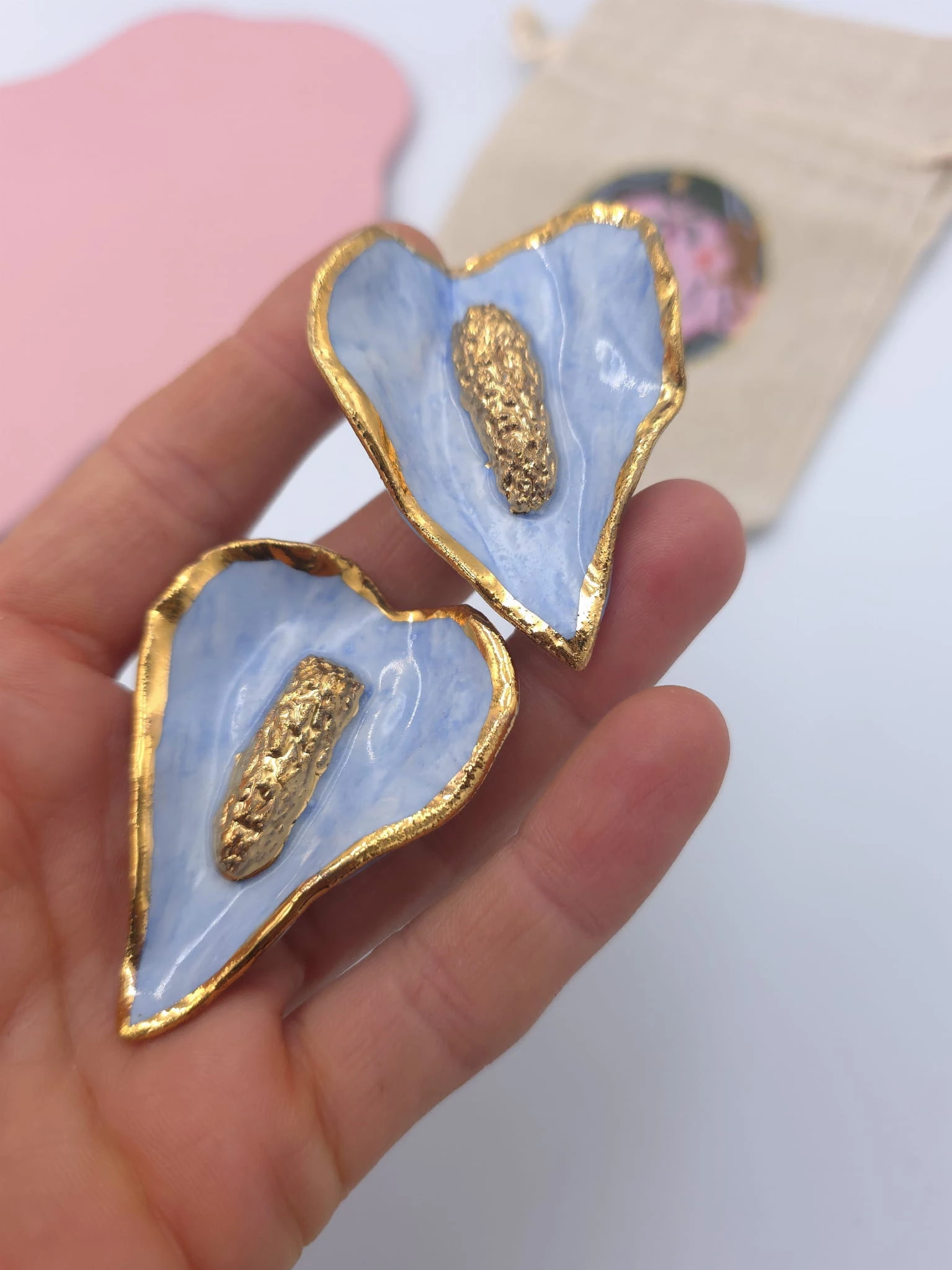 Każdy egzemplarz jest ręcznie formowany, malowany i zdobiony. Wszystkie moje prace są starannie wykończone moimi rękami, co sprawia, że nie powstanie drugi taki sam produkt. Kolczyki z porcelany są lekkie i łatwe w noszeniu.