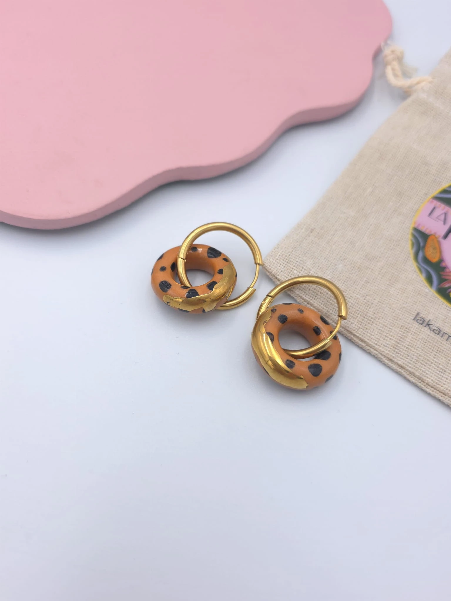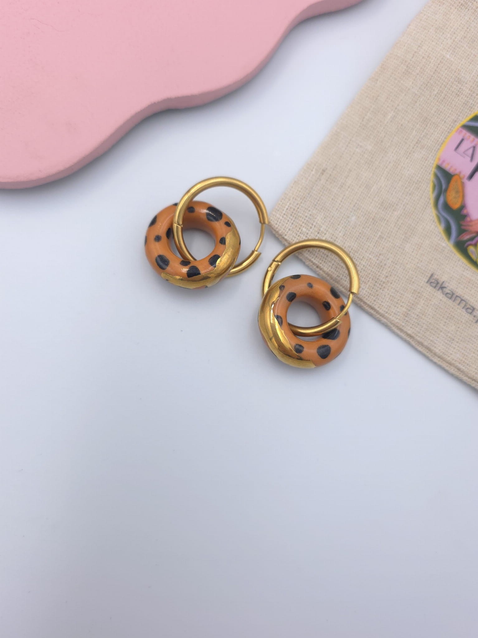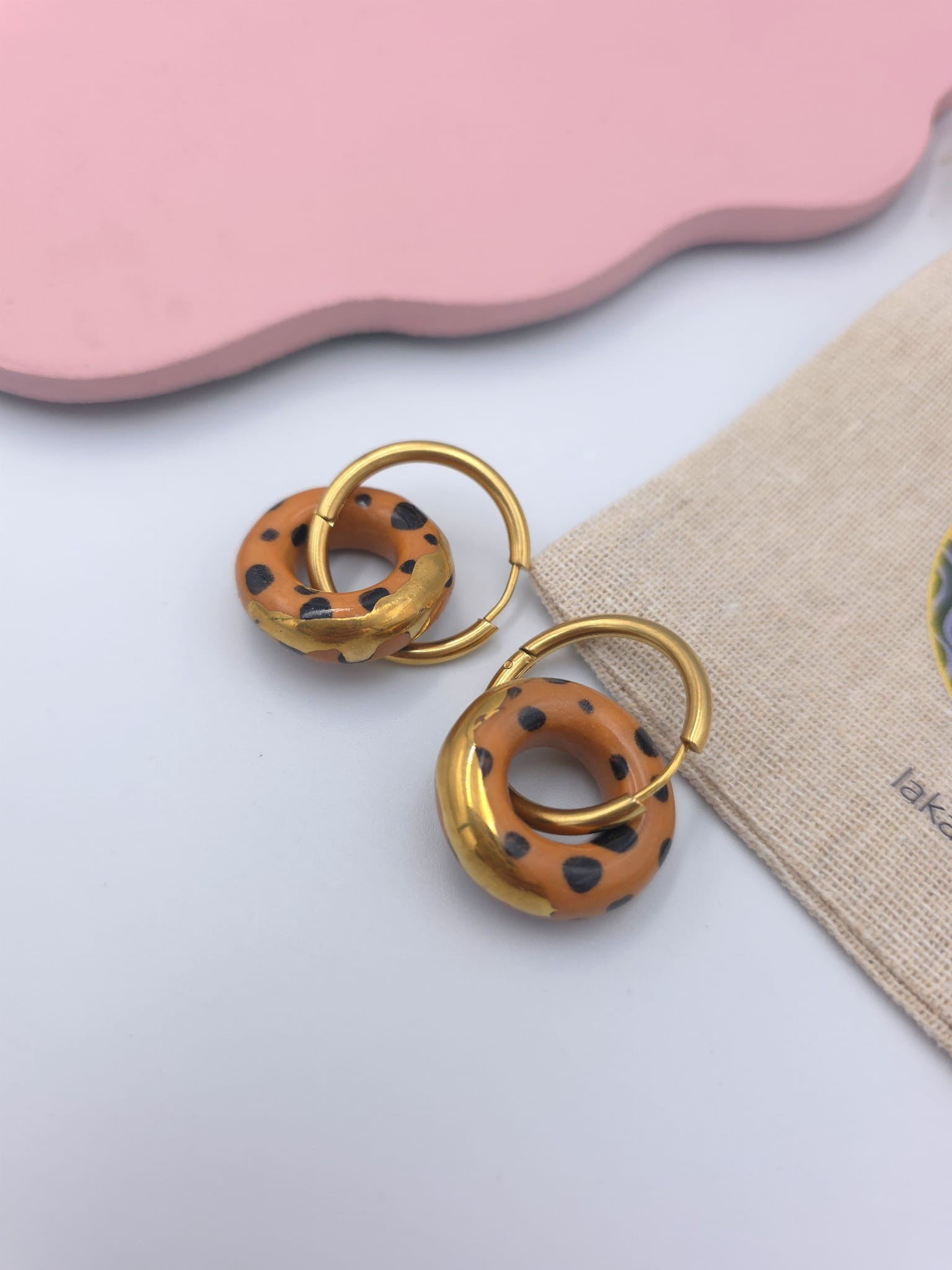 Porcelanowe kolczyki - kółka lamparty