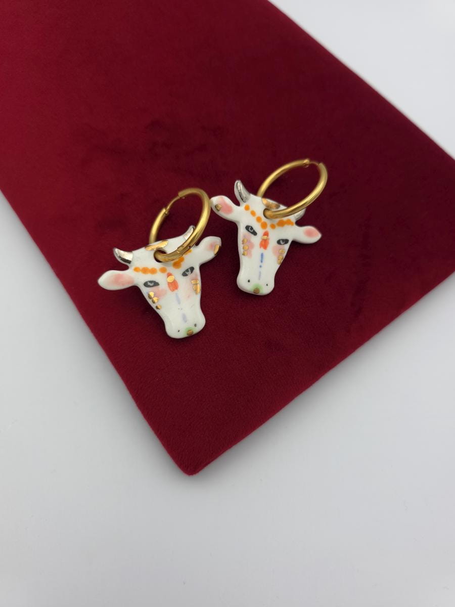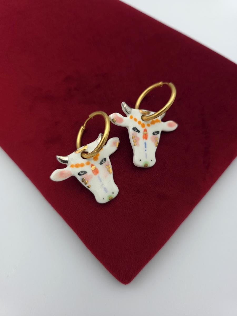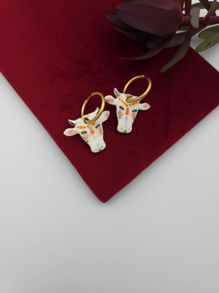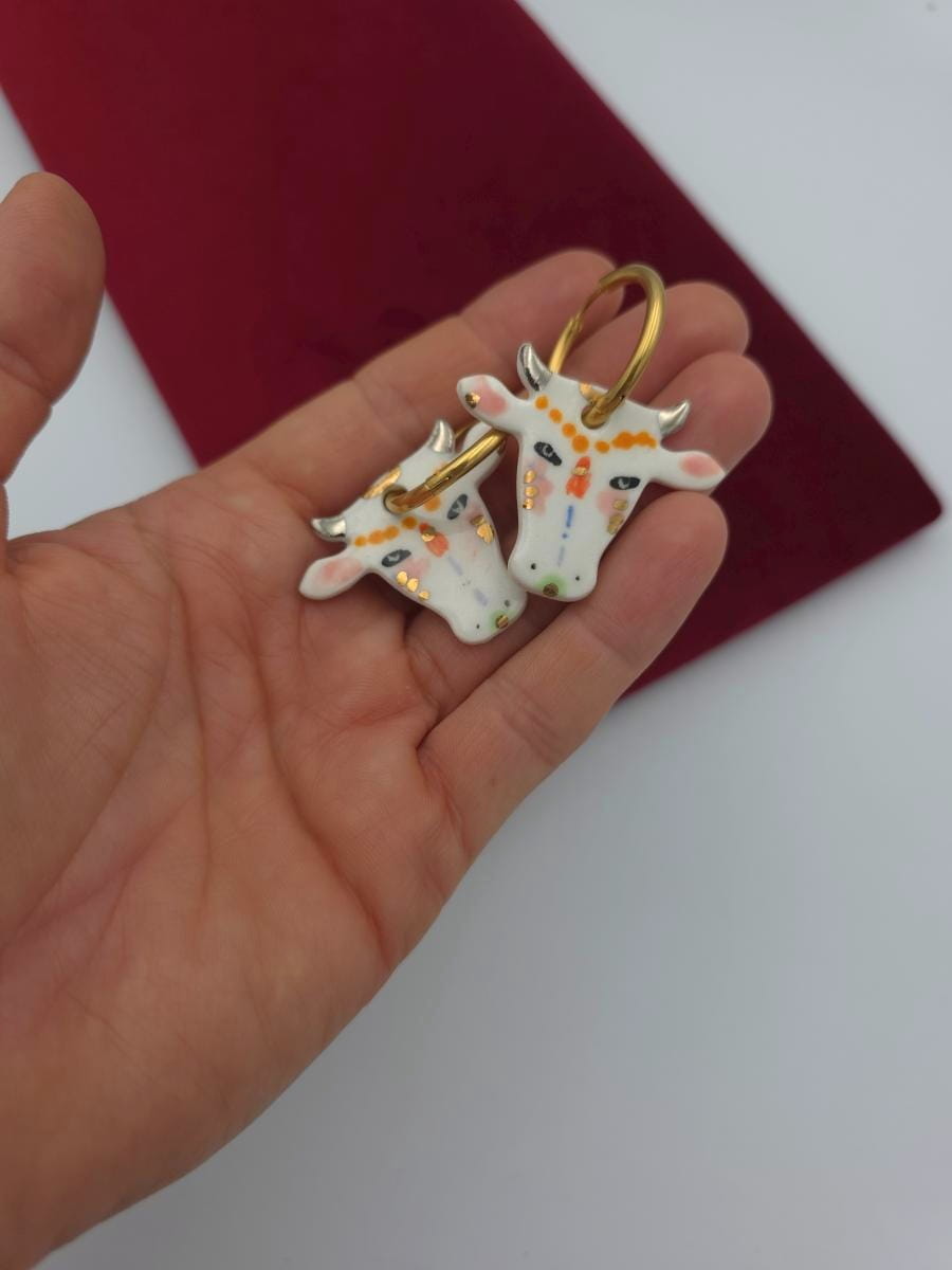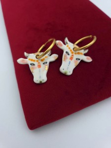 Kolczyki z porcelany, zdobione prawdziwym złotem.