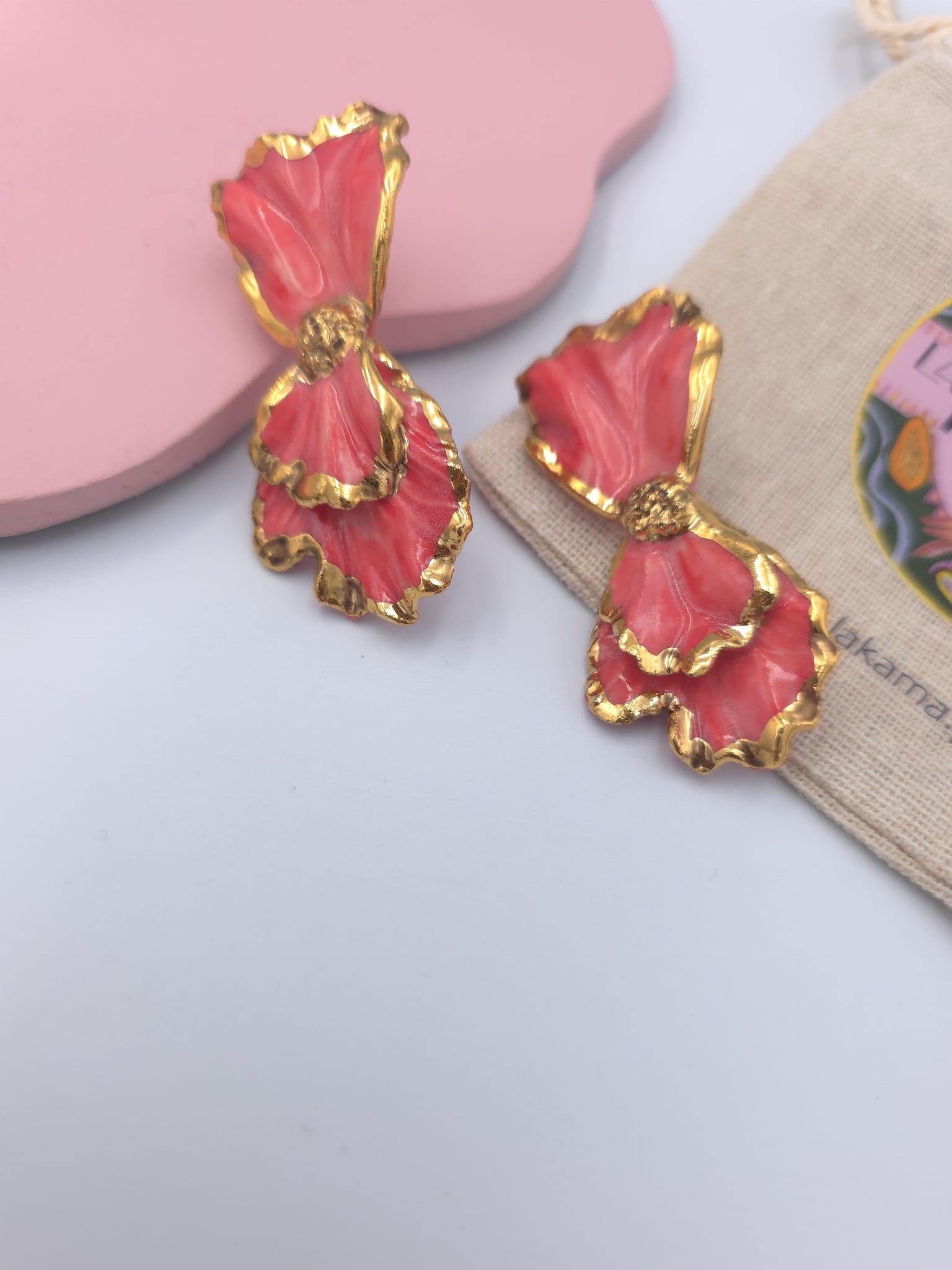Kolczyki z porcelany, zdobione prawdziwym złotem.