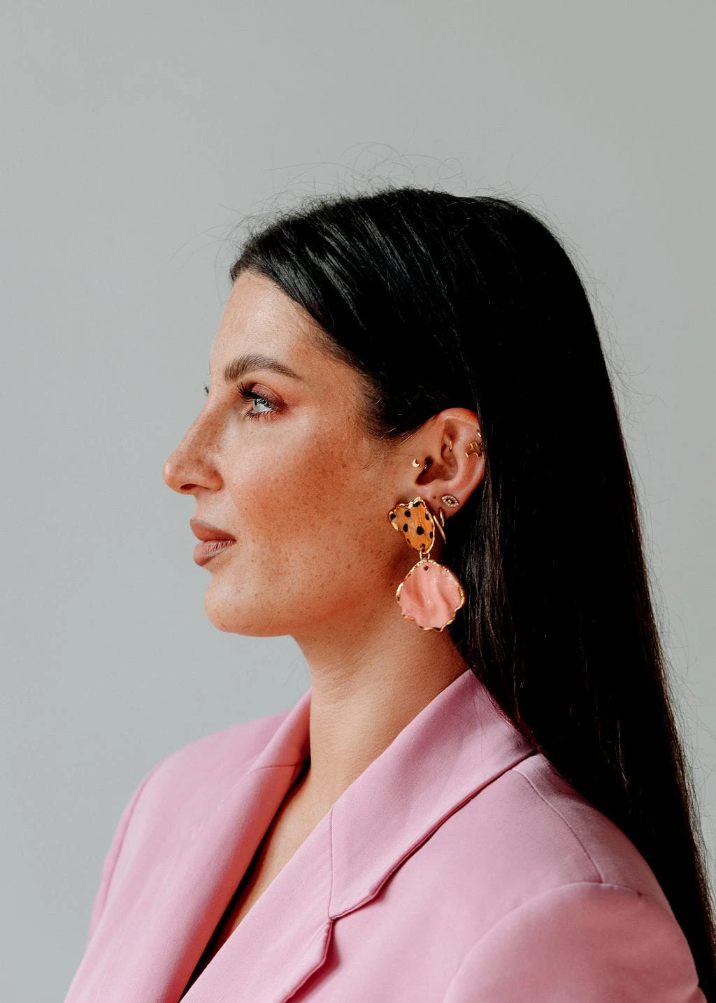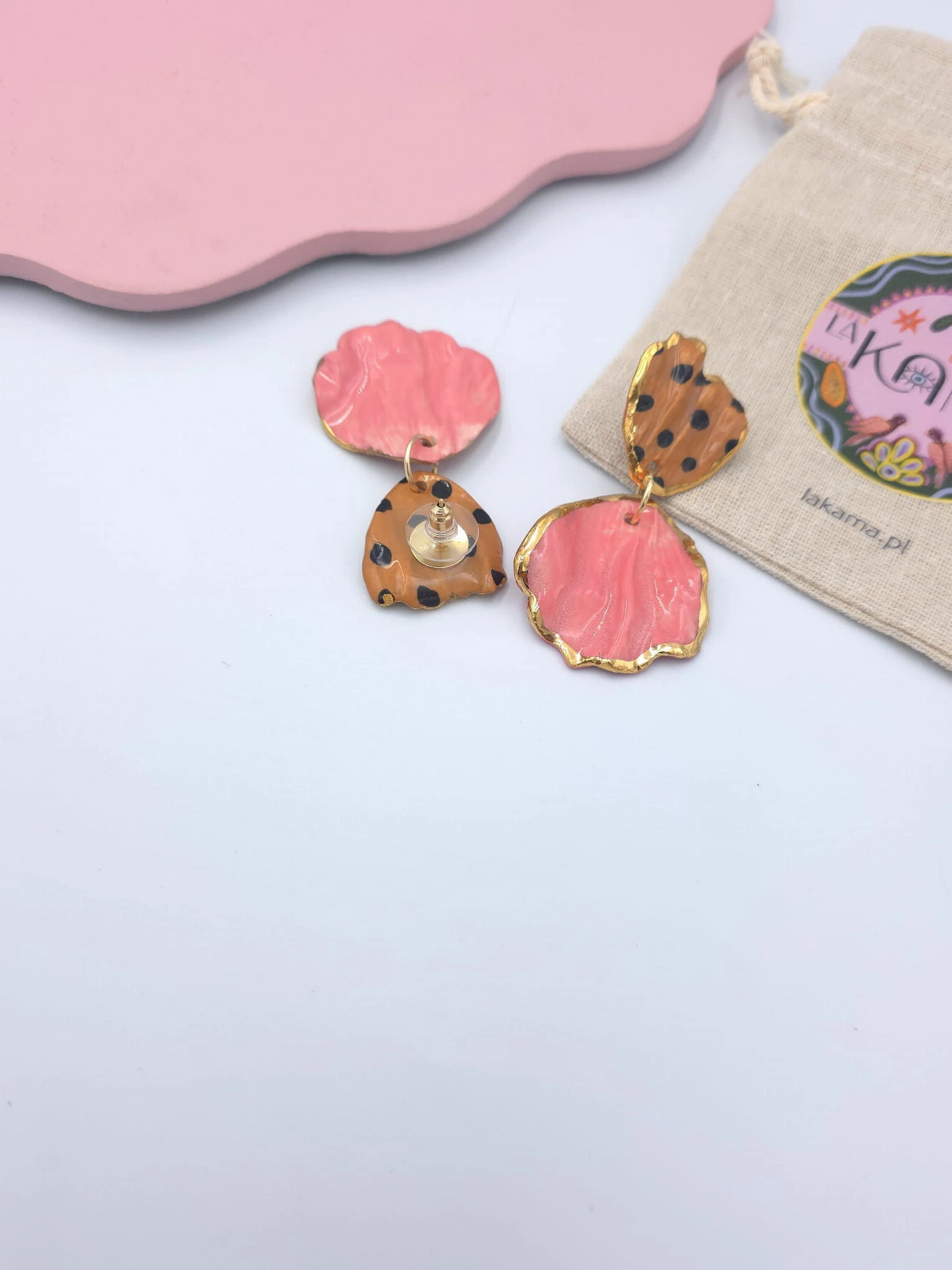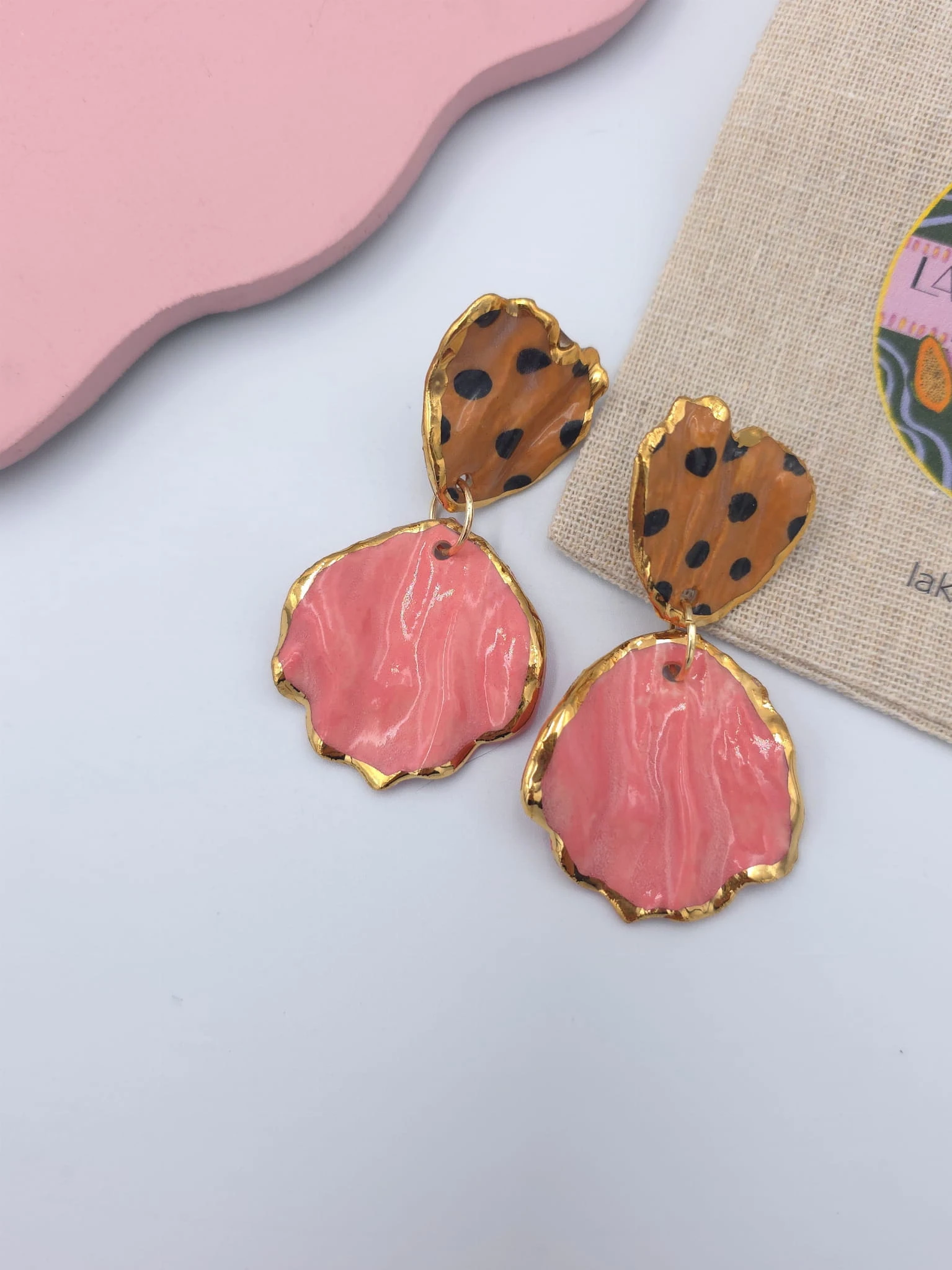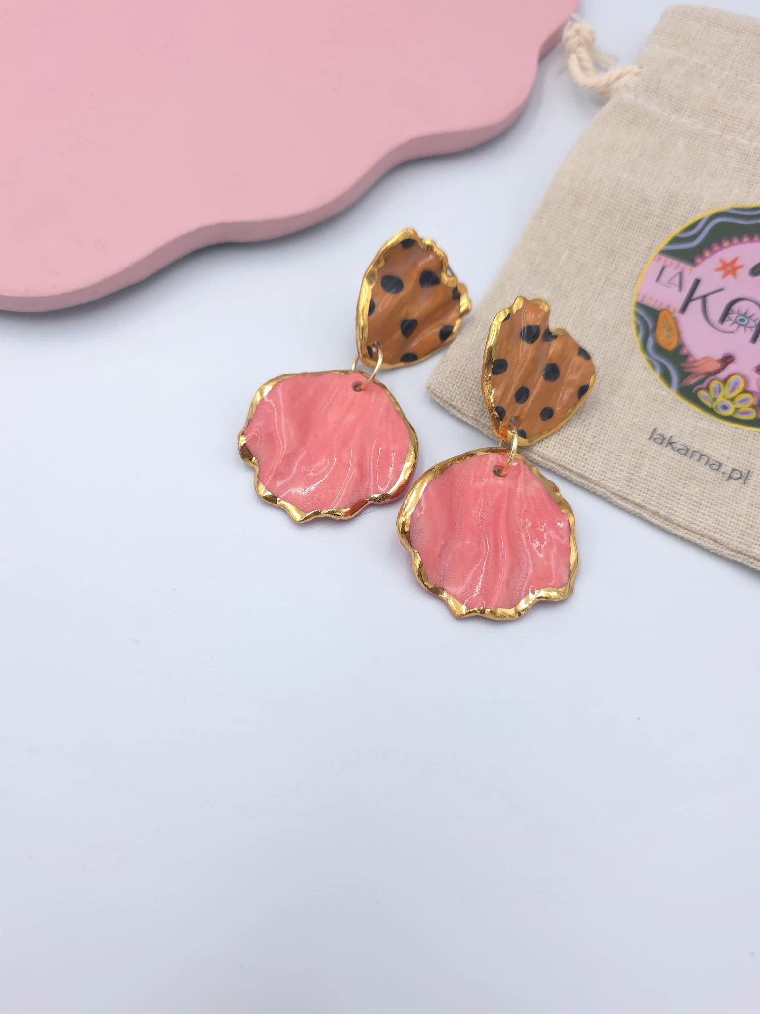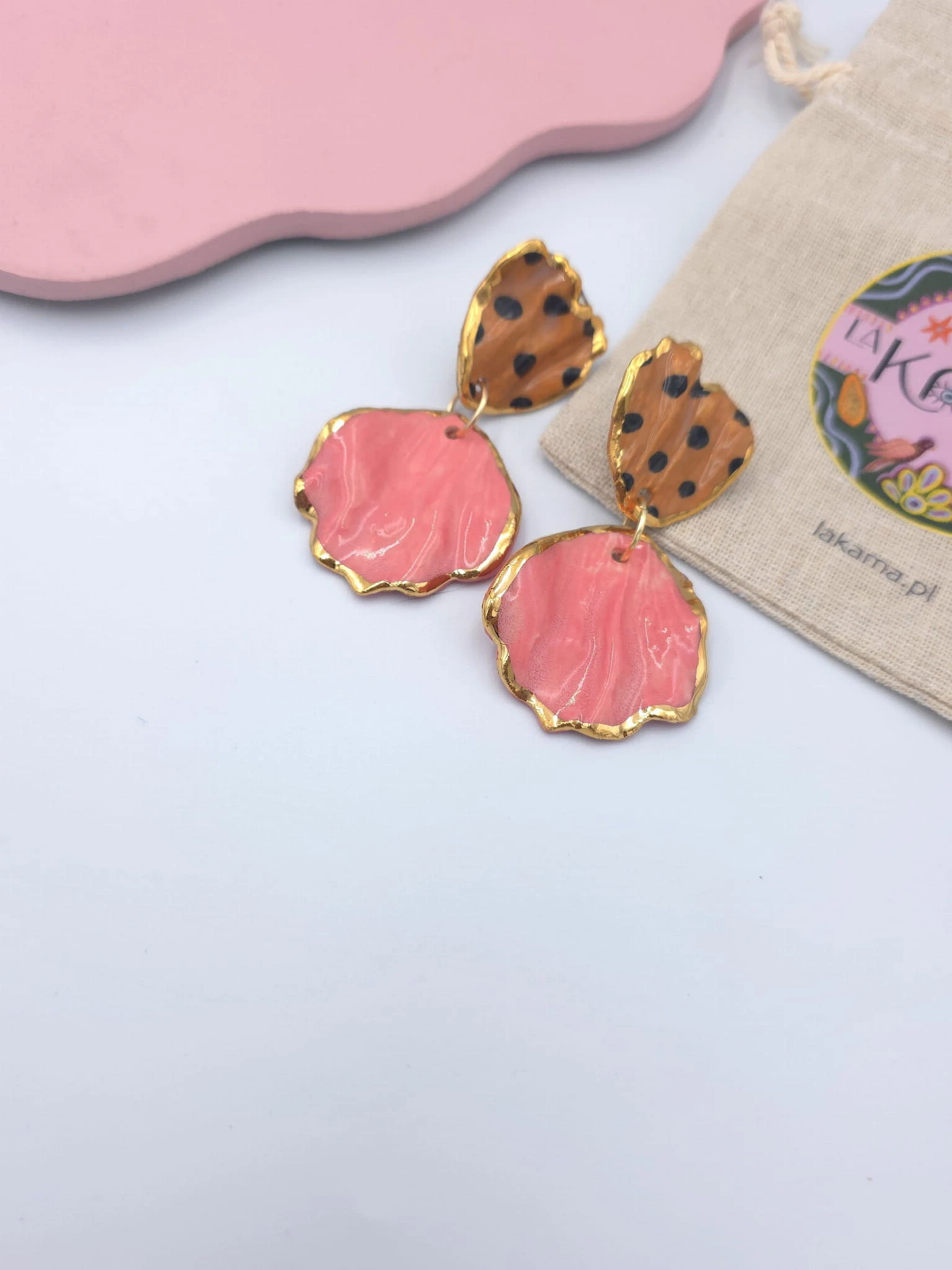 Porcelanowe kolczyki - lamparty z różem