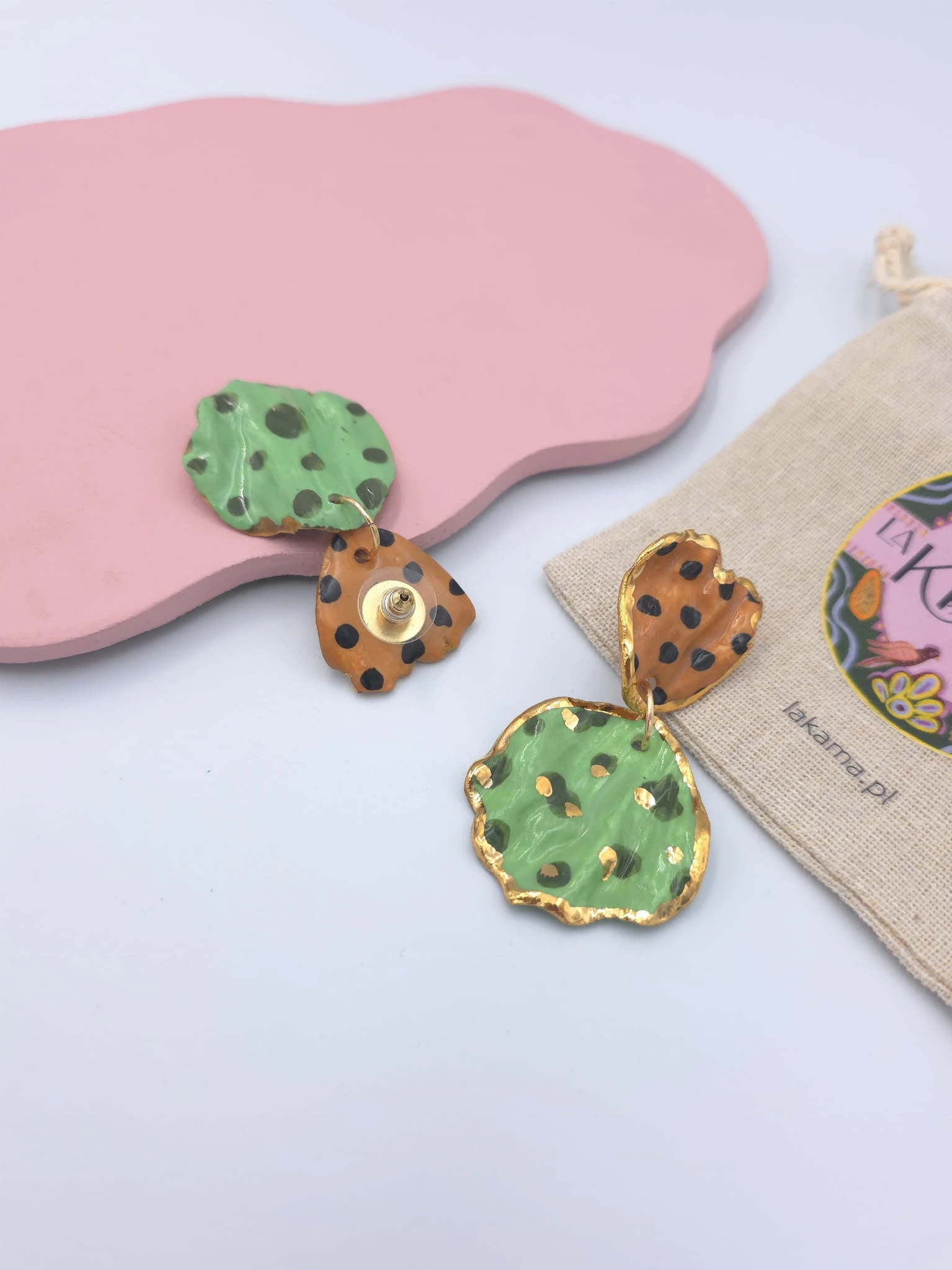 Bardzo lekkie kolczyki z porcelany, zdobione prawdziwym złotem