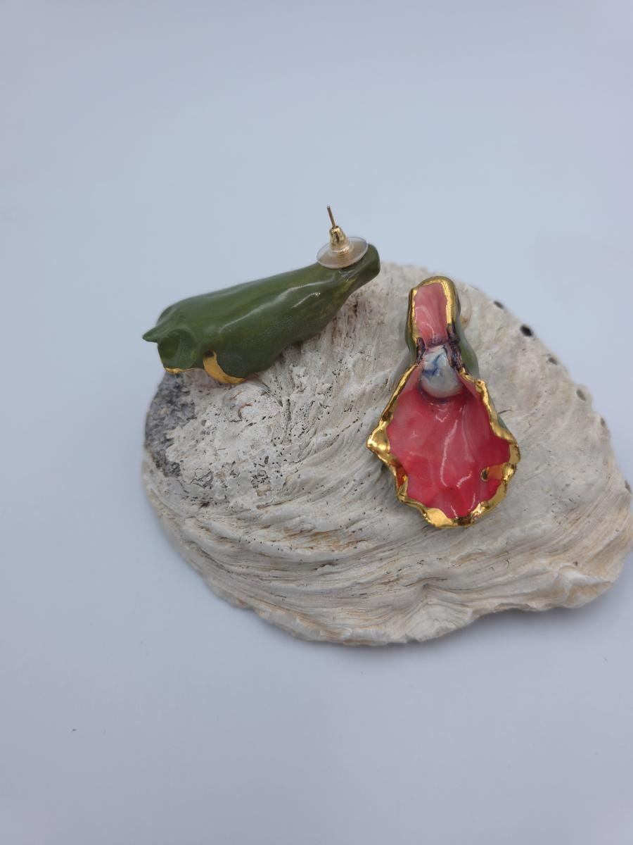 Kolczyki z porcelany, zdobione prawdziwym złotem.
