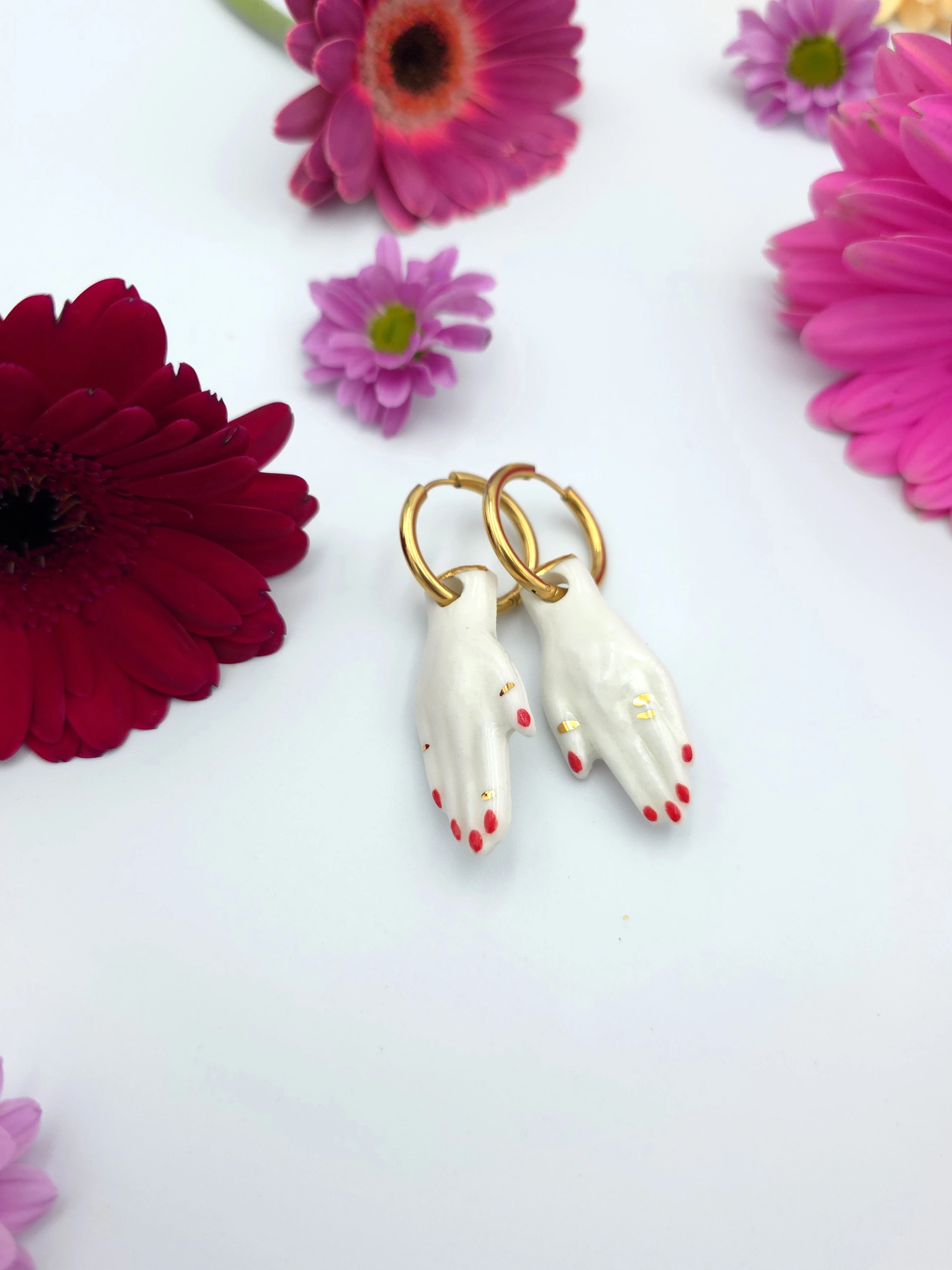 Kolczyki z porcelany, zdobione prawdziwym złotem.