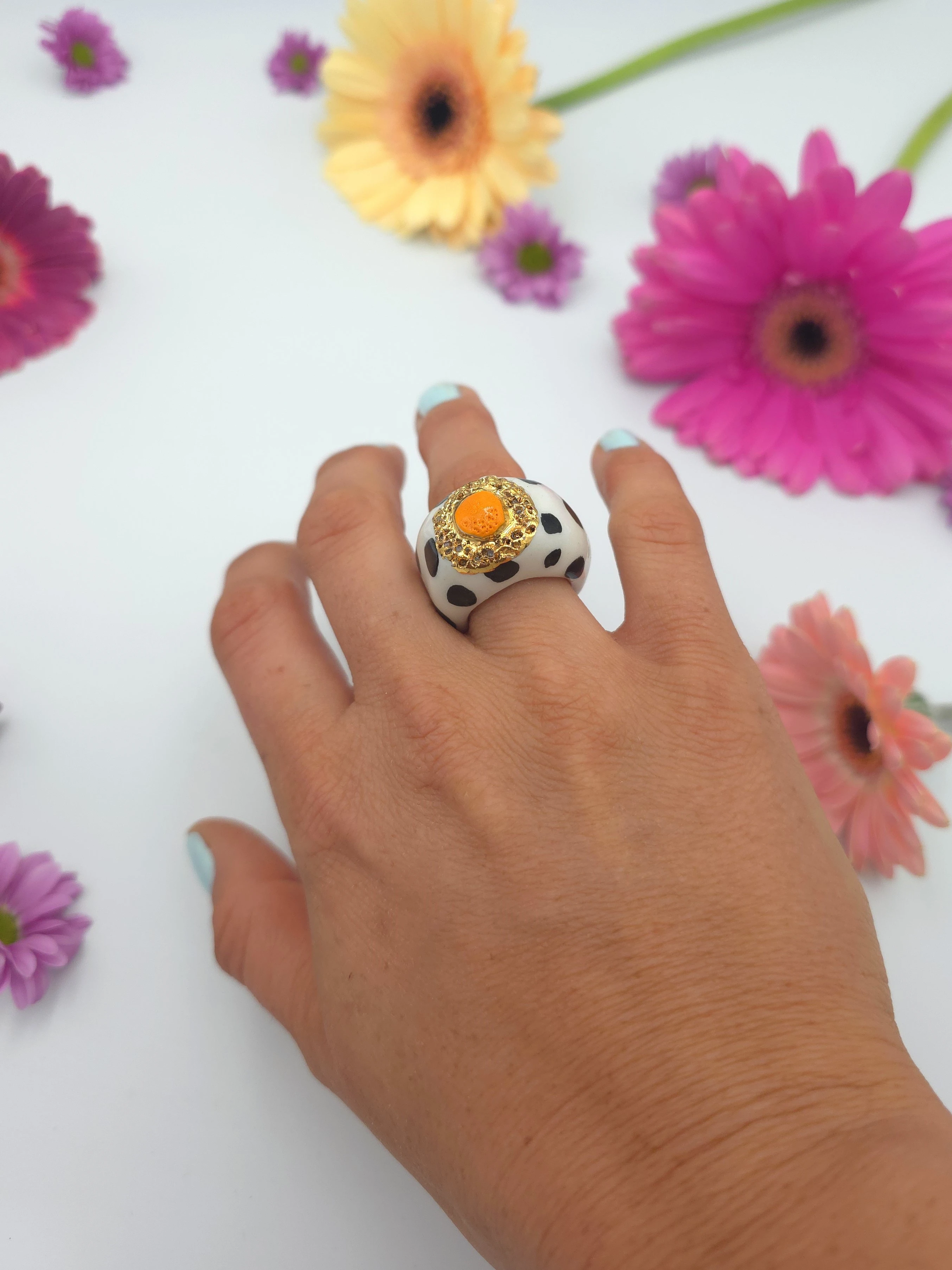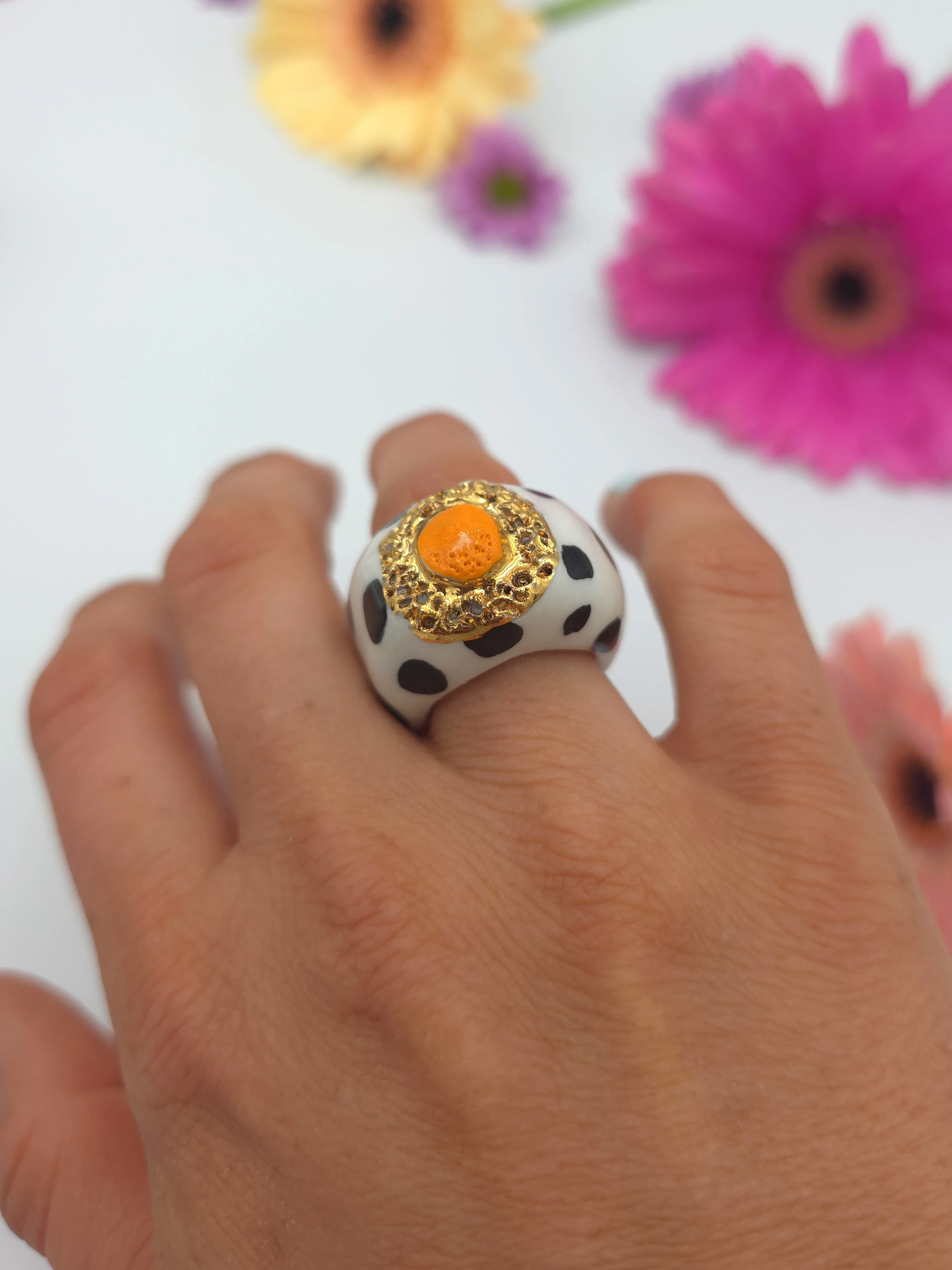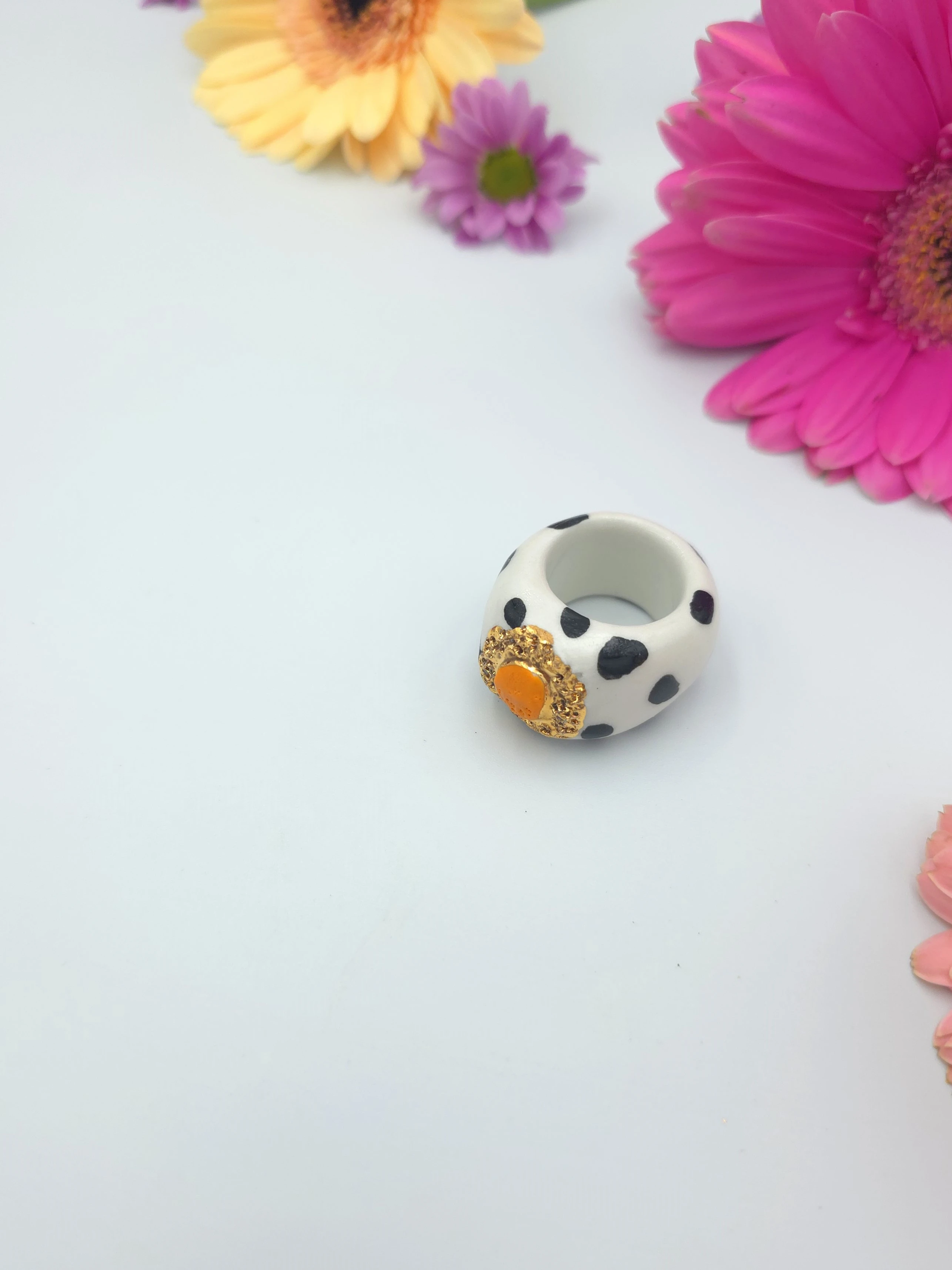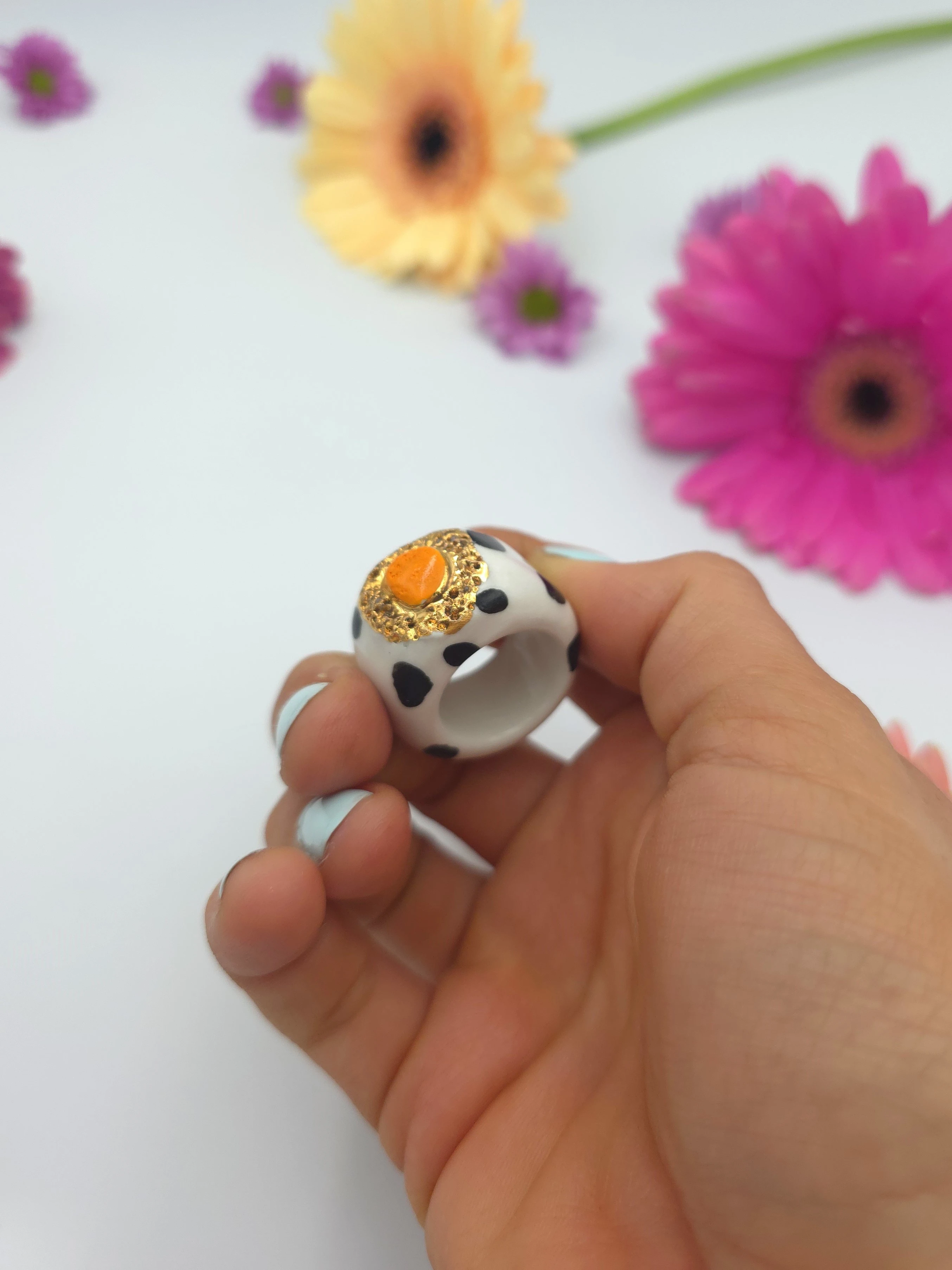 Porcelanowy pierścionek - ciapki z pomarańczowym oczkiem