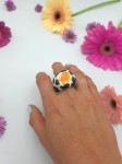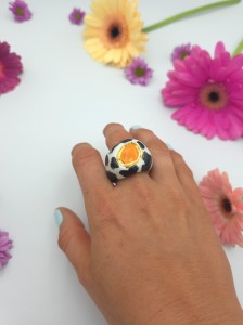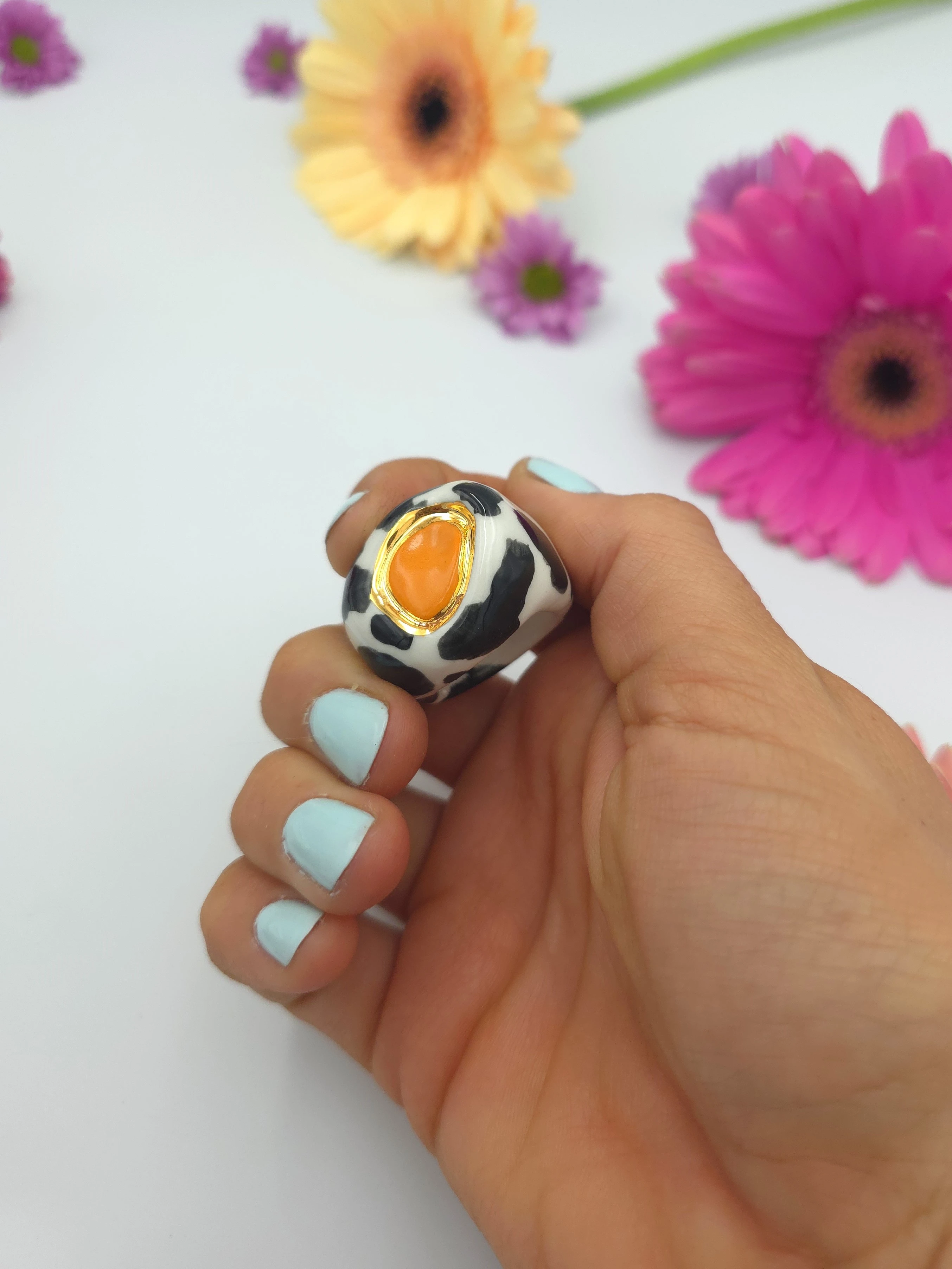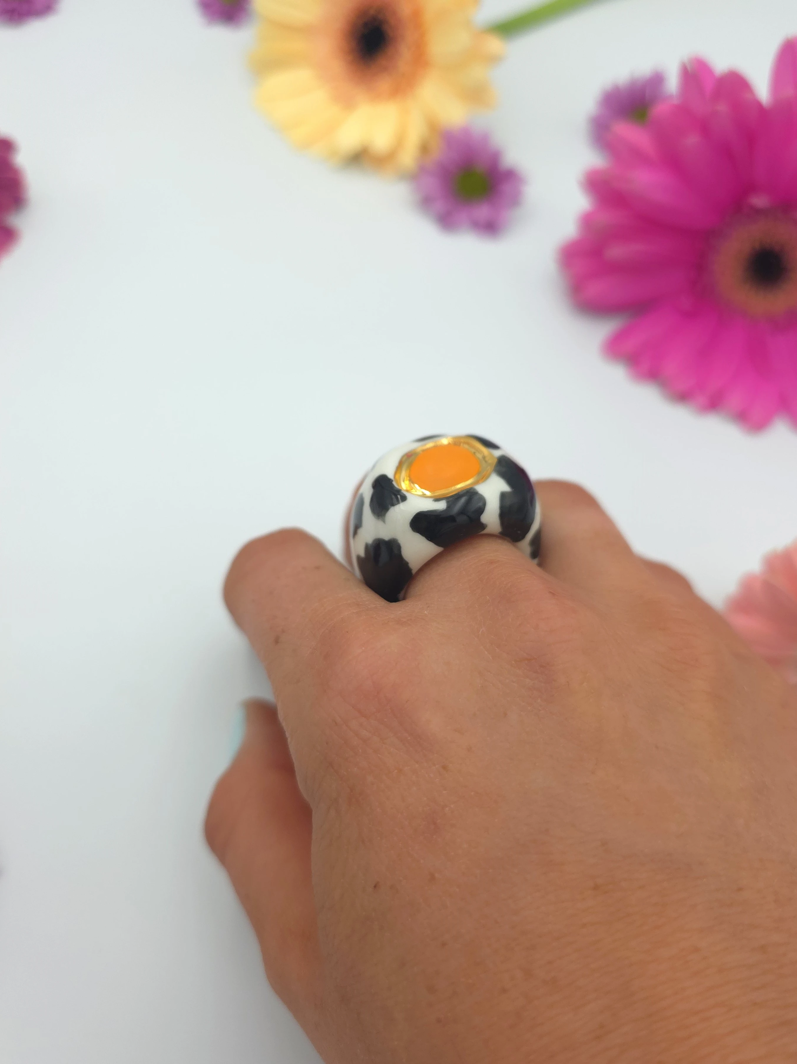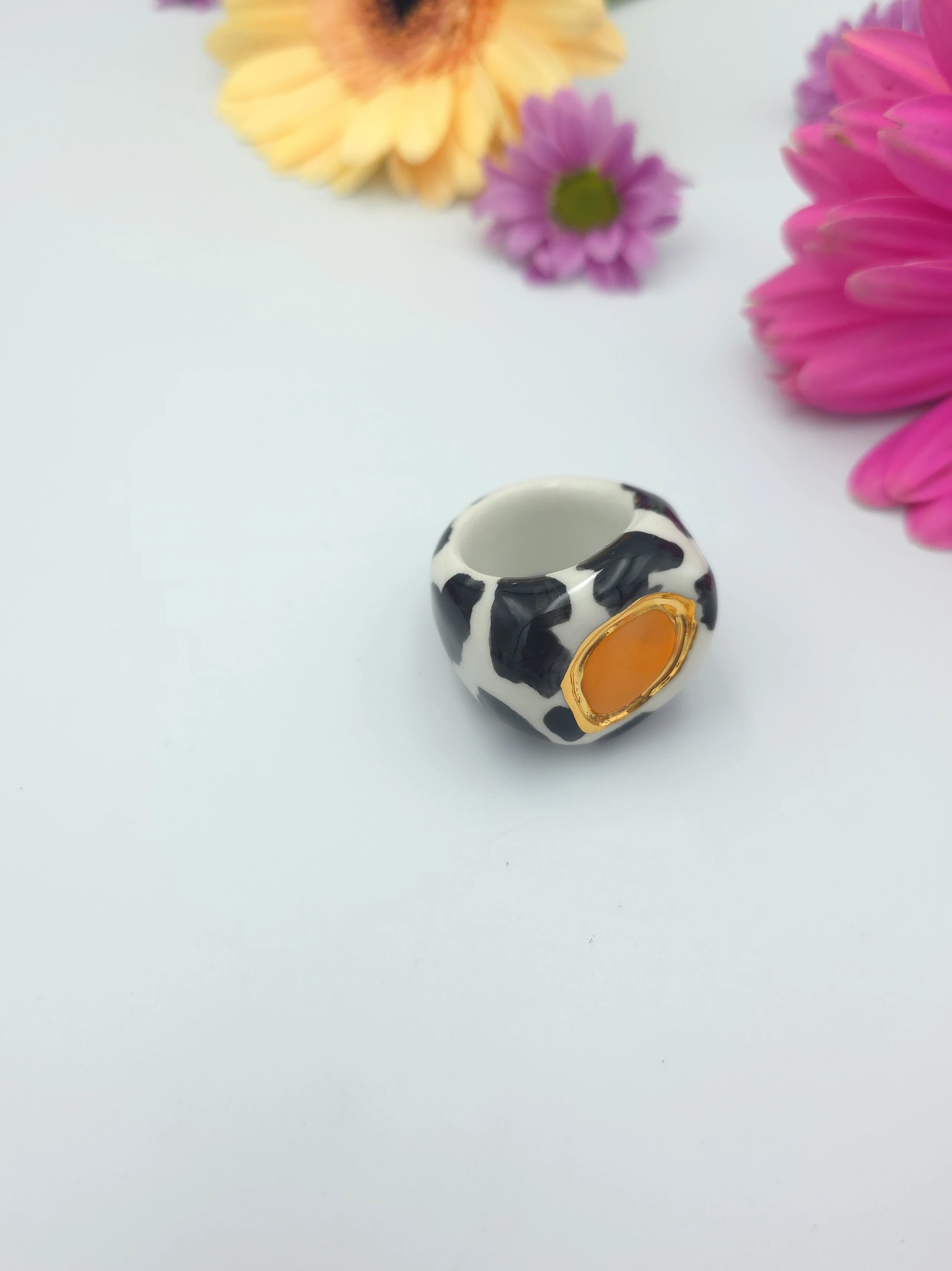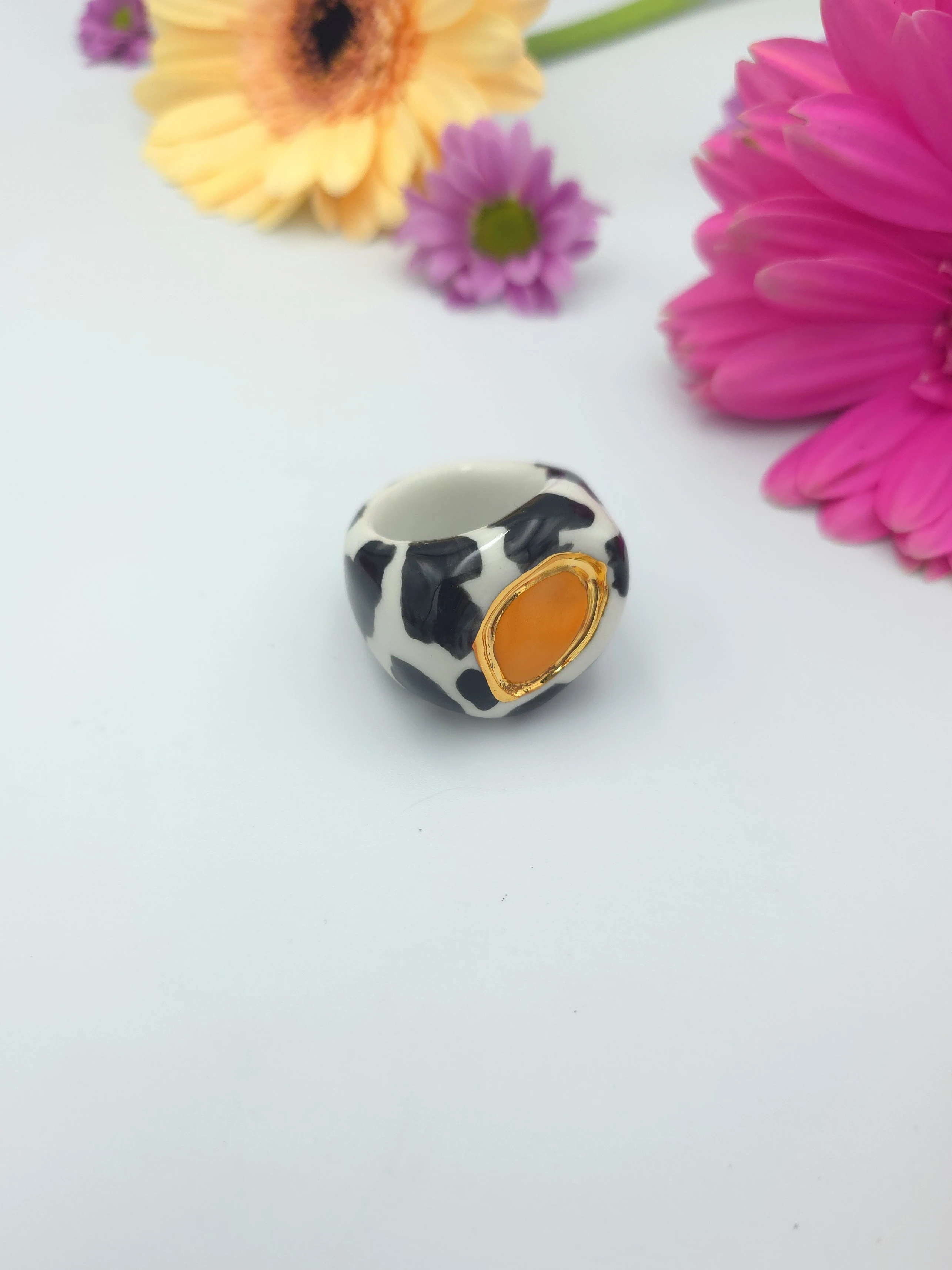 Porcelanowy pierścionek - krówka z pomarańczowym środkiem