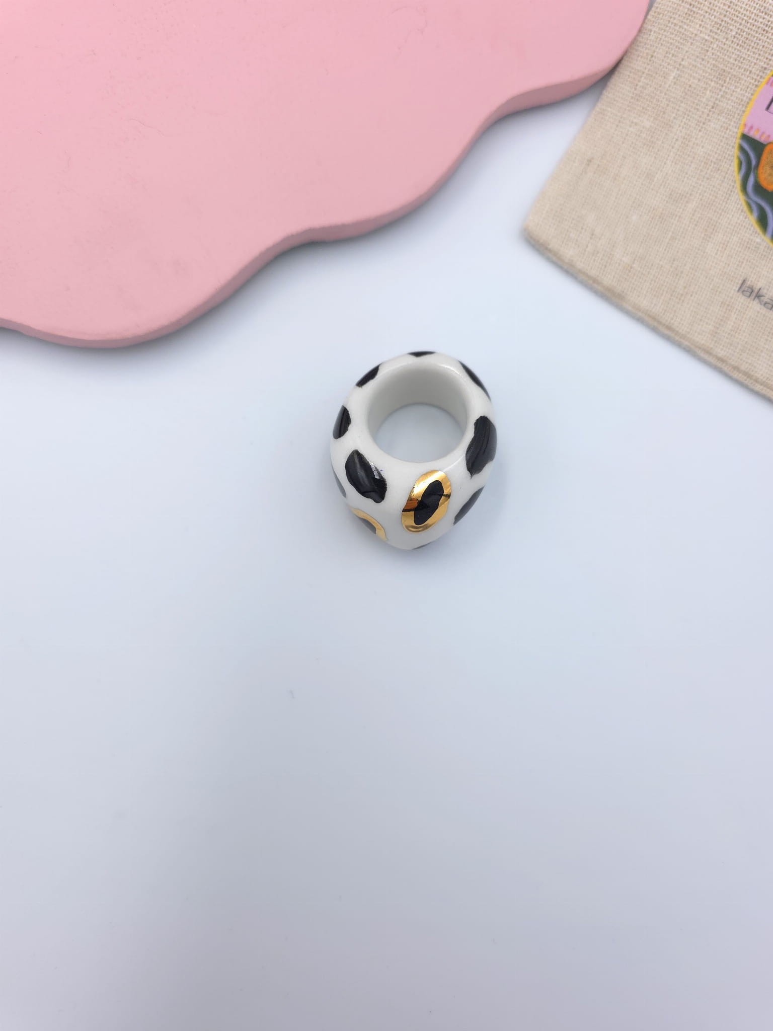 Unikatowy pierścionek z porcelany, zdobiony prawdziwym złotem.