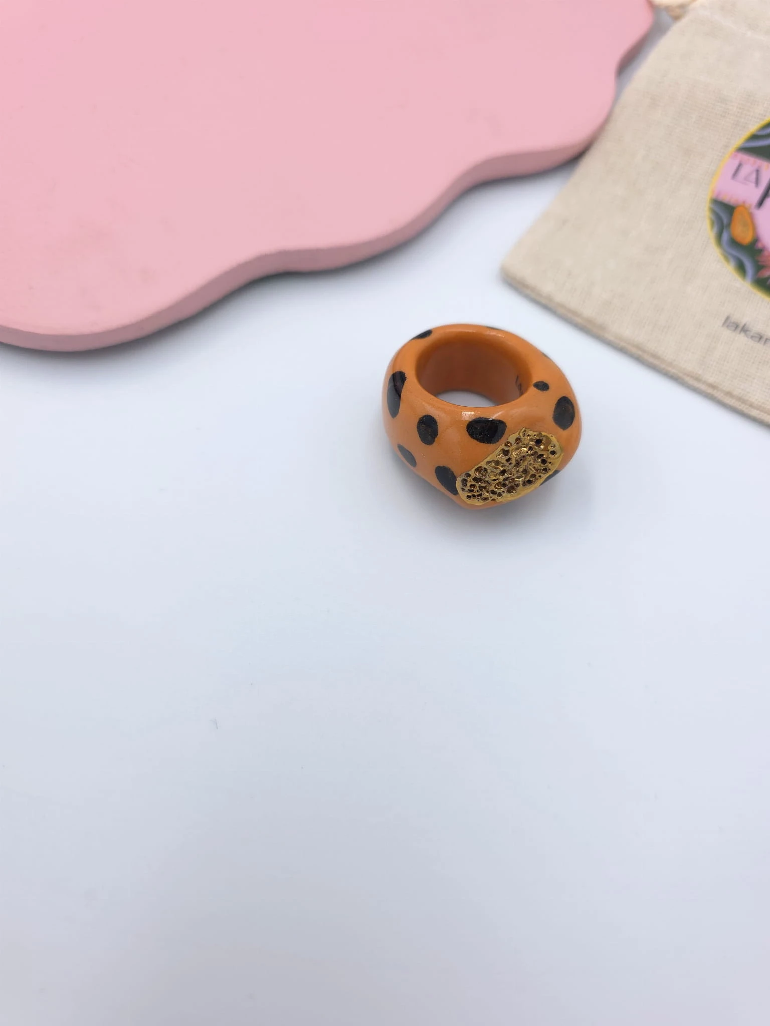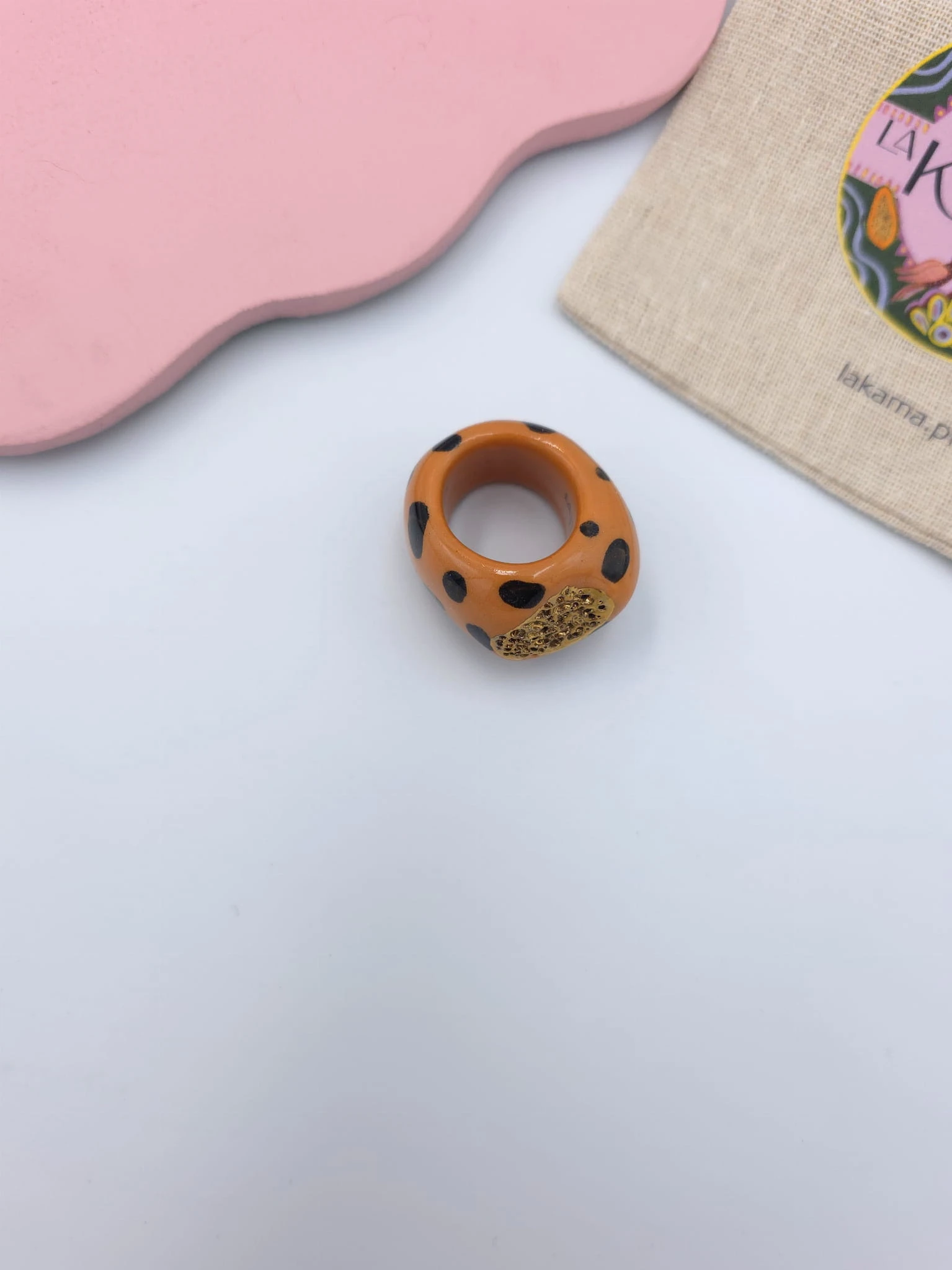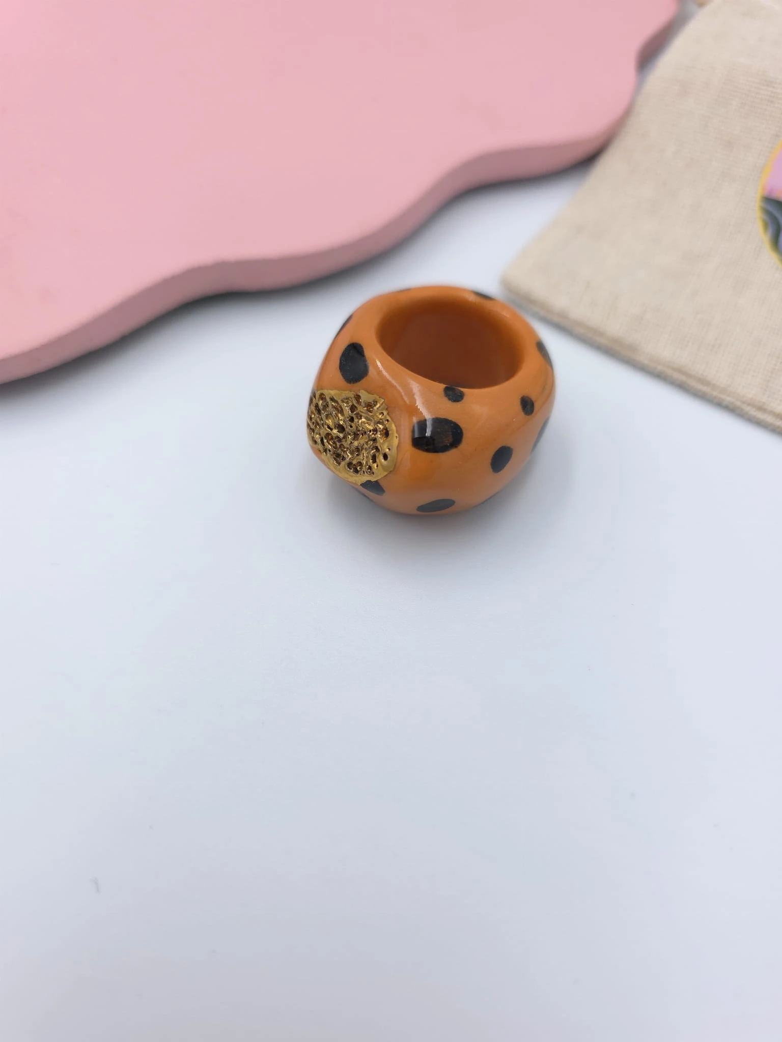 Porcelanowy pierścionek - lampart ze złotą strukturą
