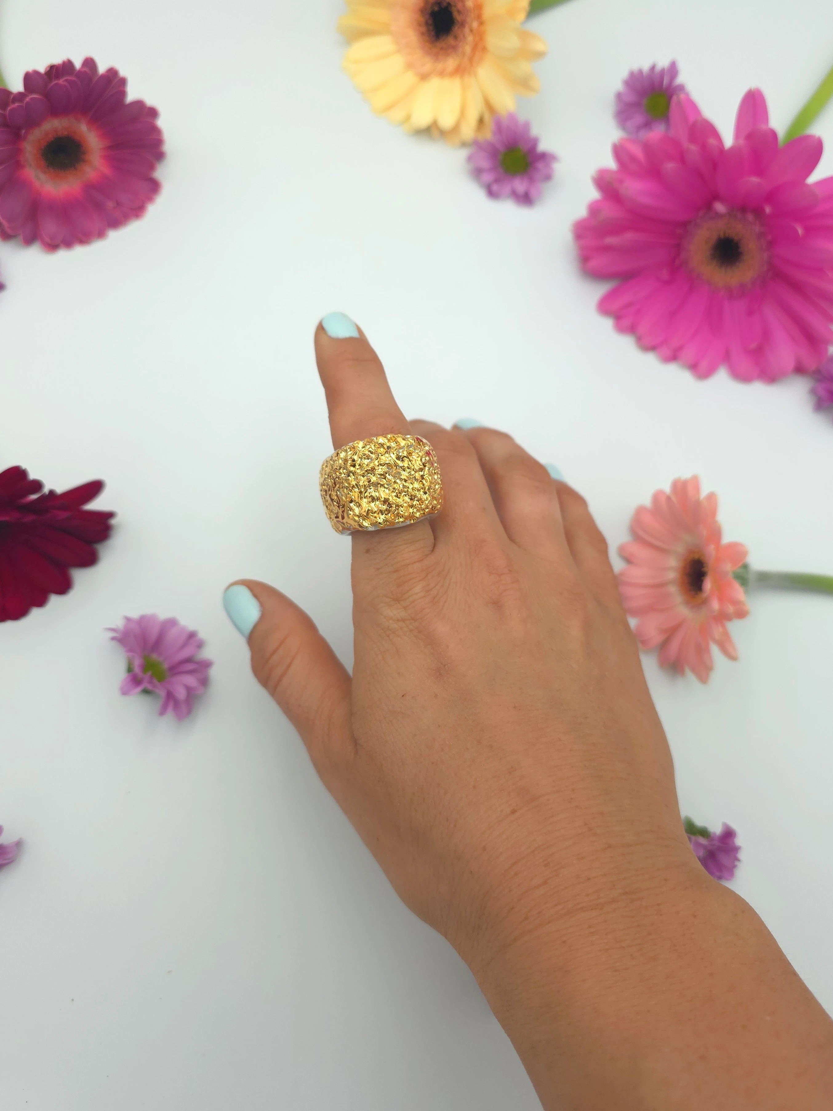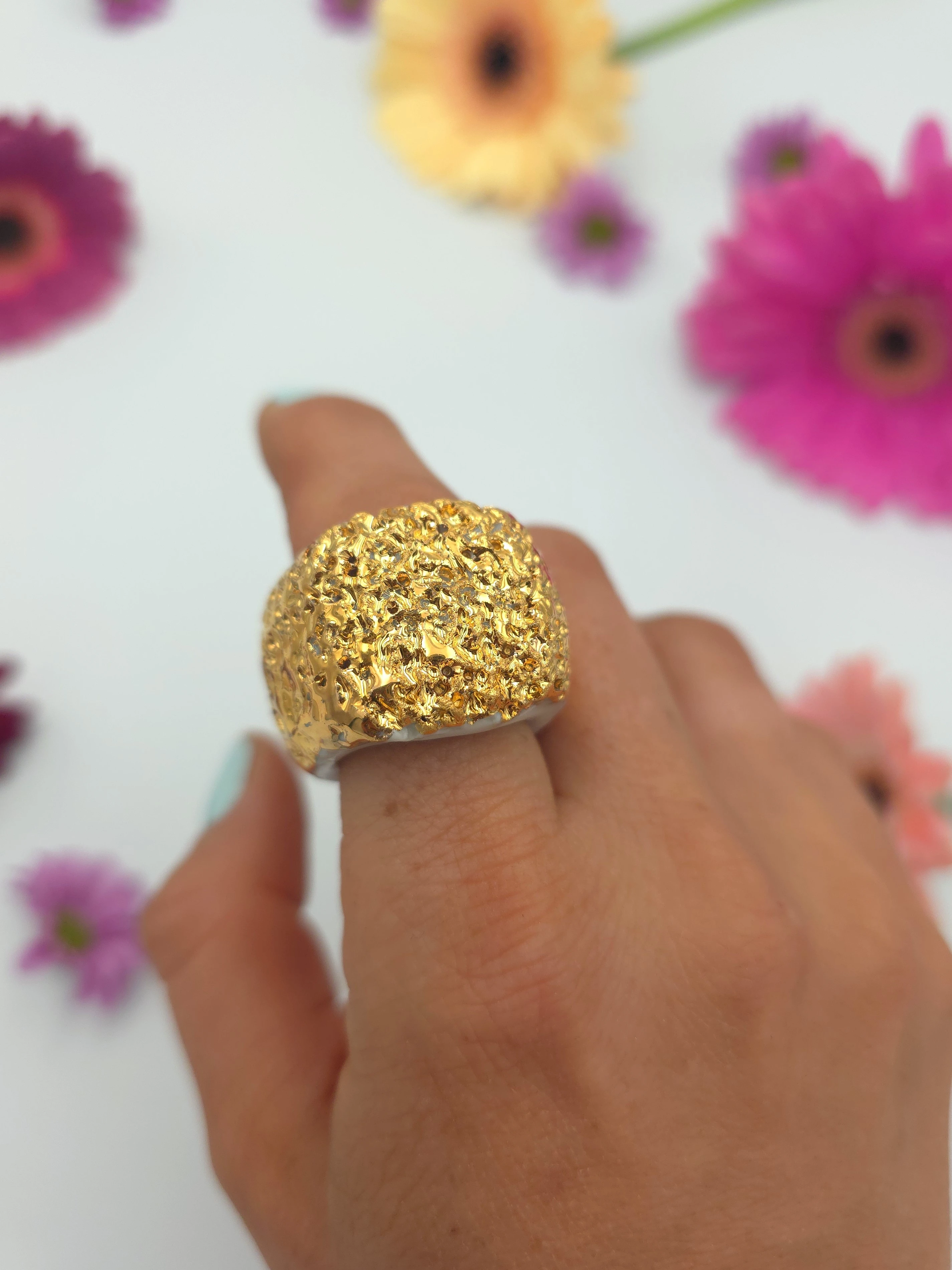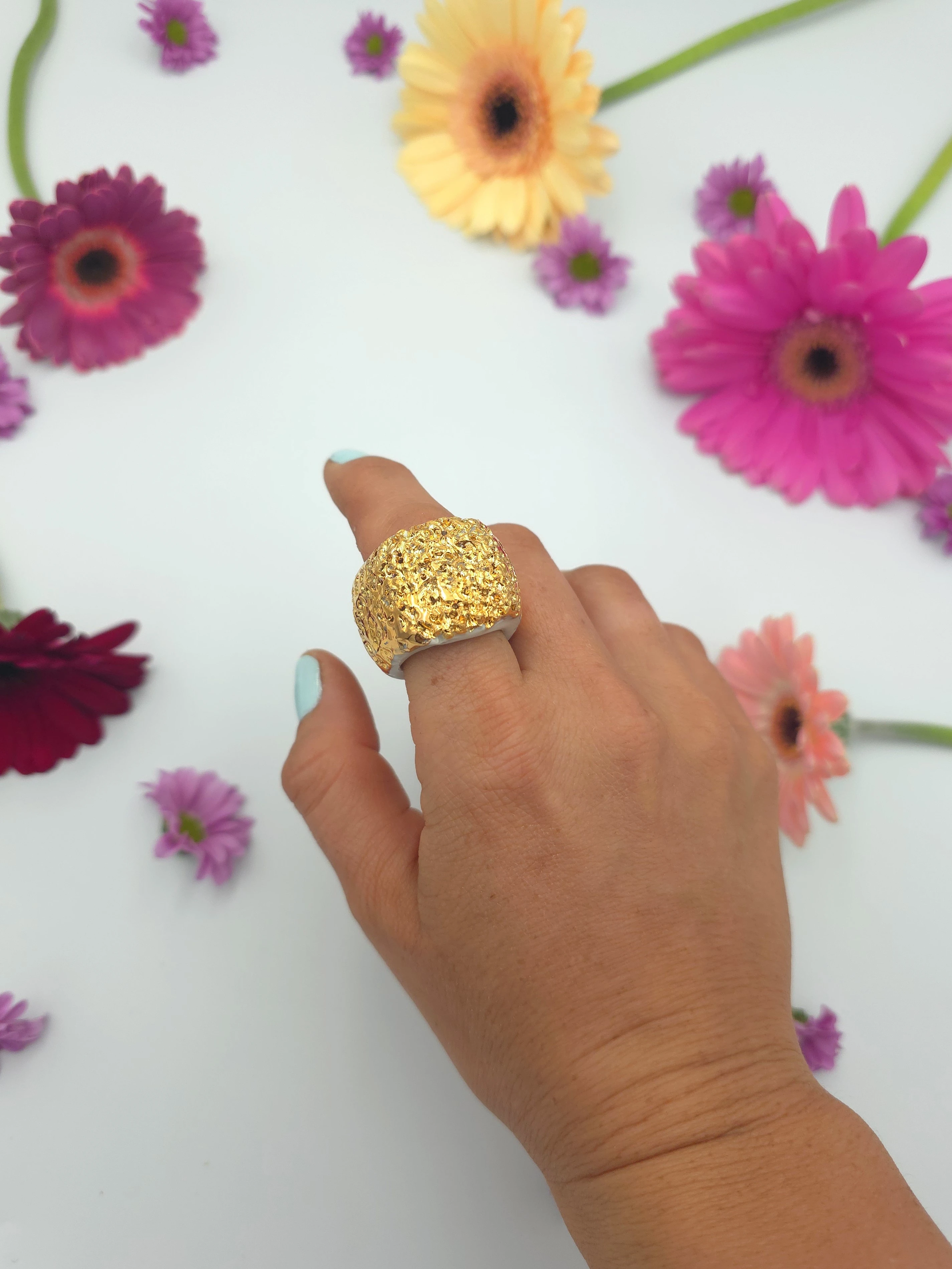 Unikatowy pierścionek z porcelany, zdobiony prawdziwym złotem.