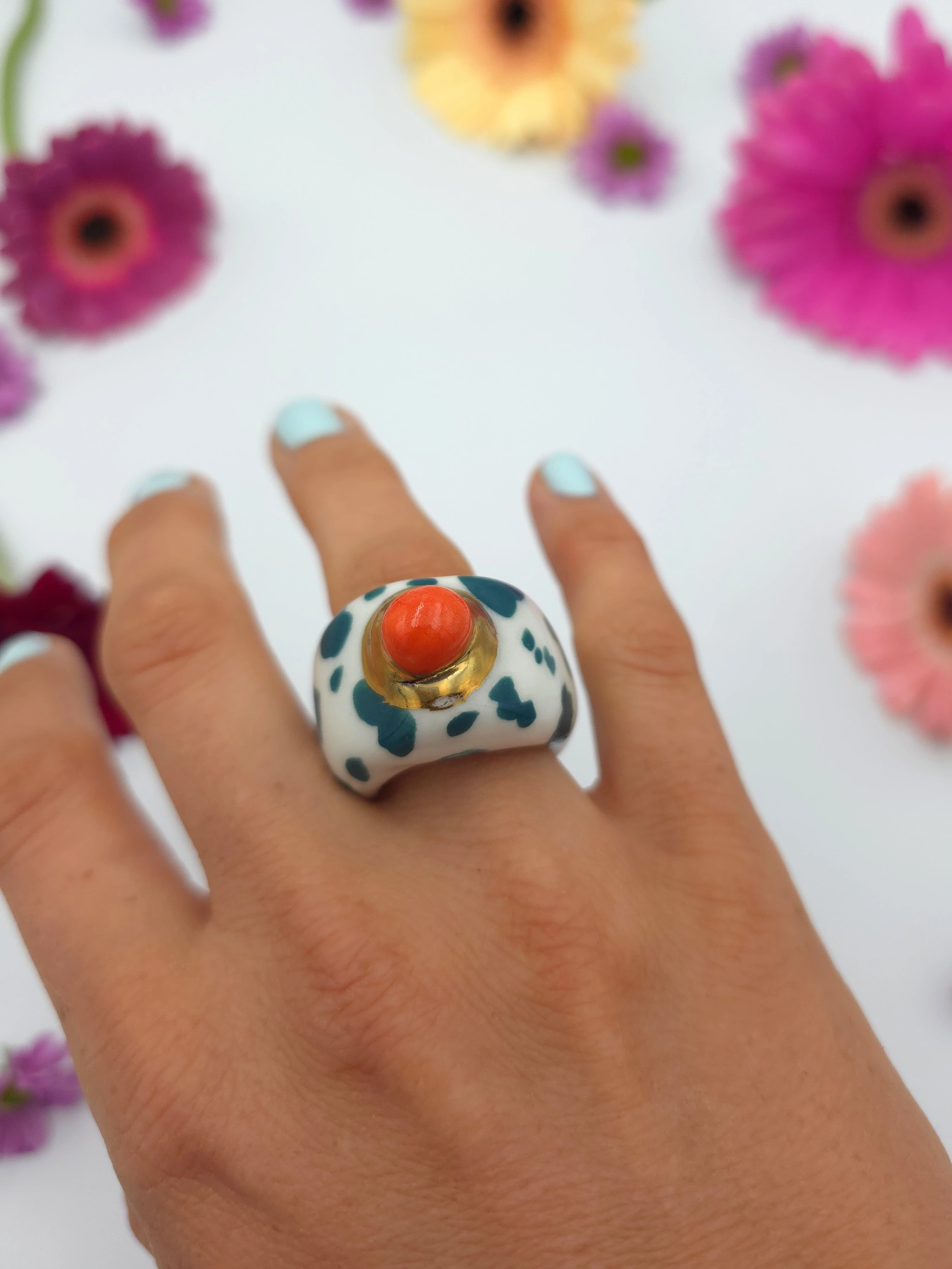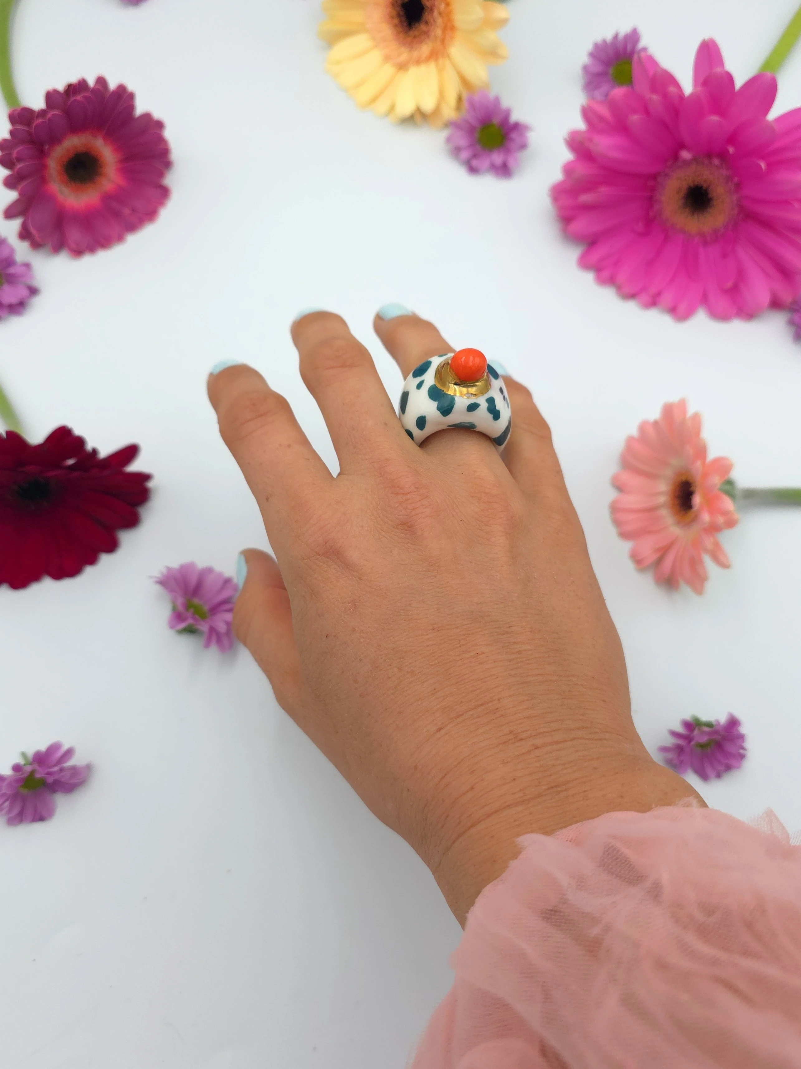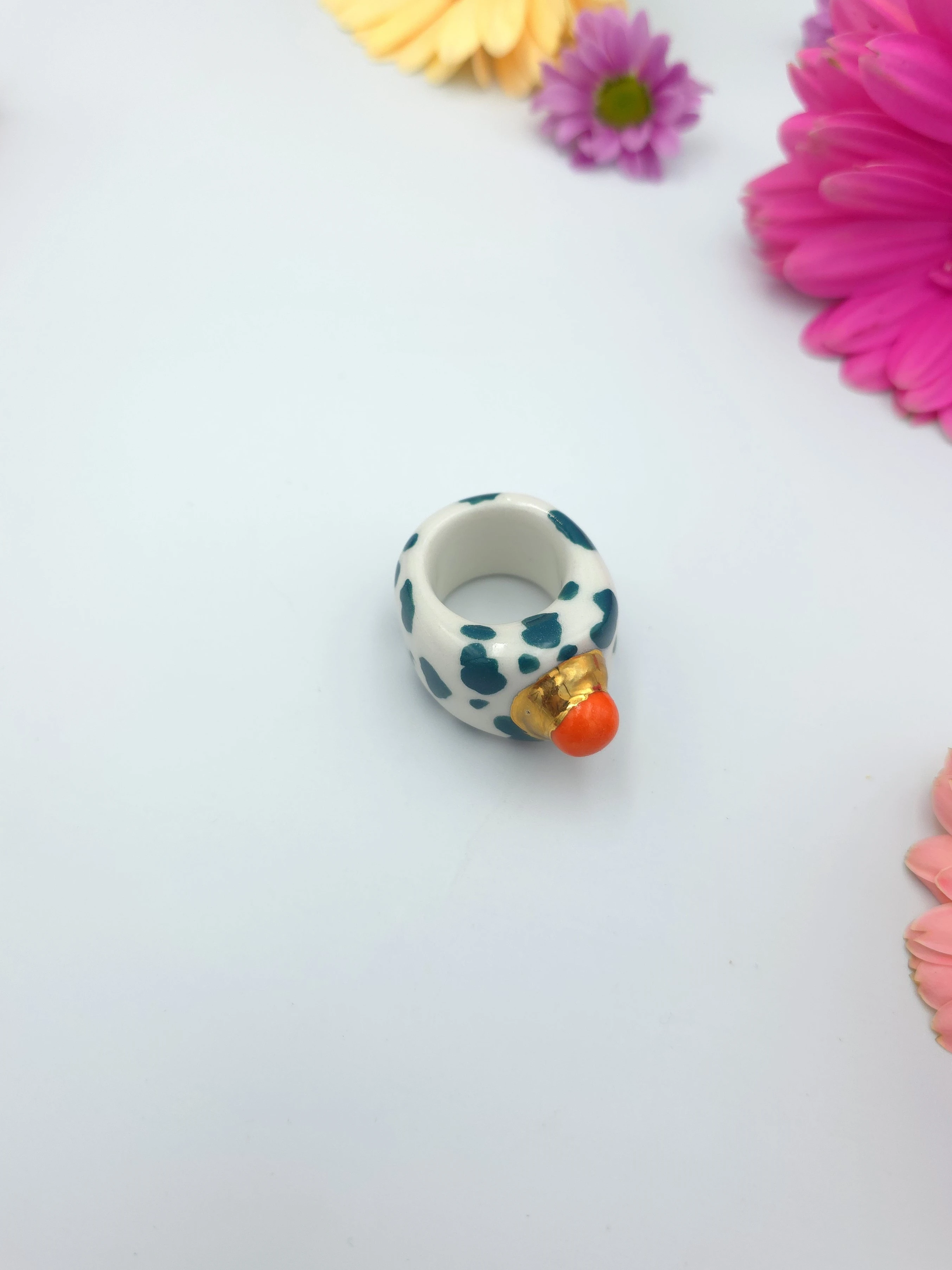 Porcelanowy pierścionek - morskie ciapki z pomarańczą