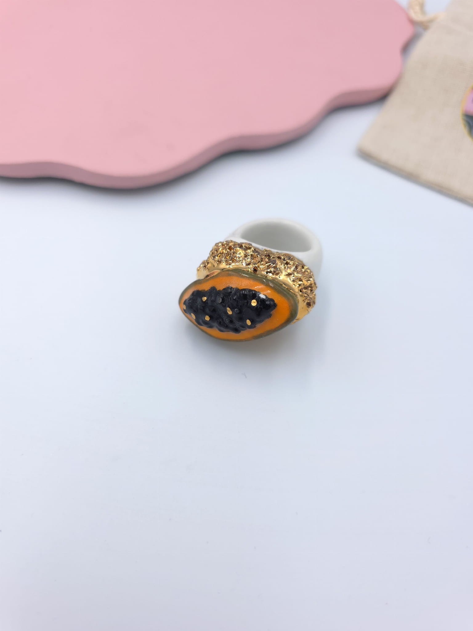 Porcelanowy pierścionek - papaja
