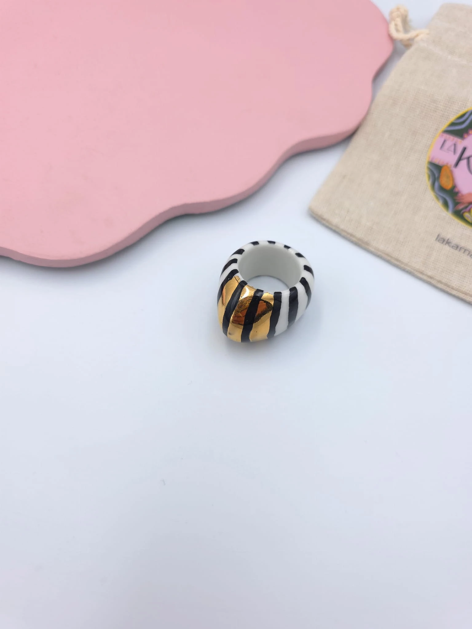 Unikatowy pierścionek z porcelany, zdobiony prawdziwym złotem.