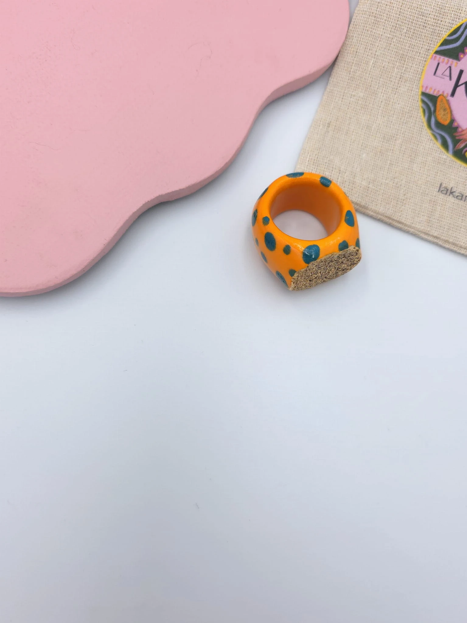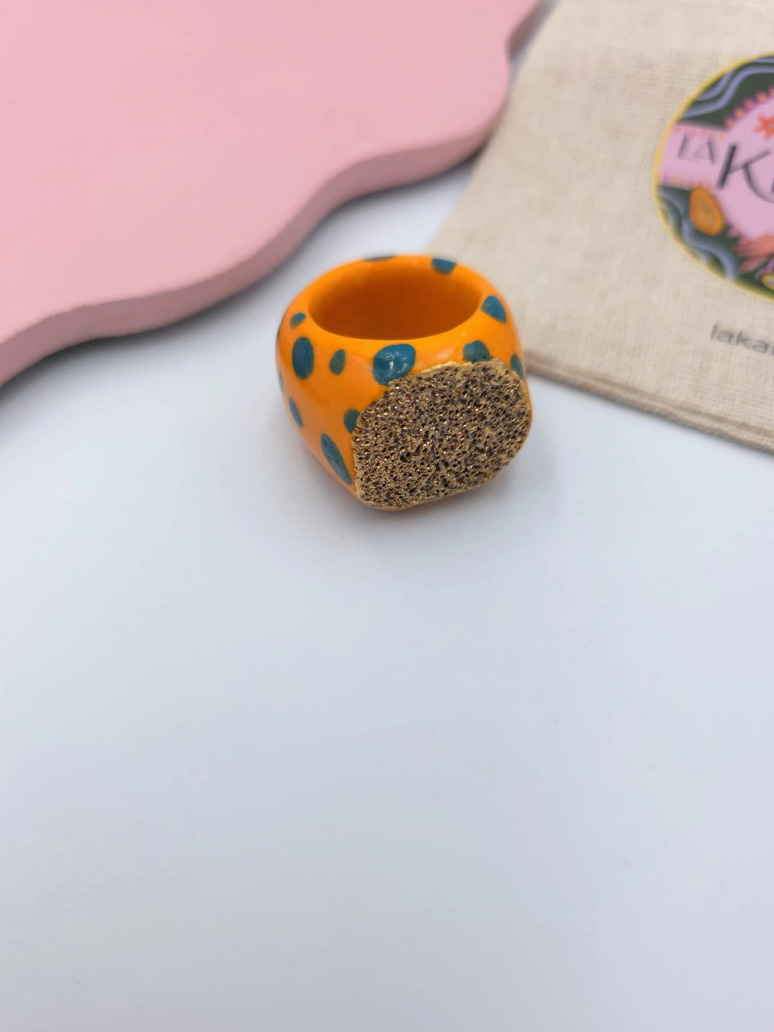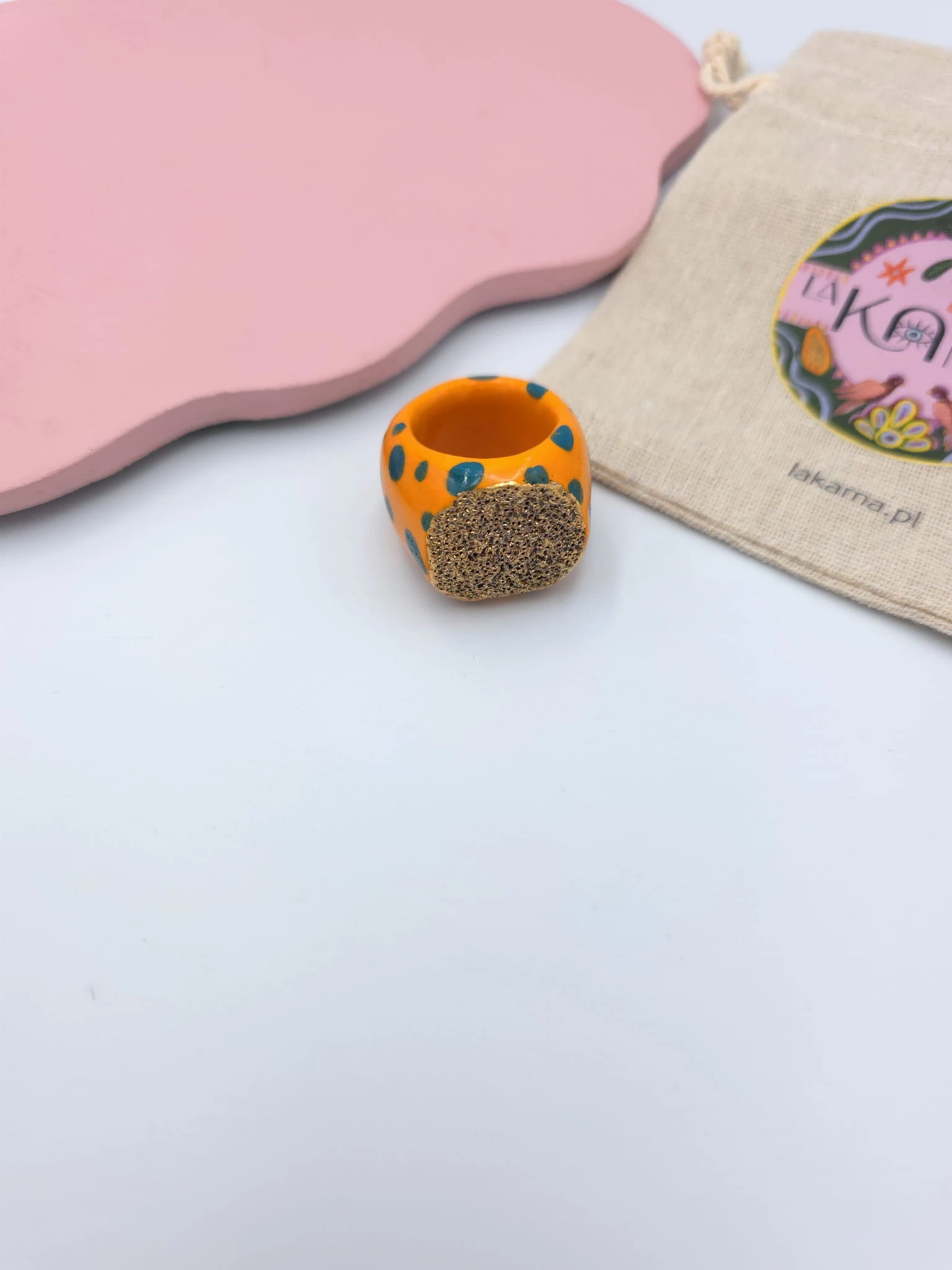 Porcelanowy pierścionek - pomarańczowy w niebieskie ciapki