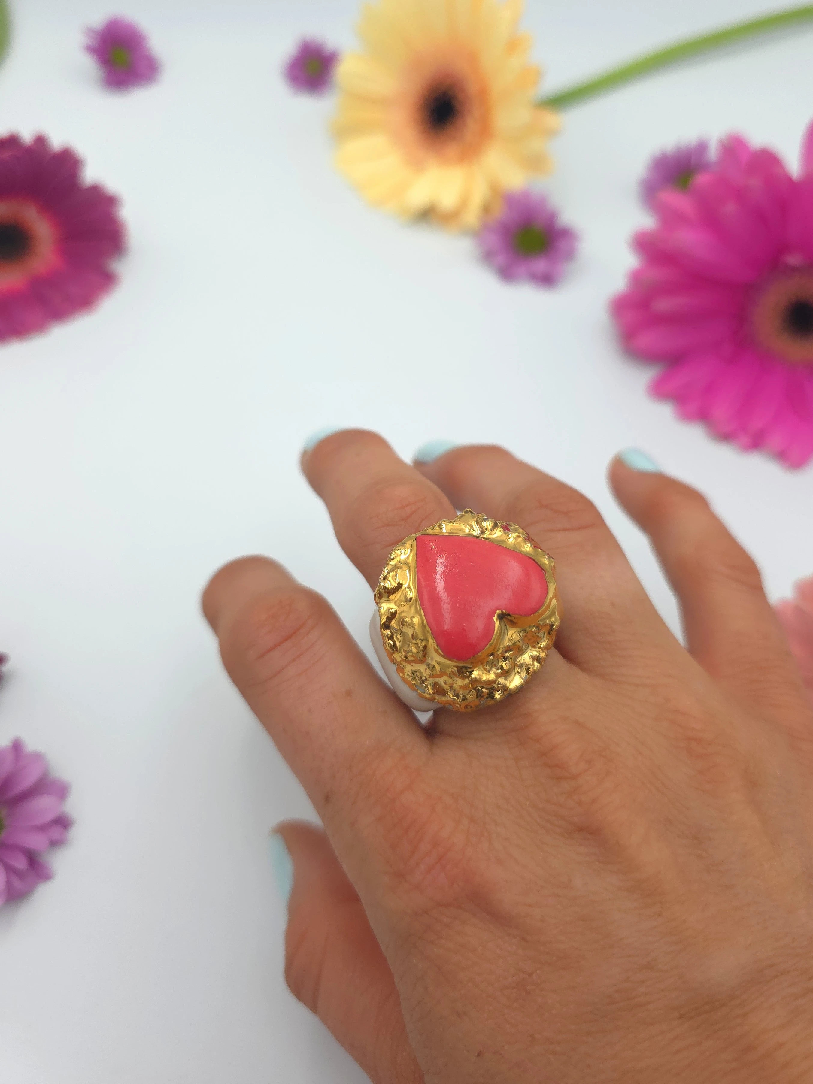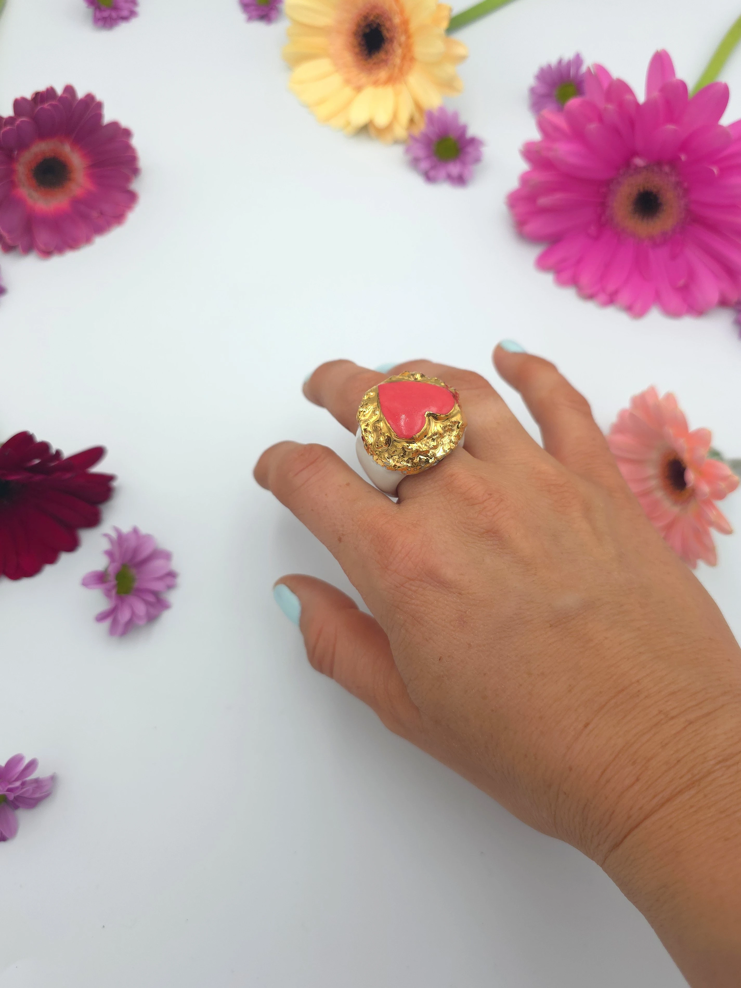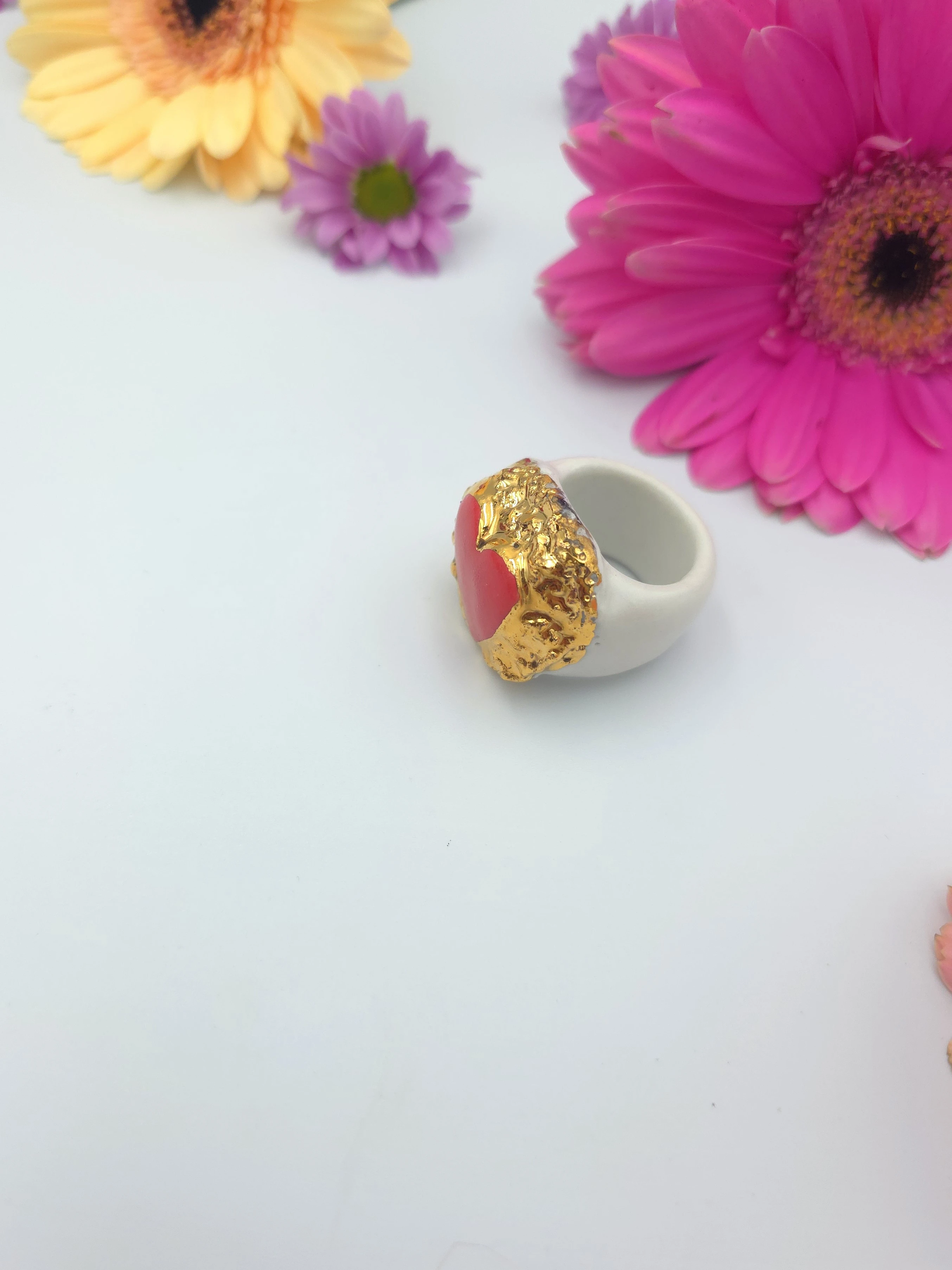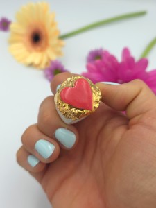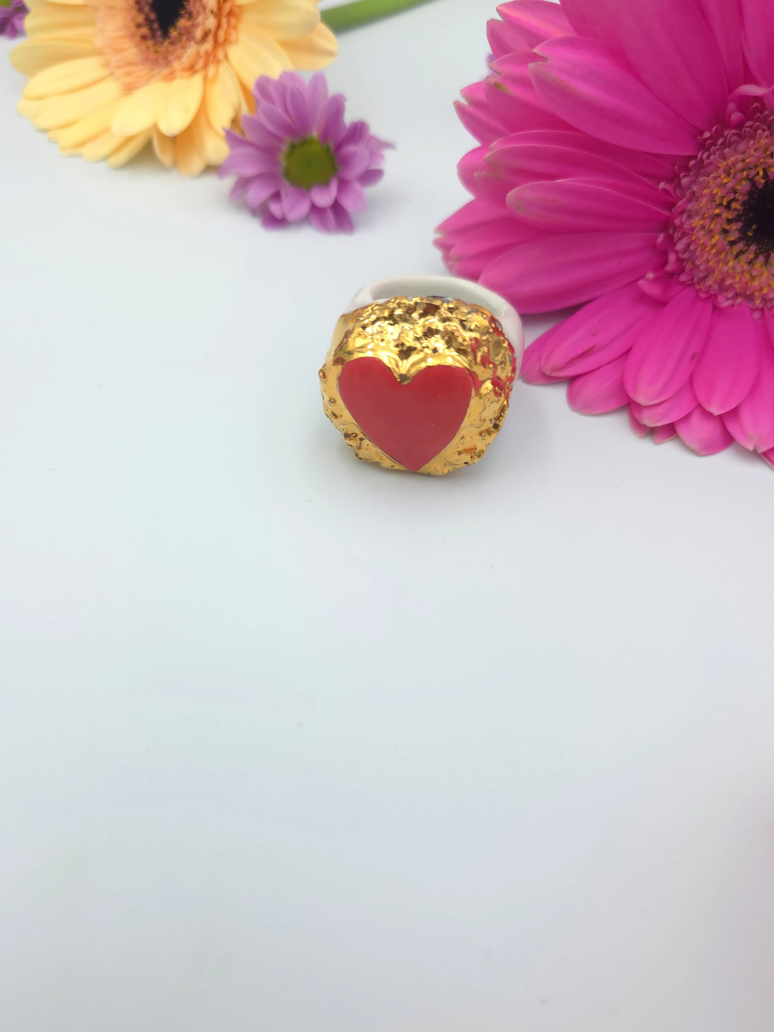 Porcelanowy pierścionek - serce koralowe