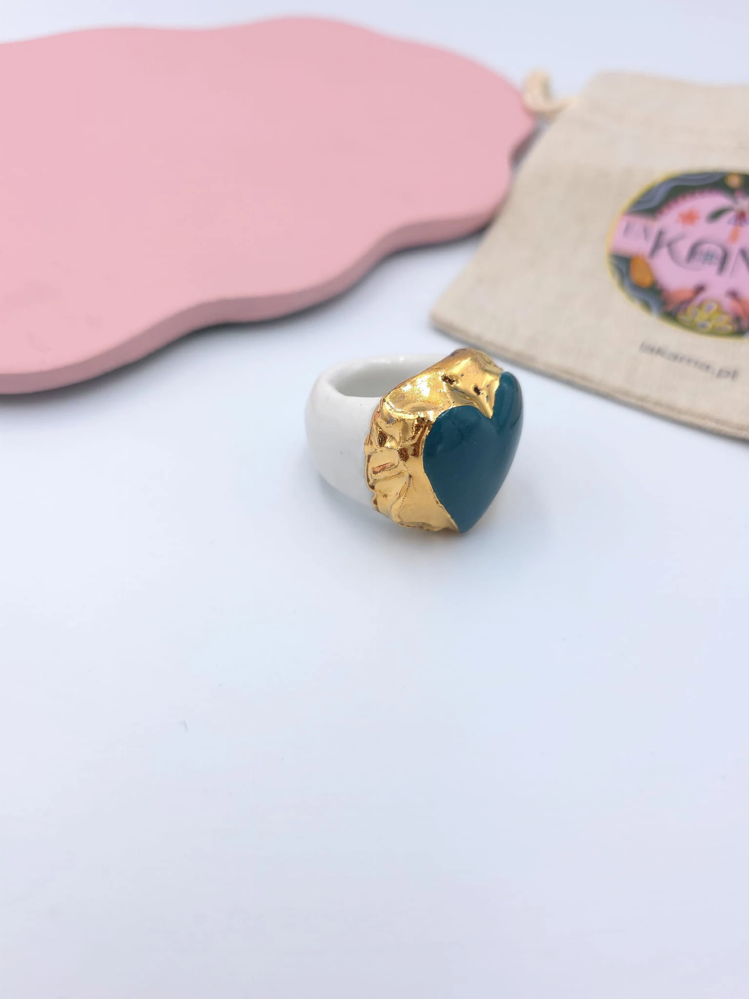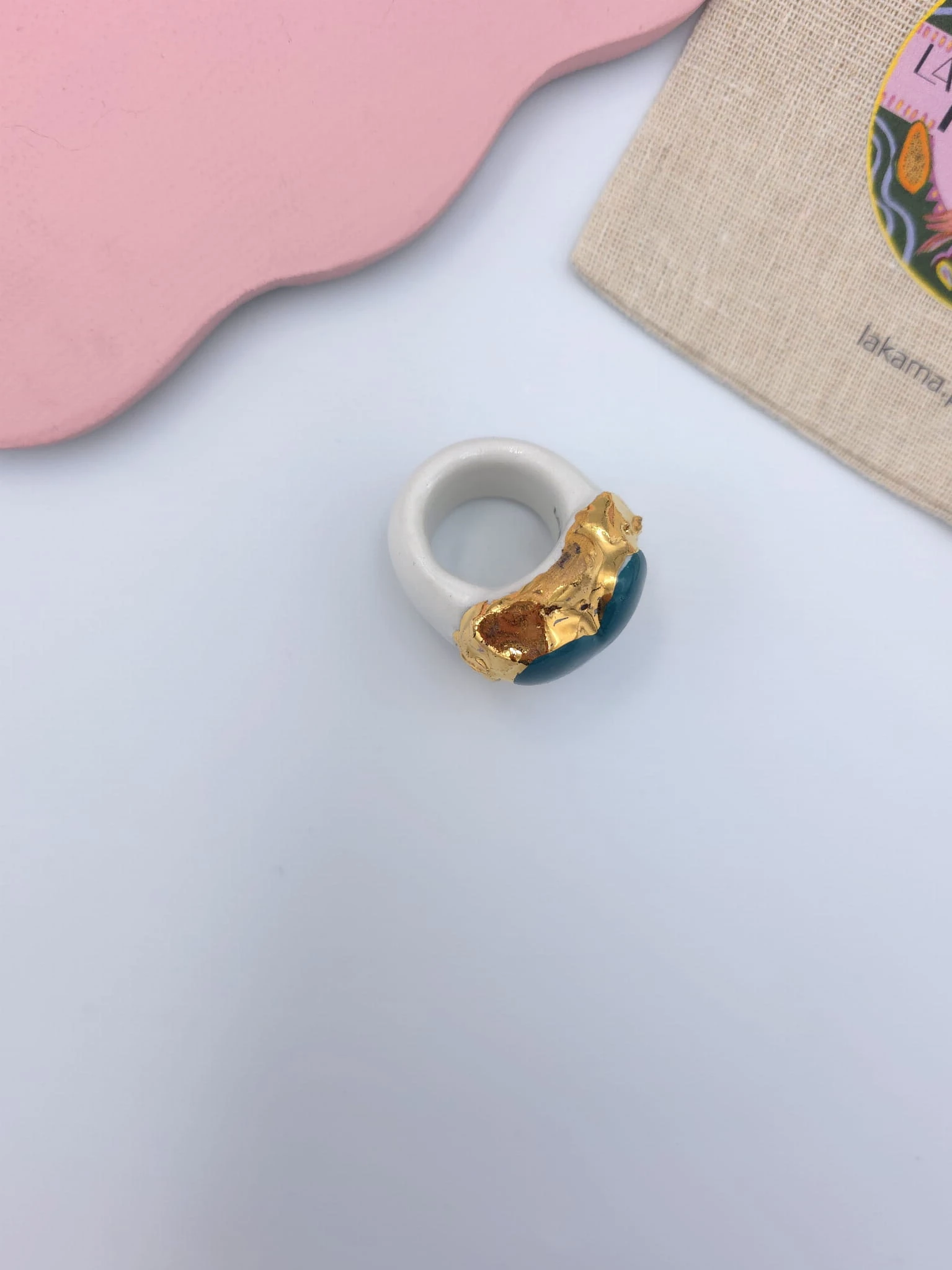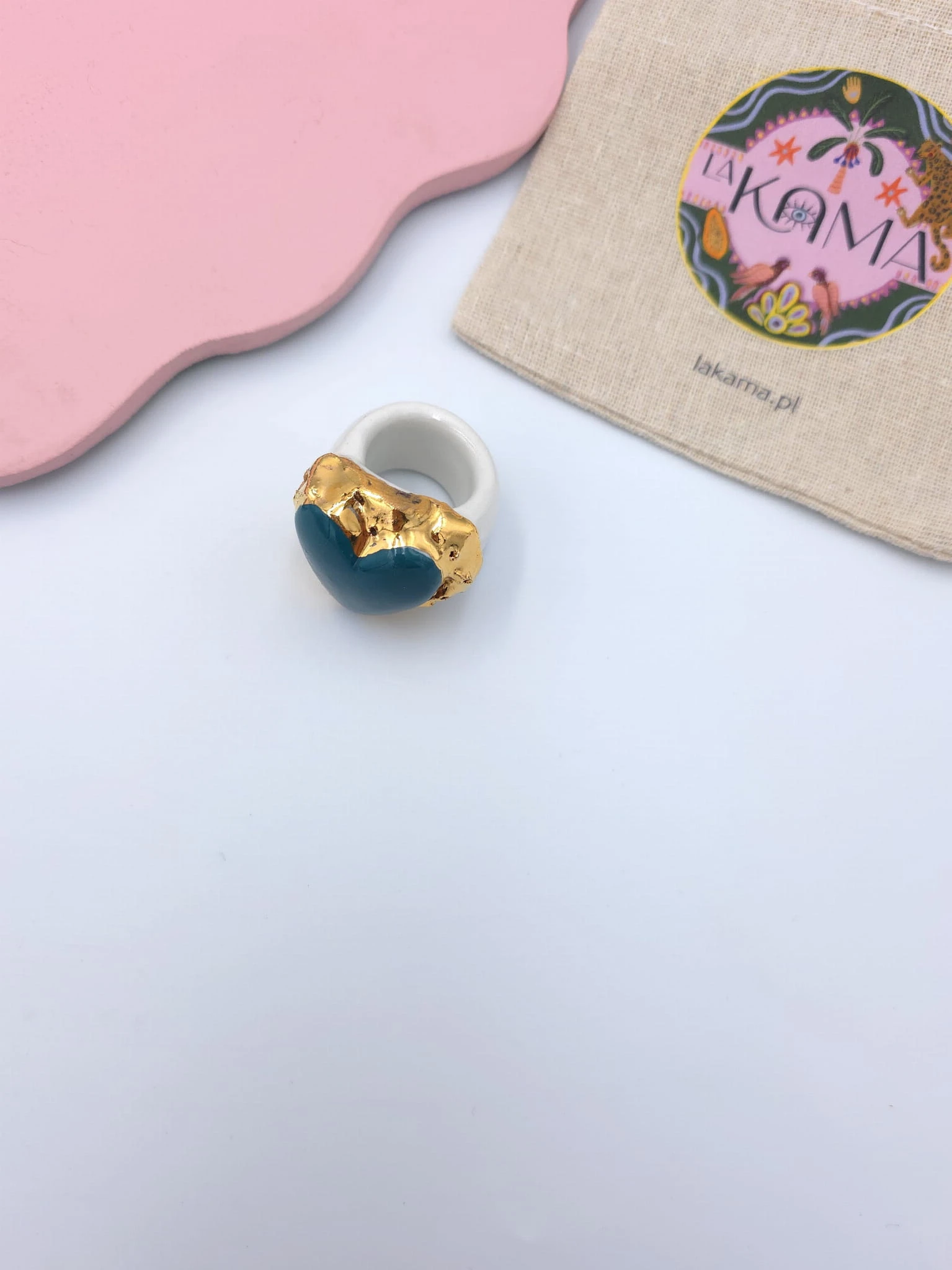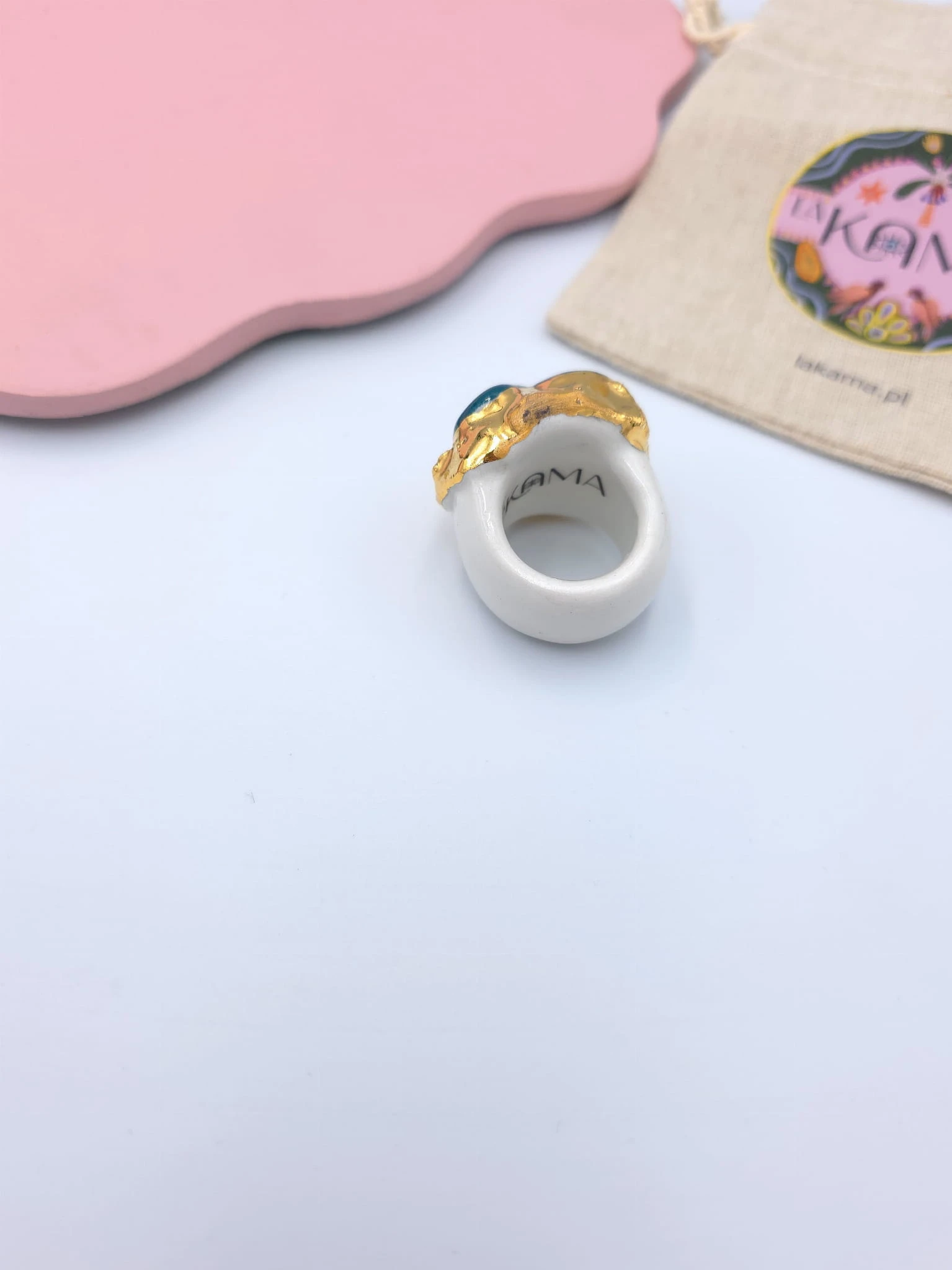Unikatowy pierścionek z porcelany, zdobiony prawdziwym złotem.