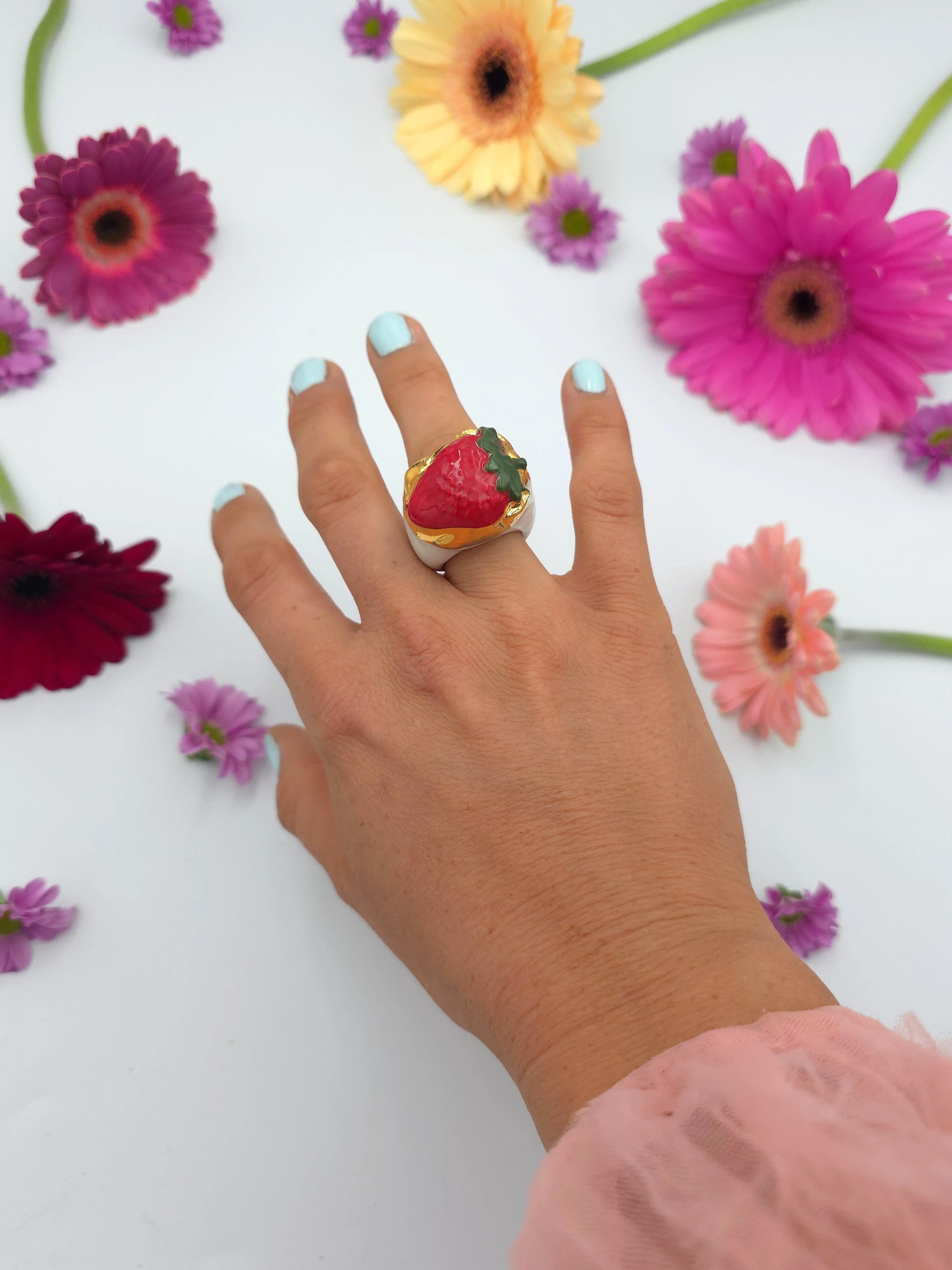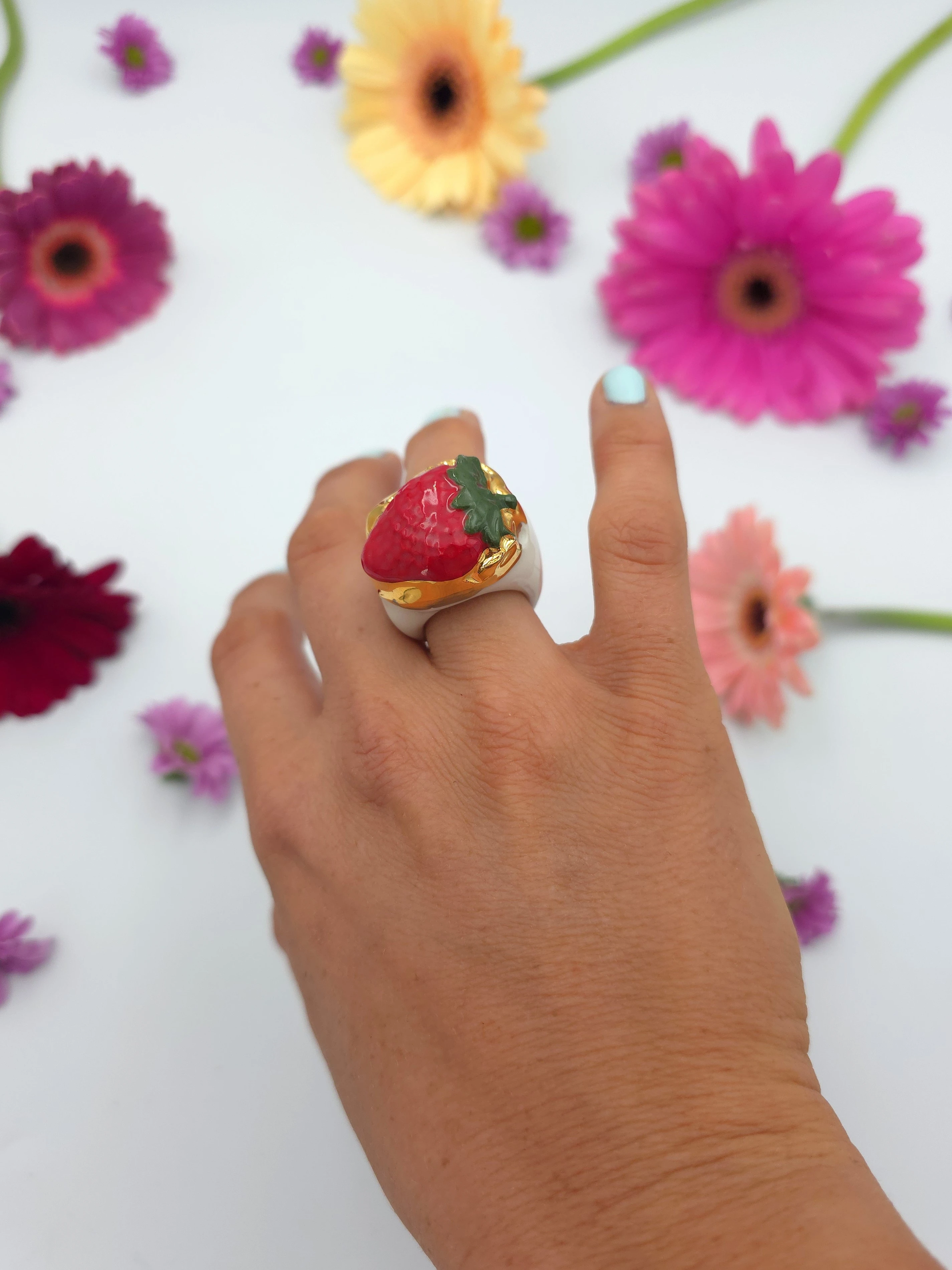 Każdy pierścionek jest ręcznie formowany, malowany i zdobiony. Wszystkie moje prace są starannie wykończone moimi rękami, co sprawia, że nie powstanie drugi taki sam egzemplarz. Pierścionki z porcelany są lekkie i łatwe w noszeniu.