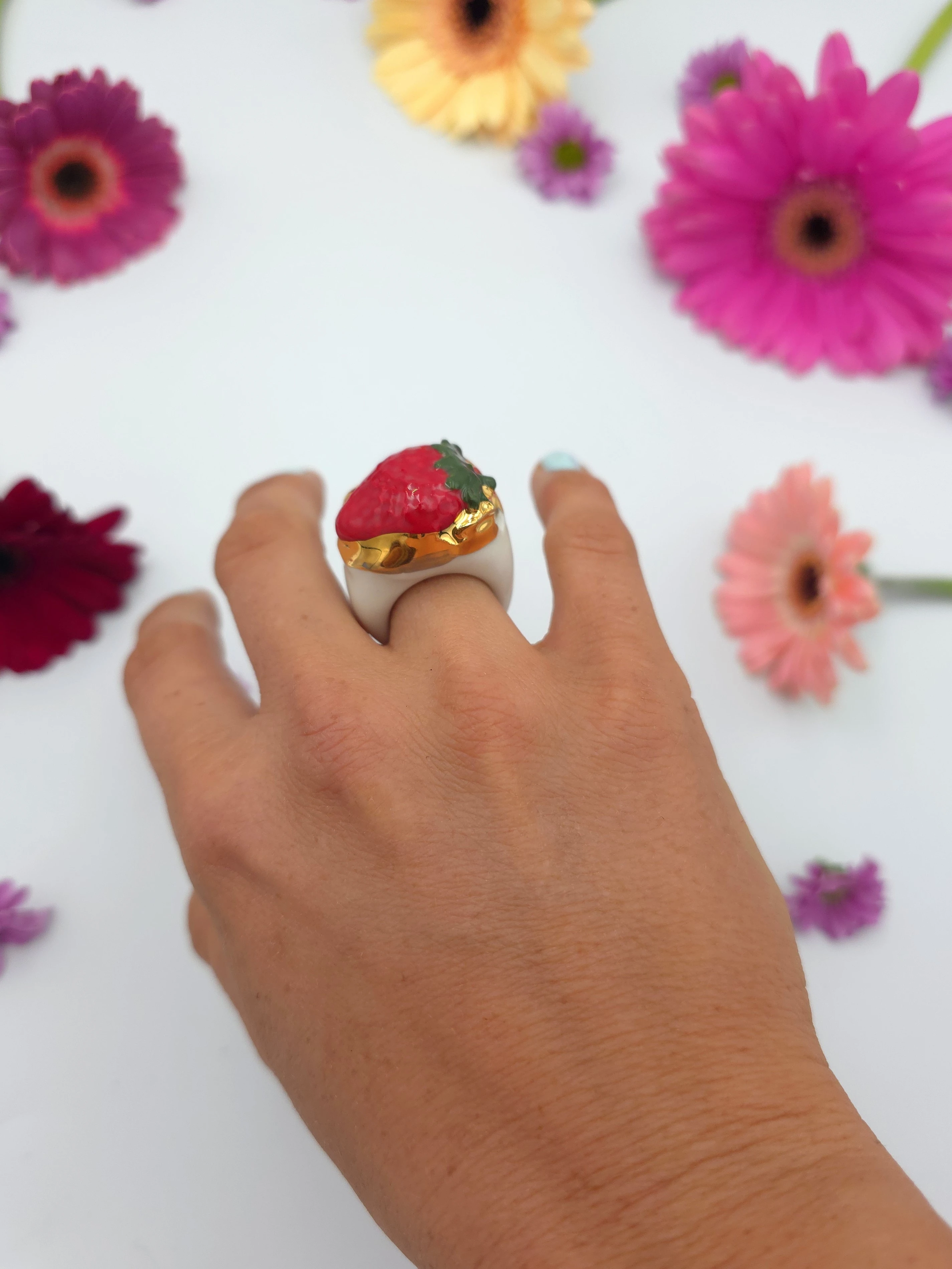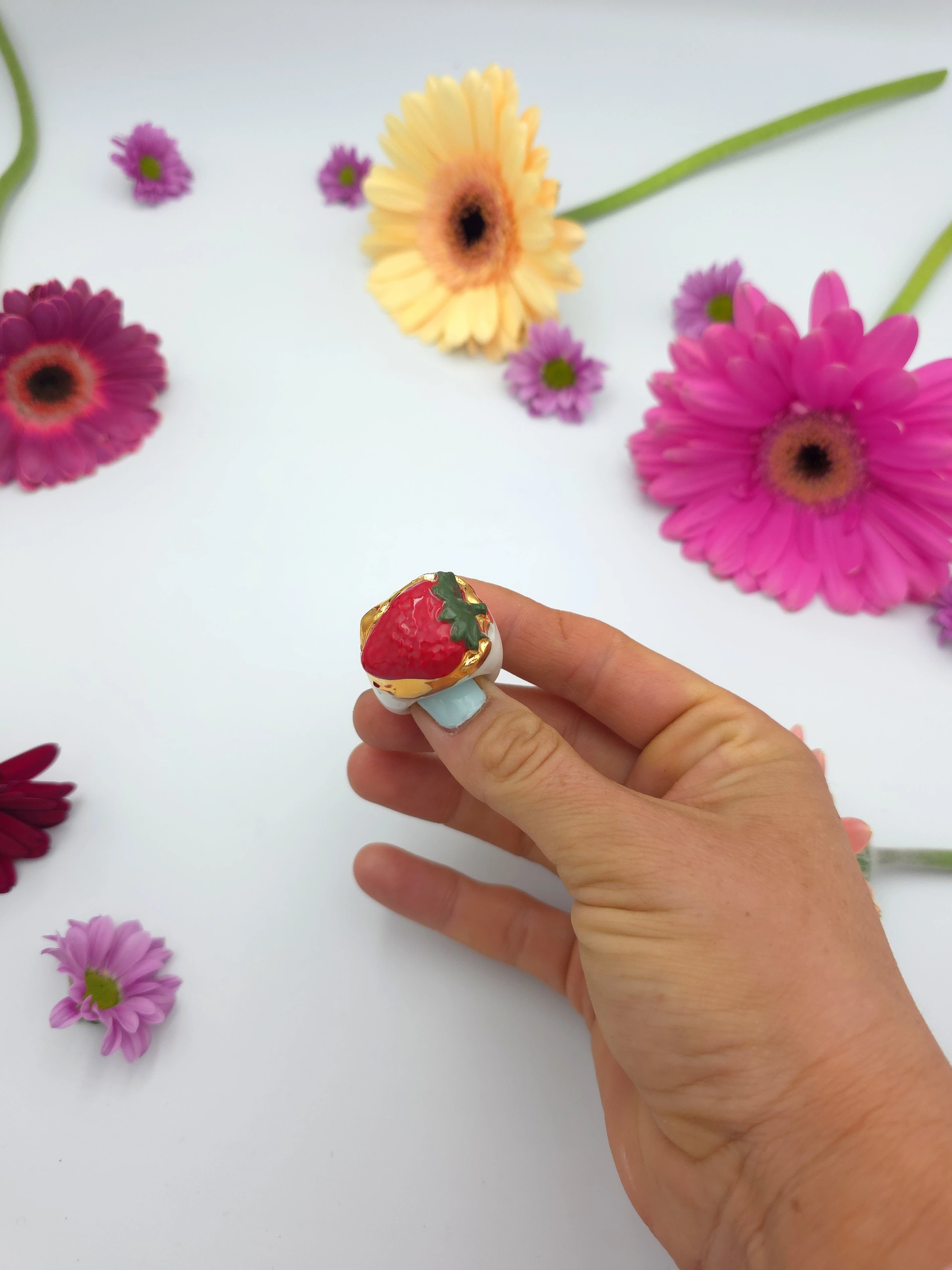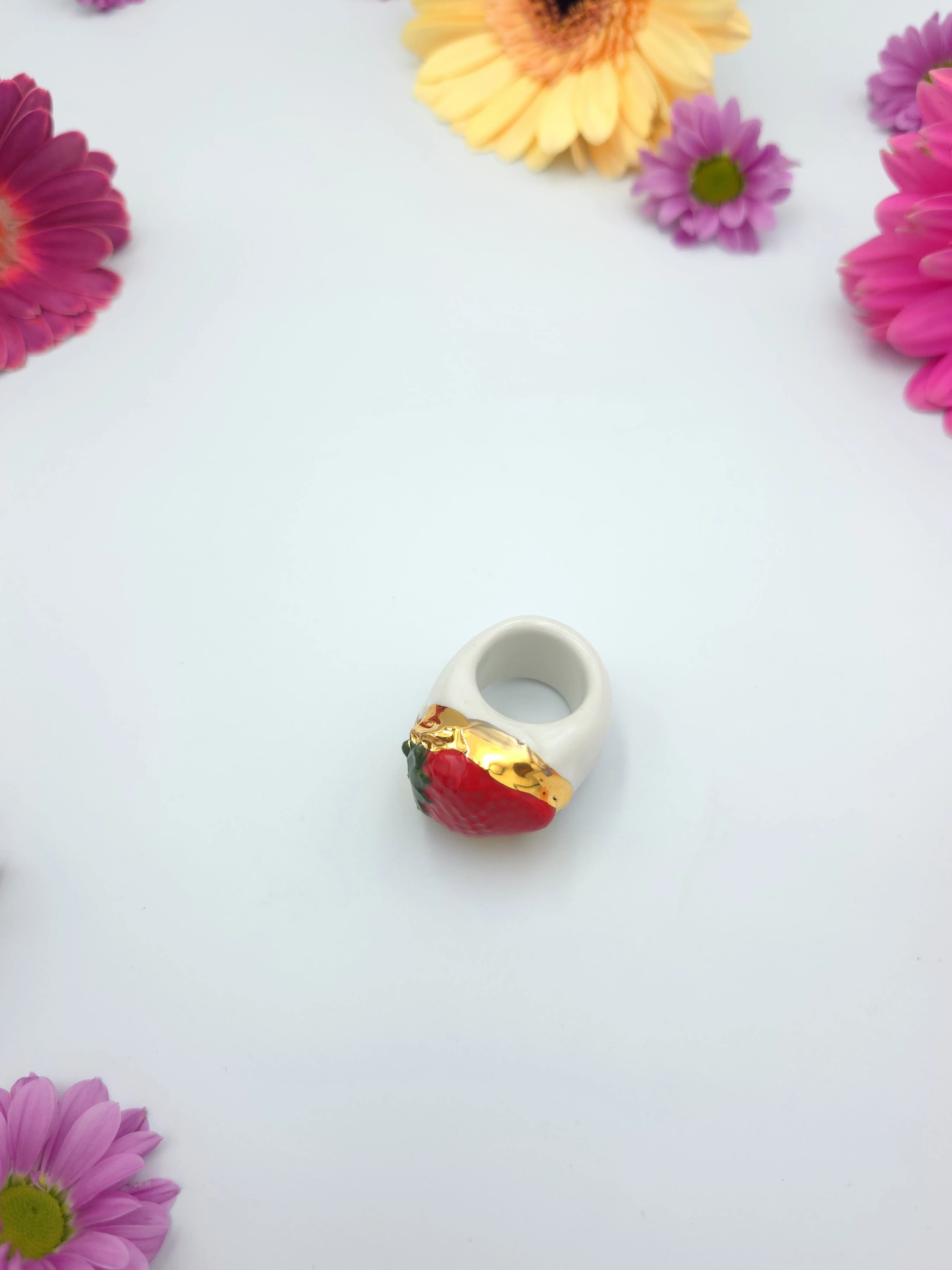 Porcelanowy pierścionek - truskawka