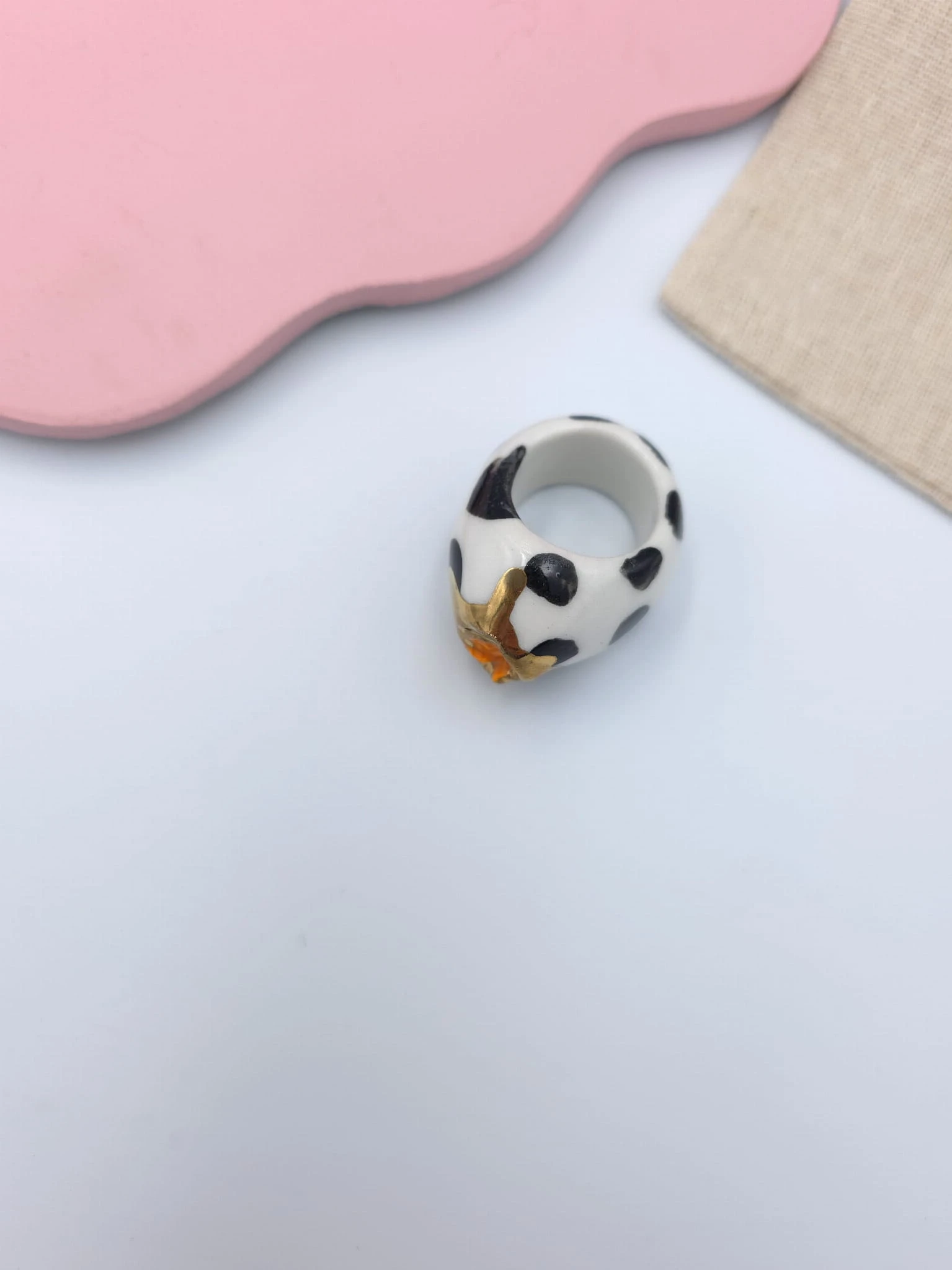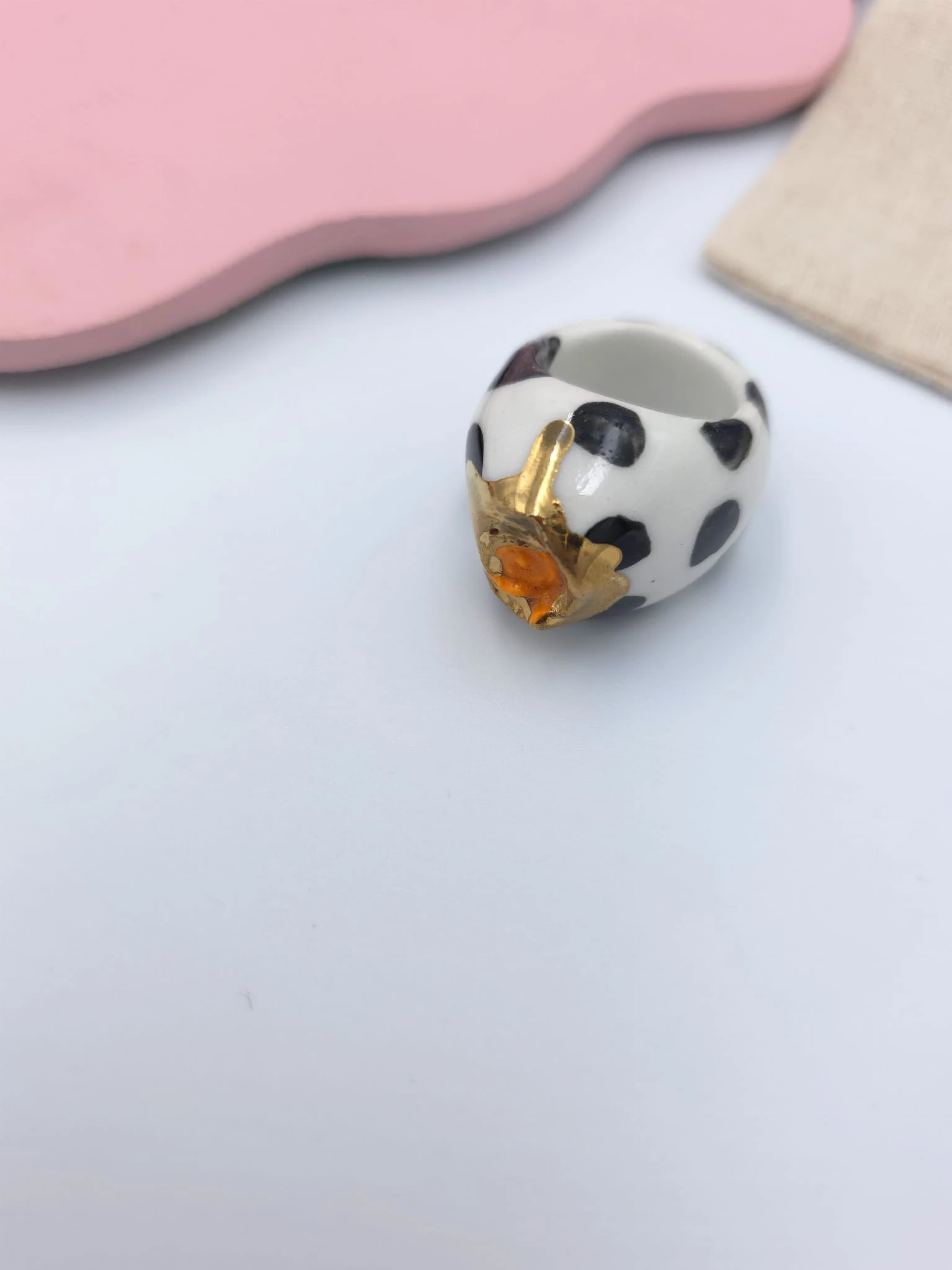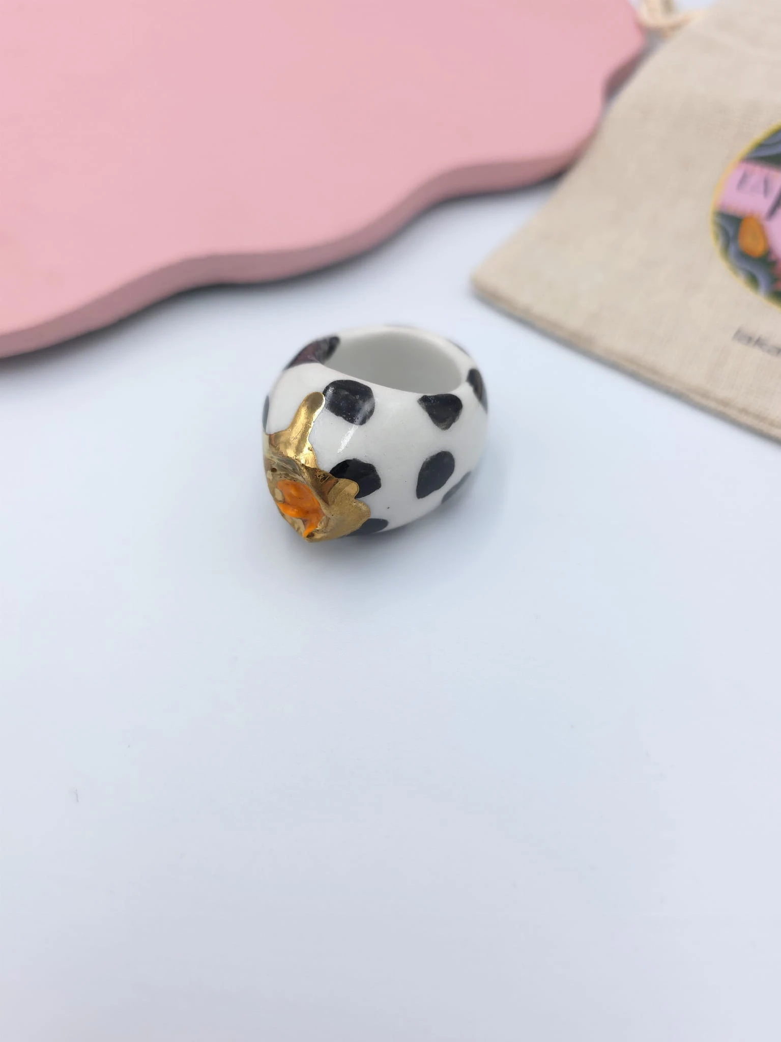 Unikatowy pierścionek z porcelany, zdobiony prawdziwym złotem.