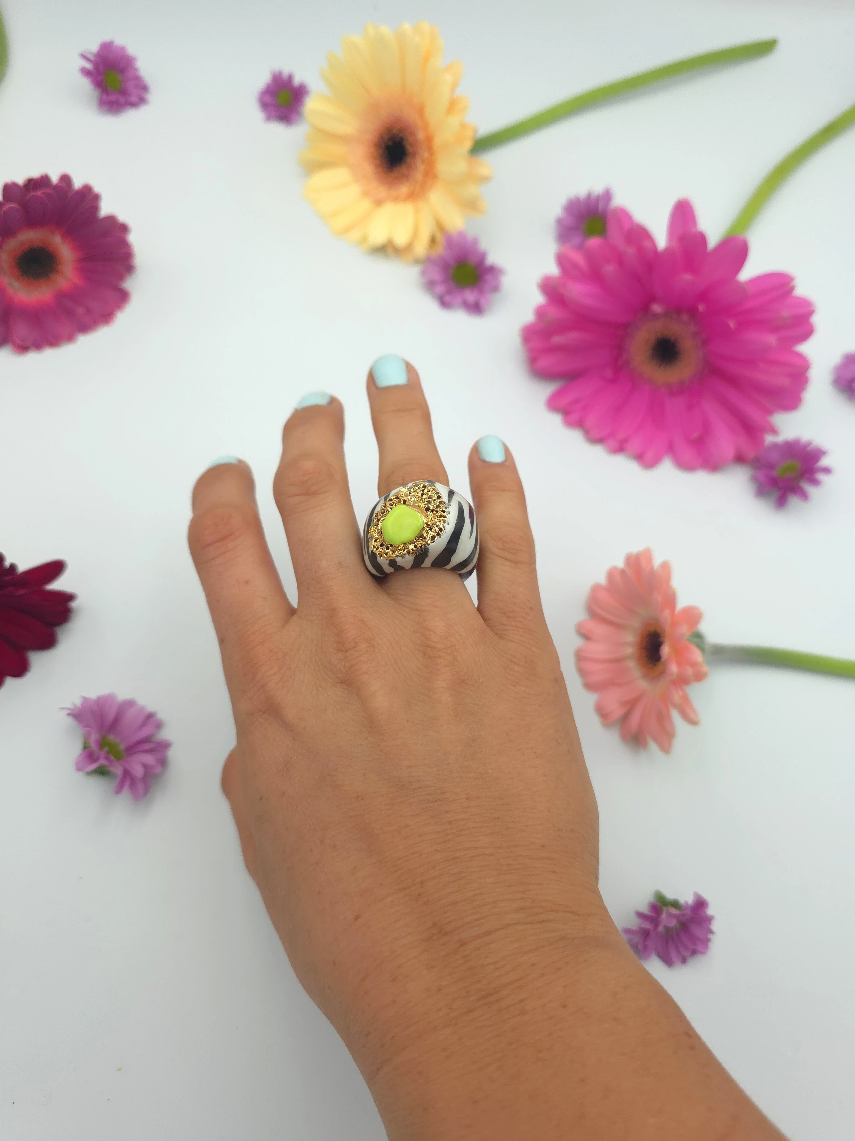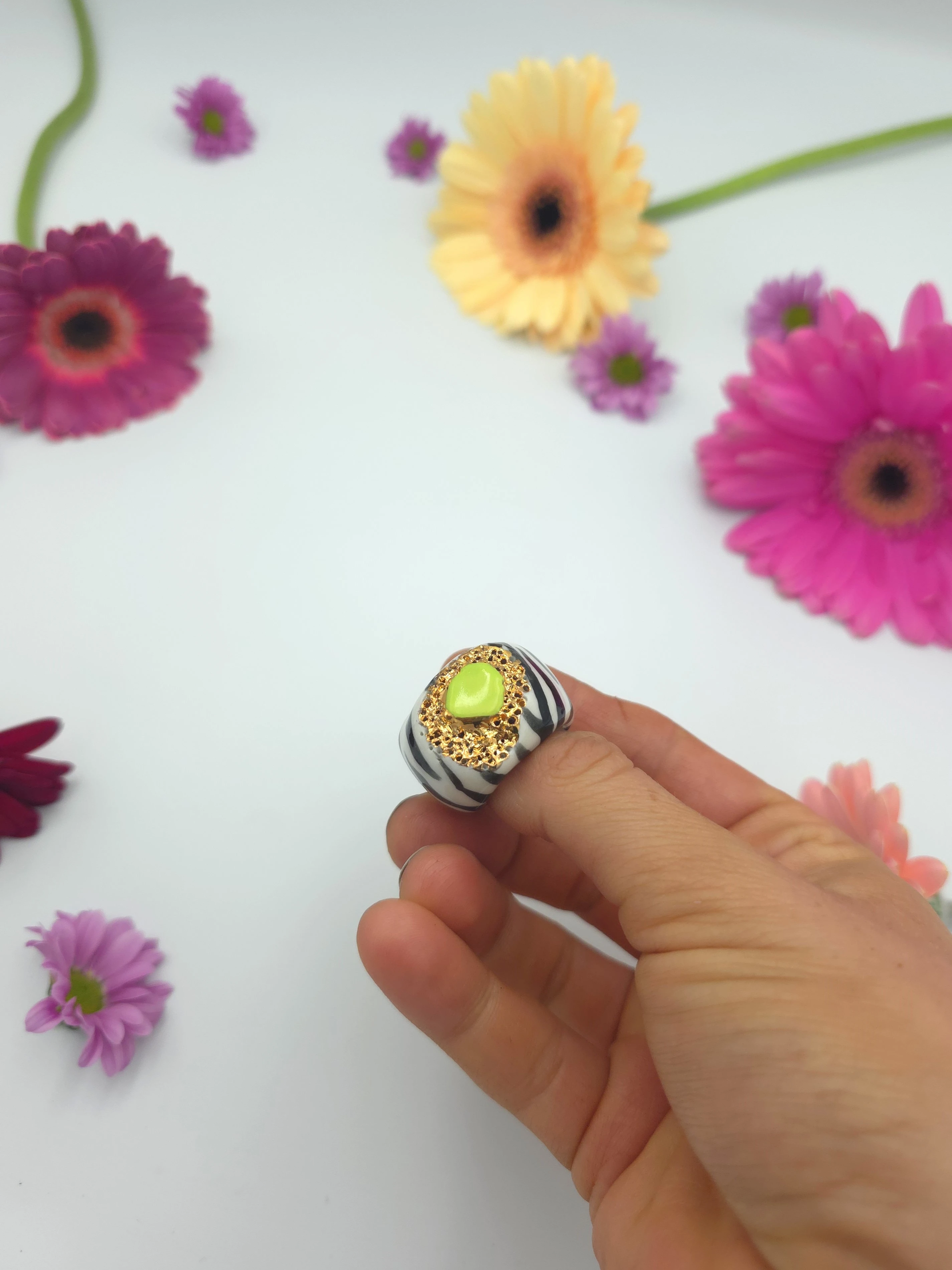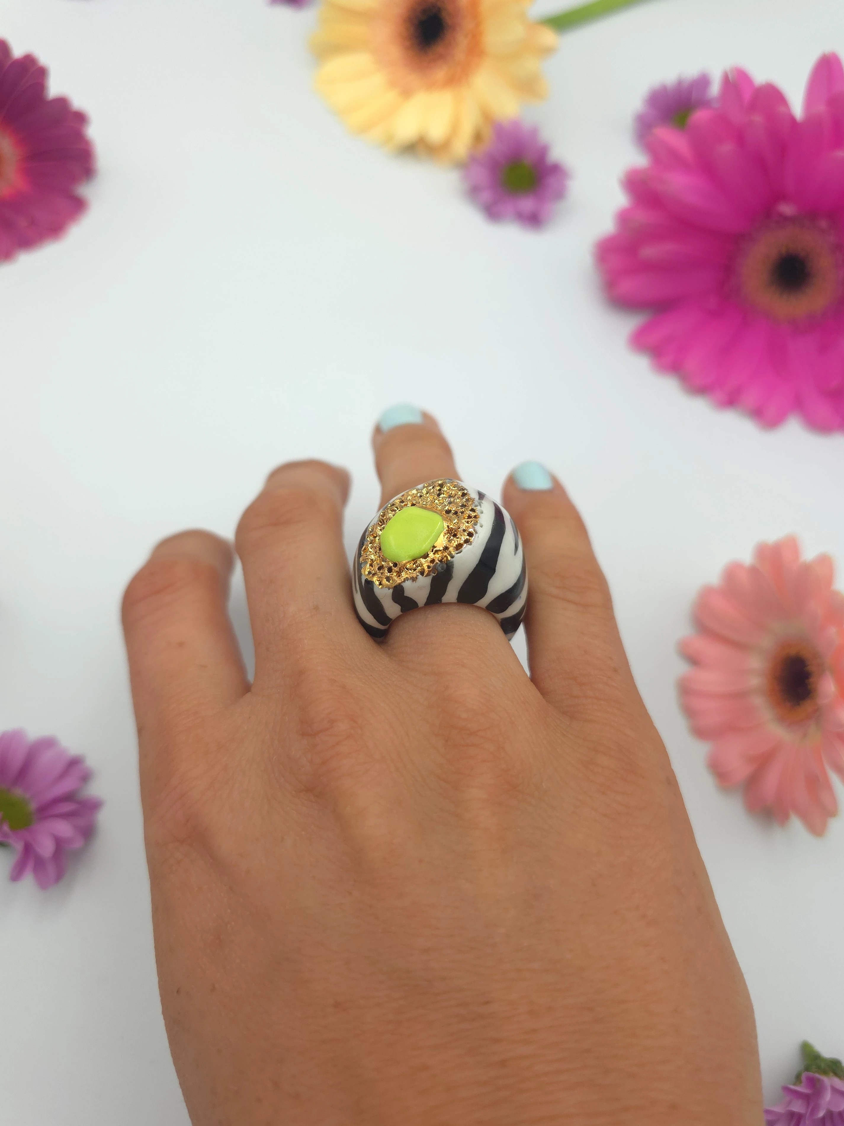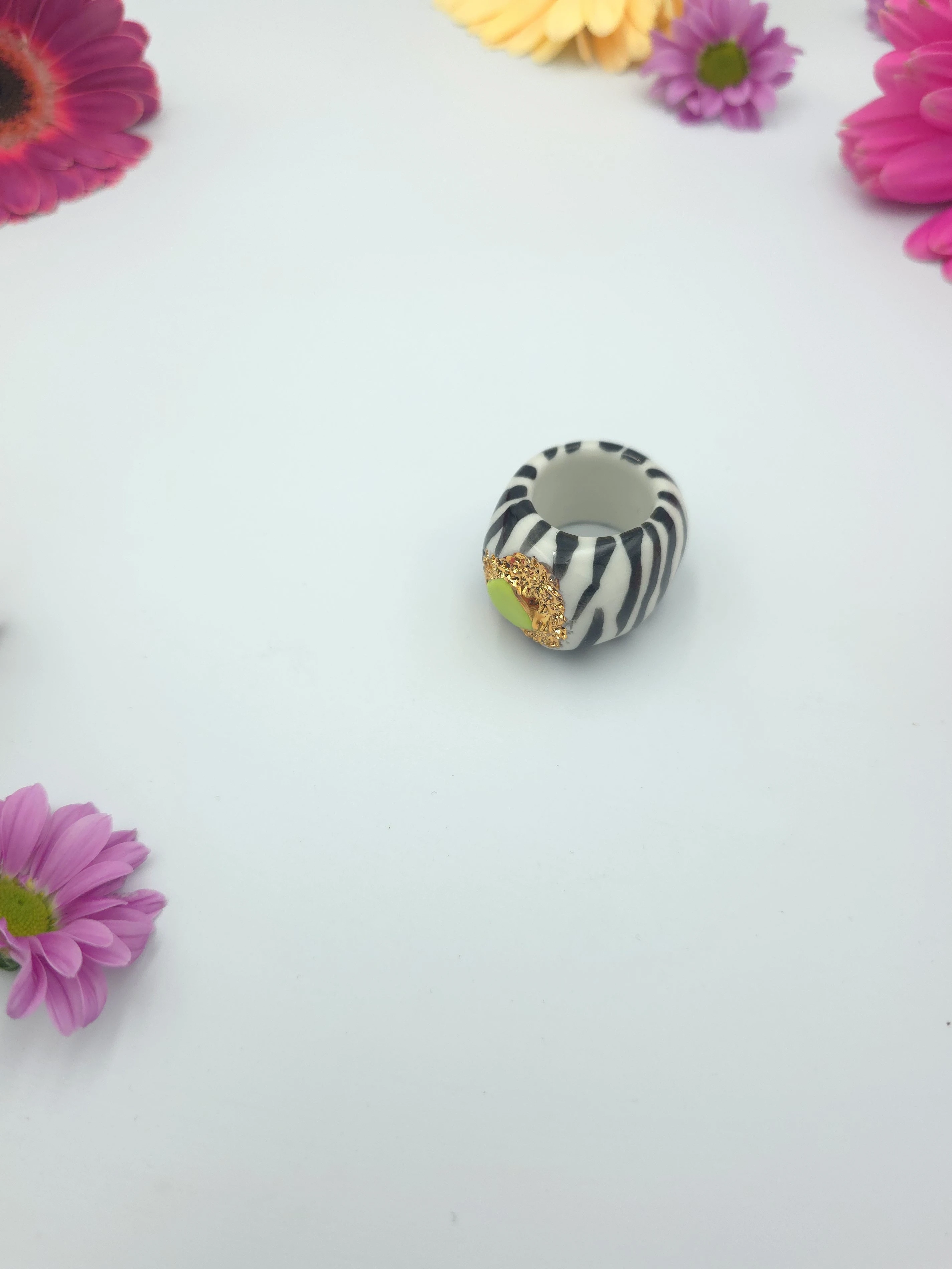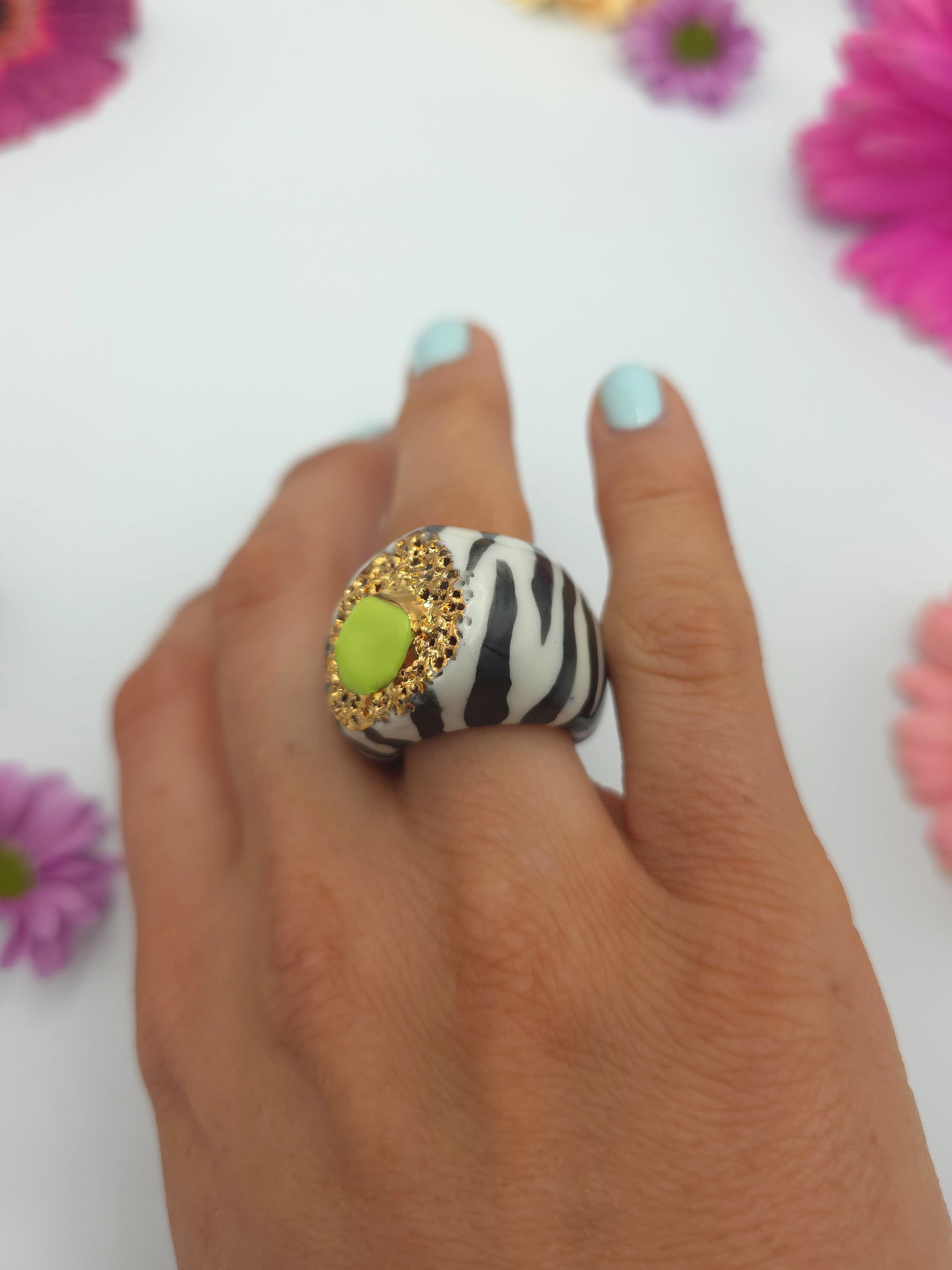 Porcelanowy pierścionek - zebra z żółtym środkiem