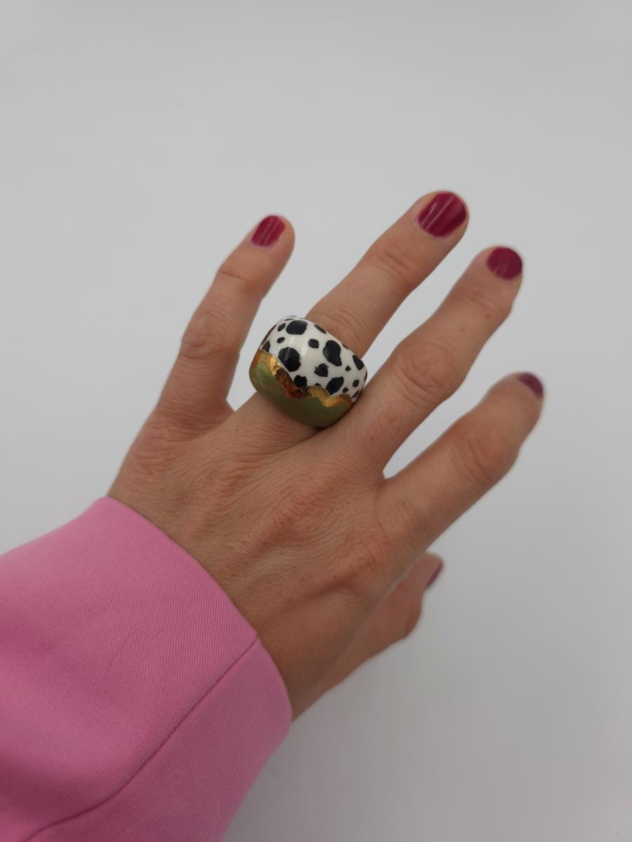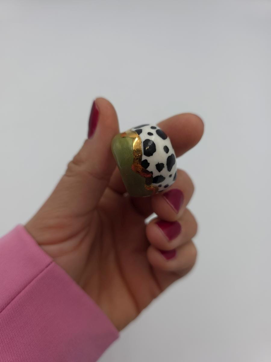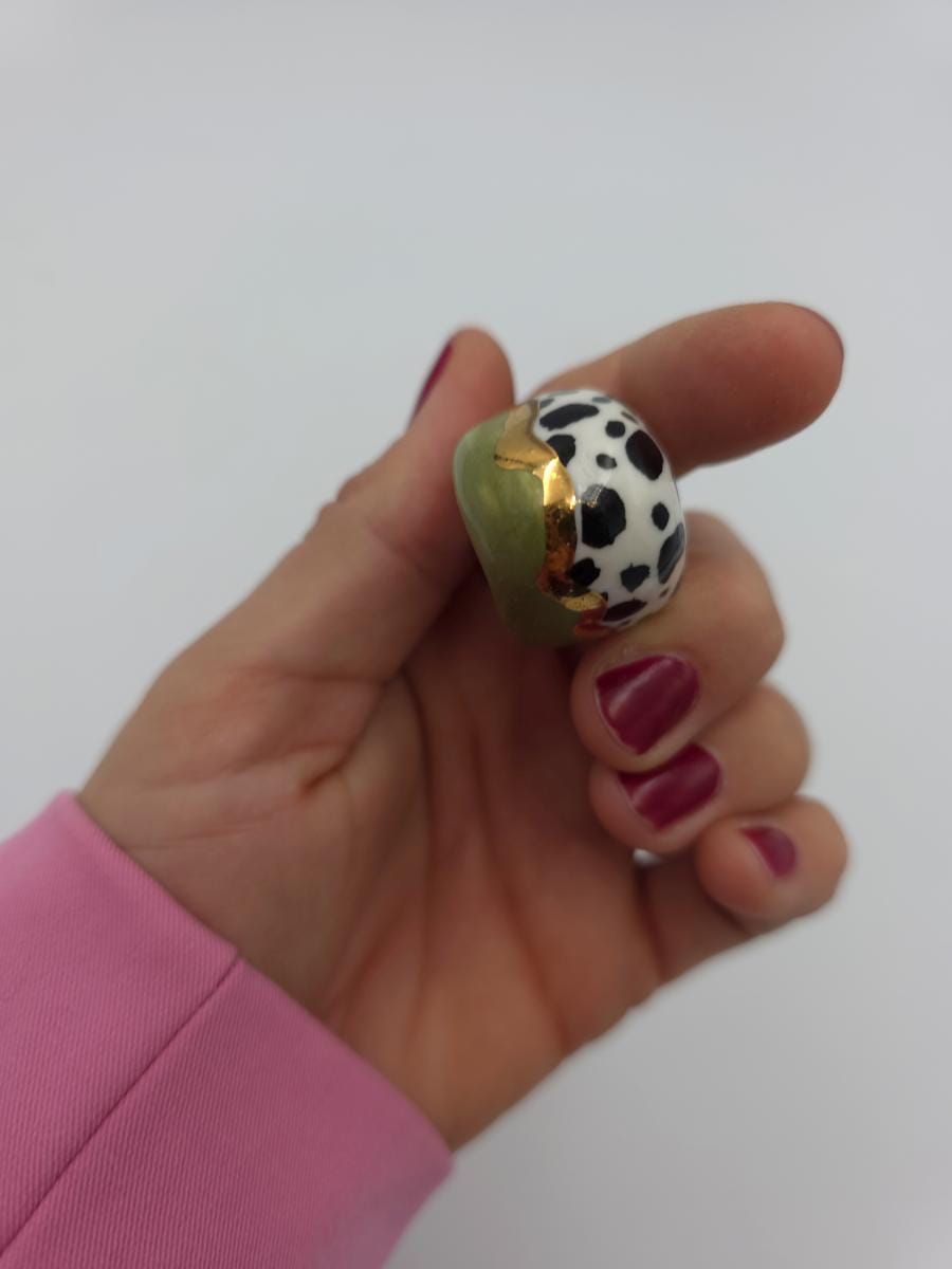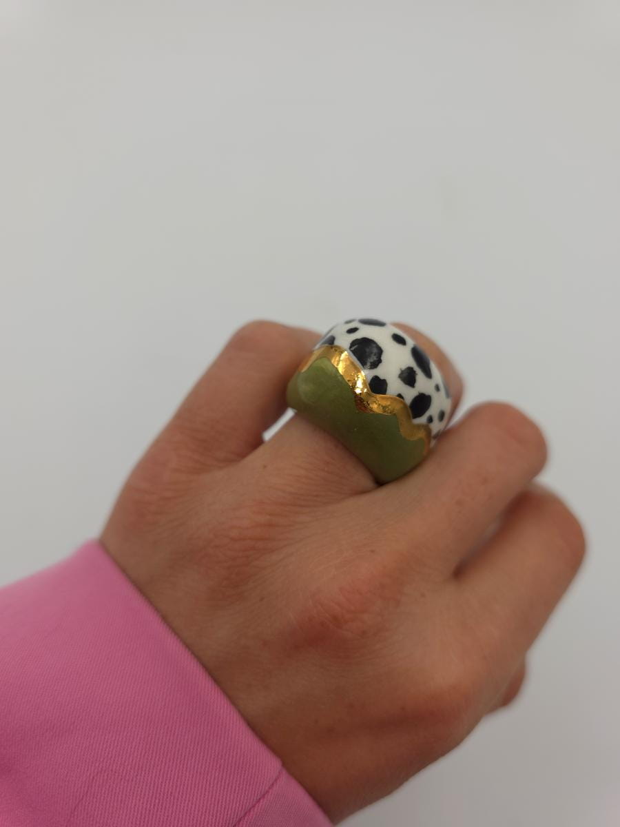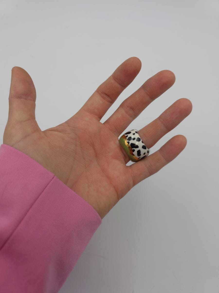 Porcelanowy pierścionek - zieleń i cętki