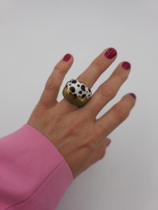 Unikatowy pierścionek z porcelany, zdobiony prawdziwym złotem.
