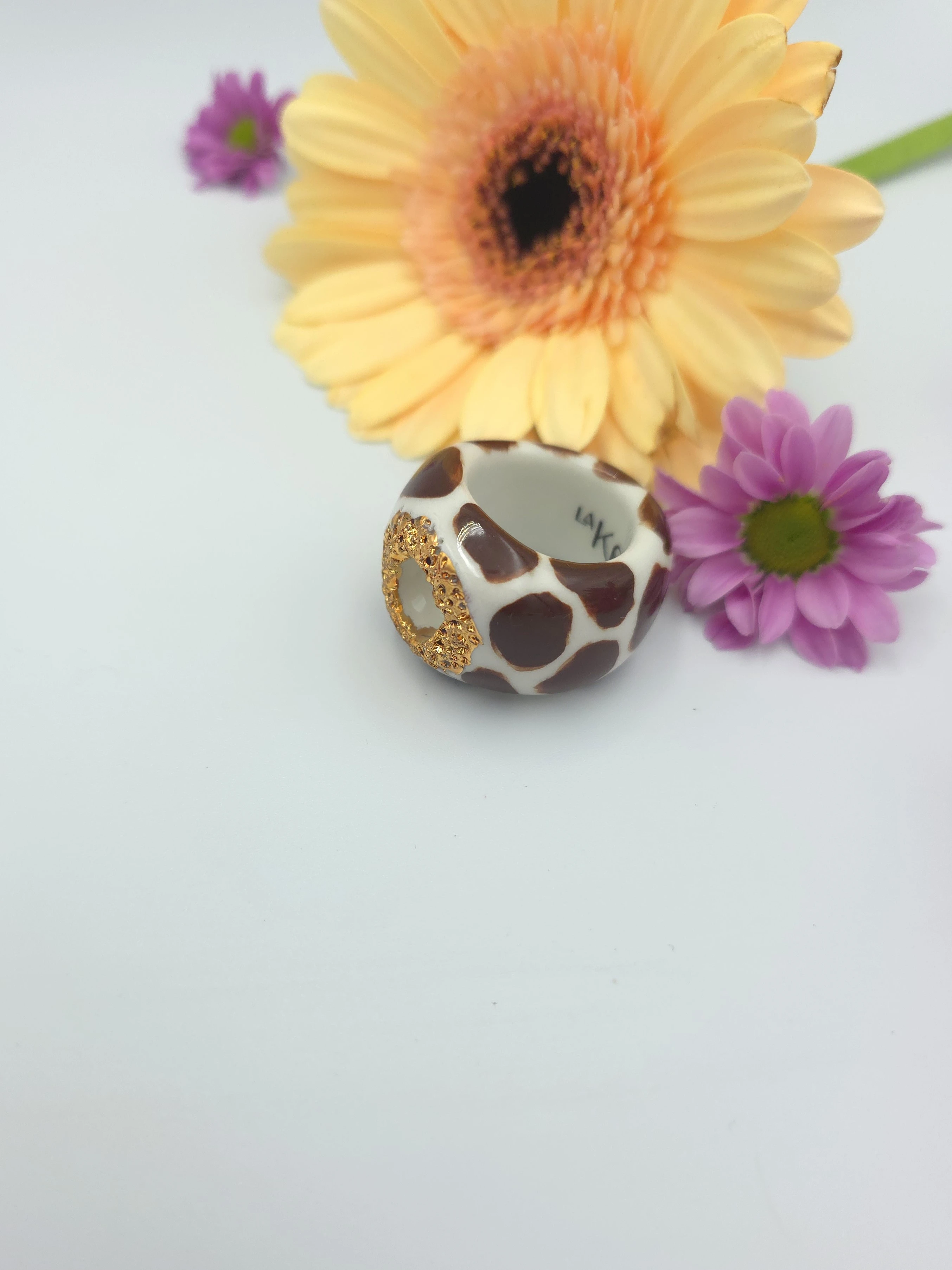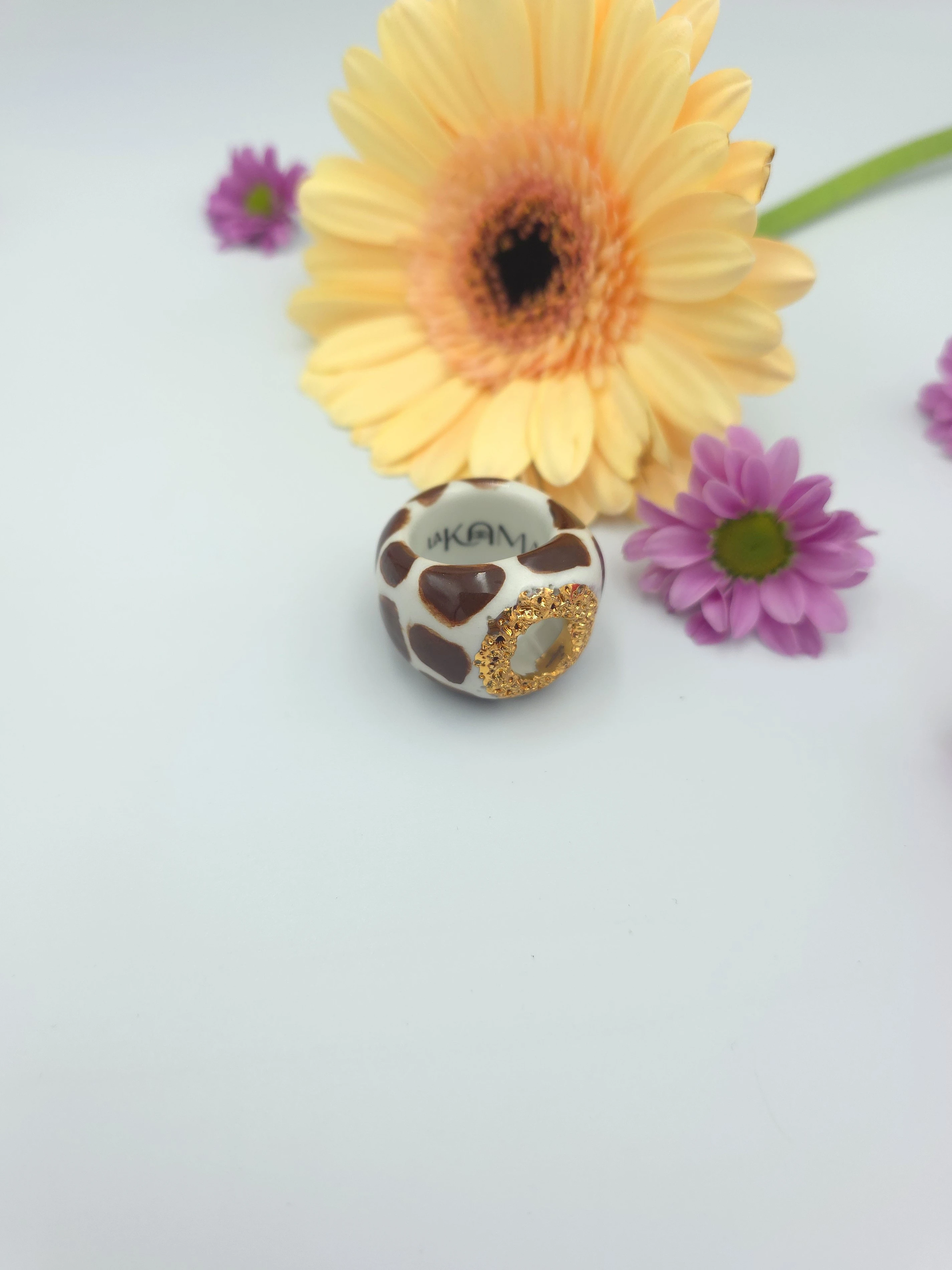 Porcelanowy pierścionek - żyrafa z dziurką
